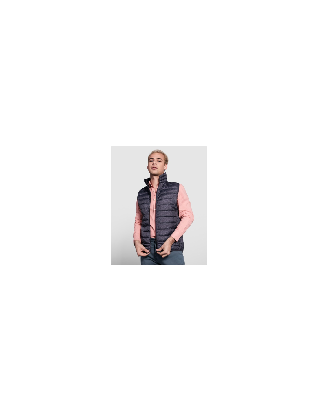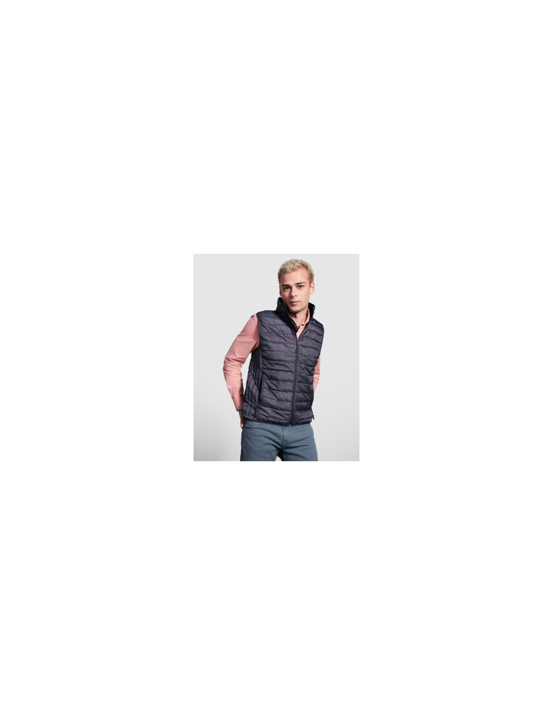 Pikowana kamizelka. Dopasowane zamki błyskawiczne z osłoną podbródka i ściągaczem. Dwie boczne kieszenie z zamkami błyskawicznymi. Dopasowana elastyczna lamówka przy mankietach i u dołu. Kontrastowa podszewka wewnętrzna. Lekkie i składane ubranie.