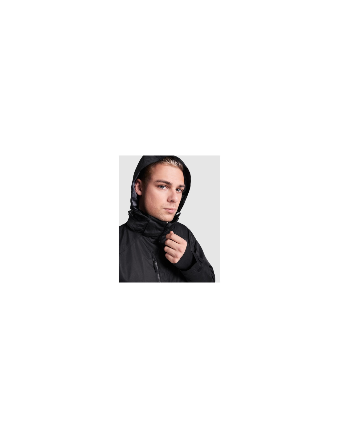 Kurtka wiatrówka wykonana z odpornego poliestru. Przedni zamek z osłoną na podbródku. Odpinany kaptur. Wewnętrzne mankiety ochronne przed wiatrem. Regulowanay kaptur i talia. Trzy przednie kieszenie zapinane na zamek. Jedna na prawej piersi i dwie na bokach. Dwie wewnętrzne kieszenie na rzep. Mankiety ściągane zapinaniami.