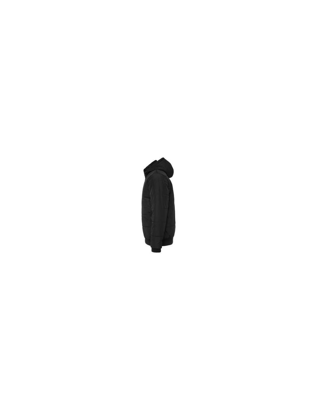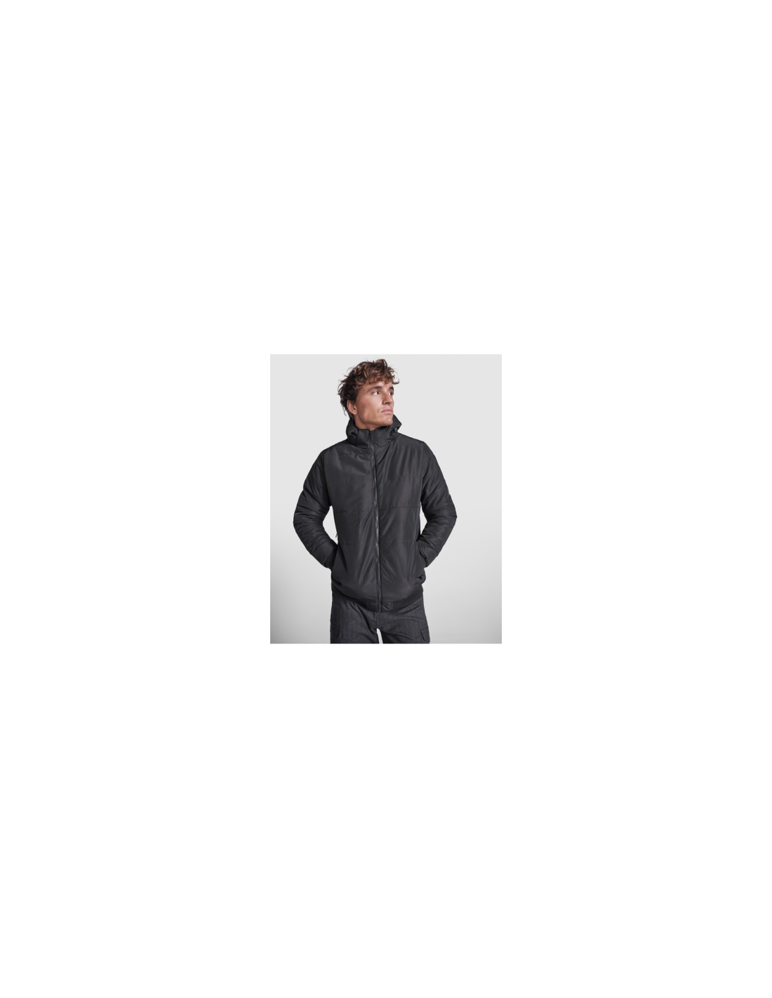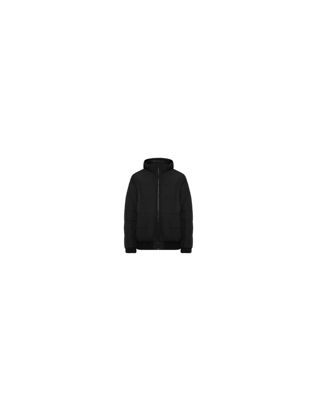 Pikowana kurtka odpychająca cząsteczki wody. Wysoki kołnierz. Odpinany kaptur z regulacją. Zamek błyskawiczny w tym samym kolorze z ochraniaczem brody. Dwie kieszenie boczne zapinane na zamek. Prążkowana dzianina 2x1 przy nadgarstkach i pasie. Dostęp do środka na lewej piersi i plecach.