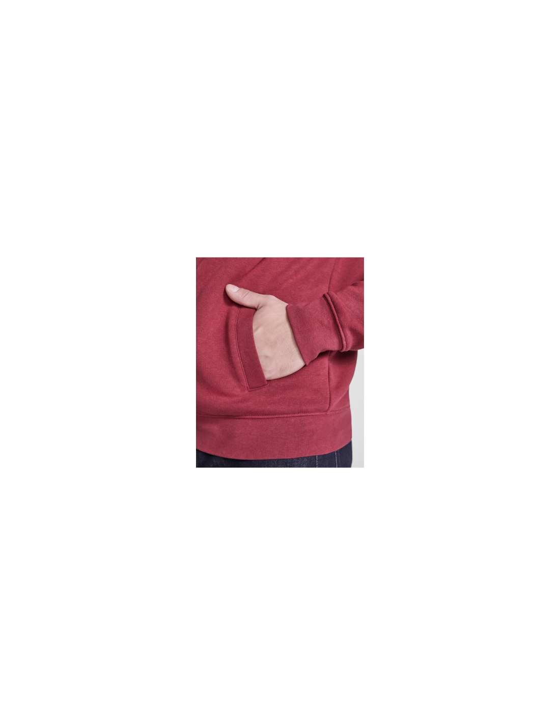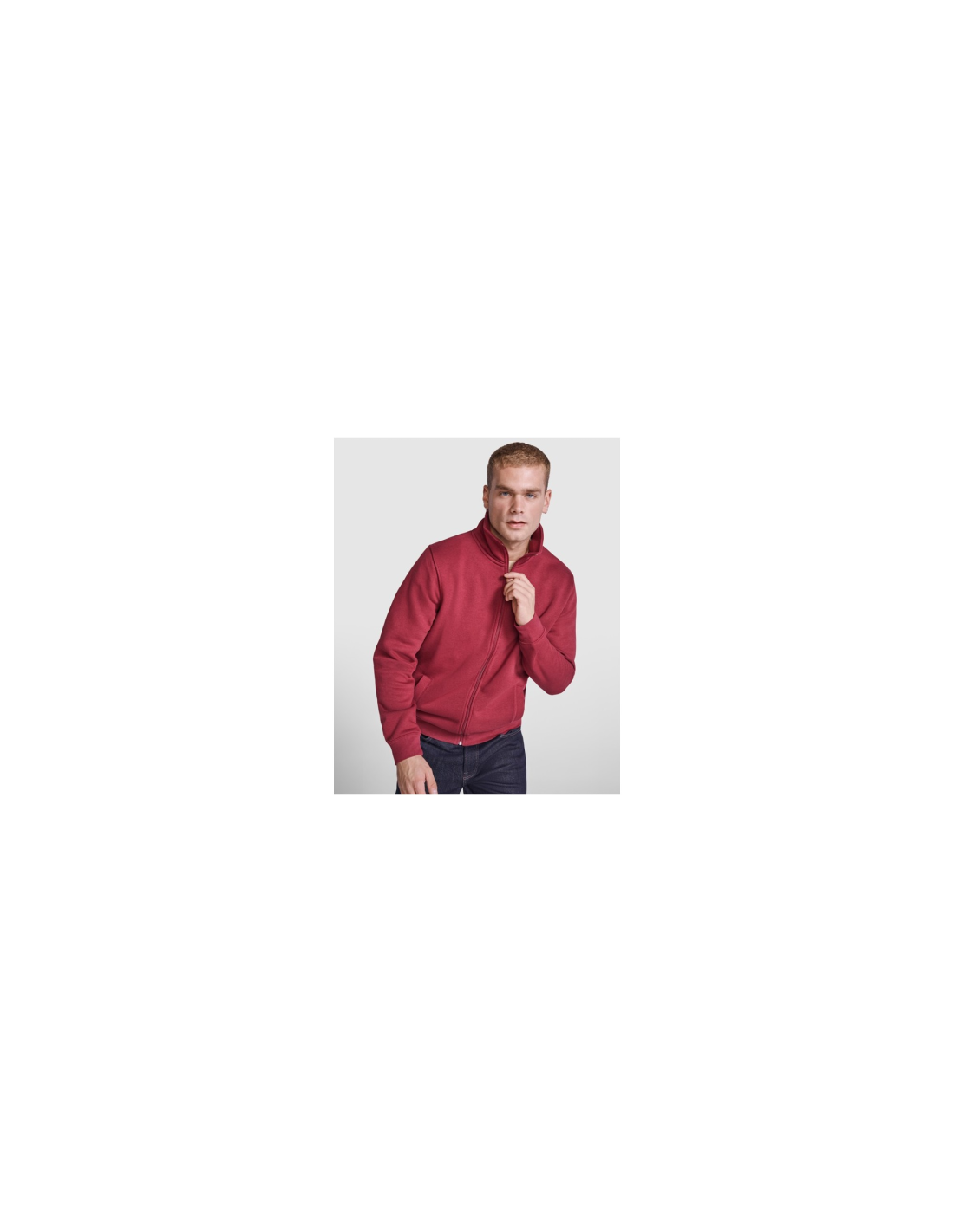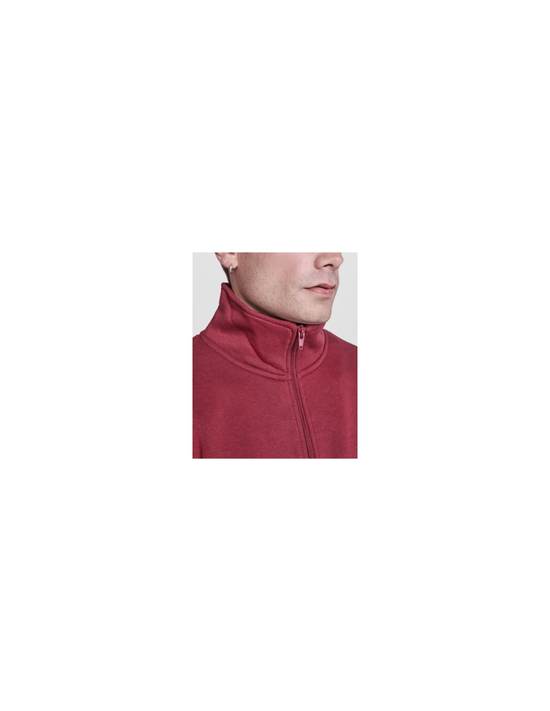 Bluza z wysokim kołnierzem i błyskawicznym zamkiem do połowy w tym samym kolorze. Wewnętrzna strona kołnierza w tym samym kolorze ze wzmacnianą obwódką. Prążkowana dzianina 1x1 przy nadgarstkach i pasie.