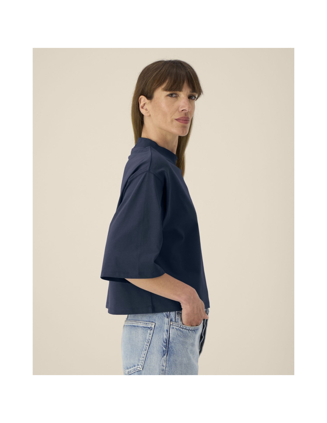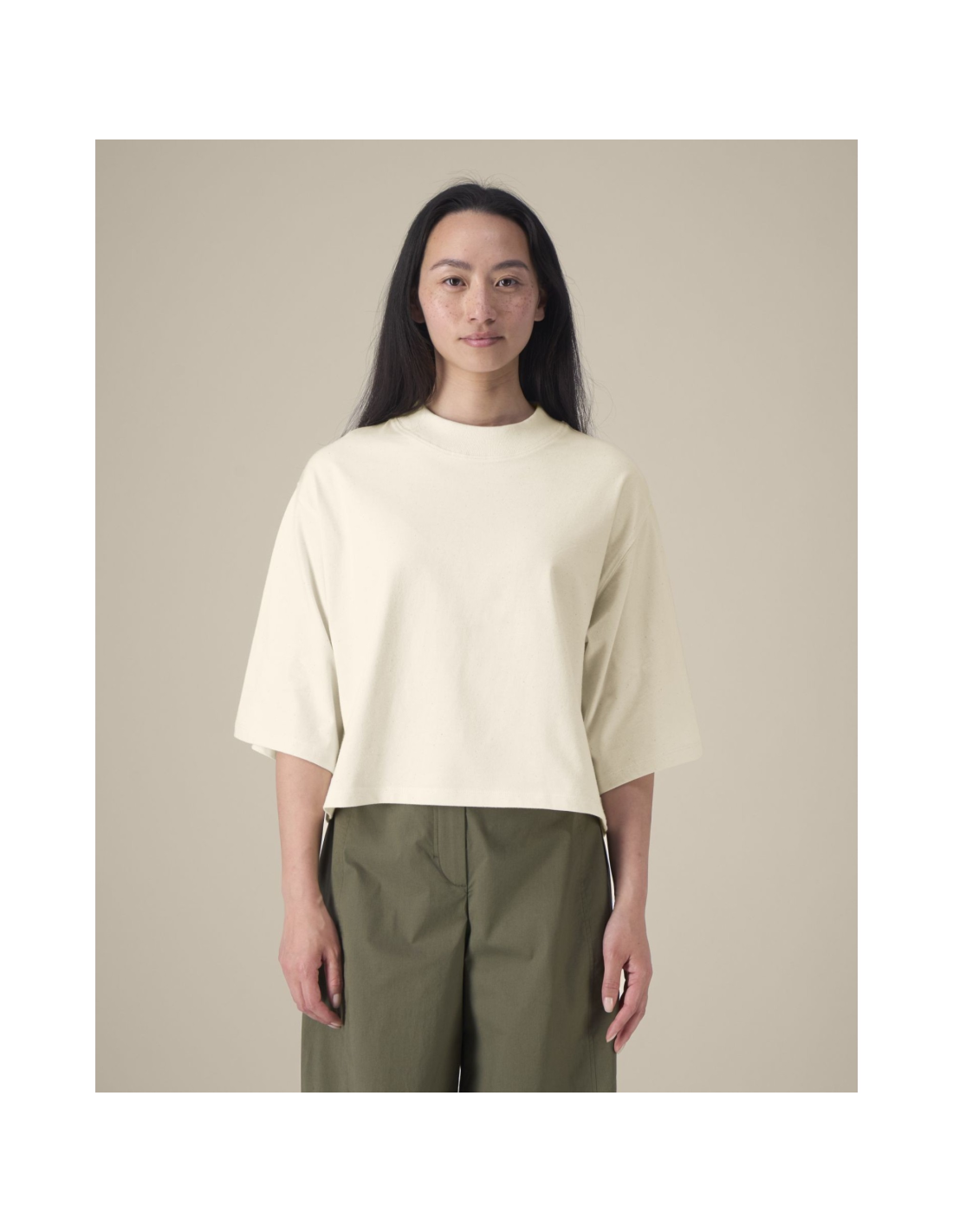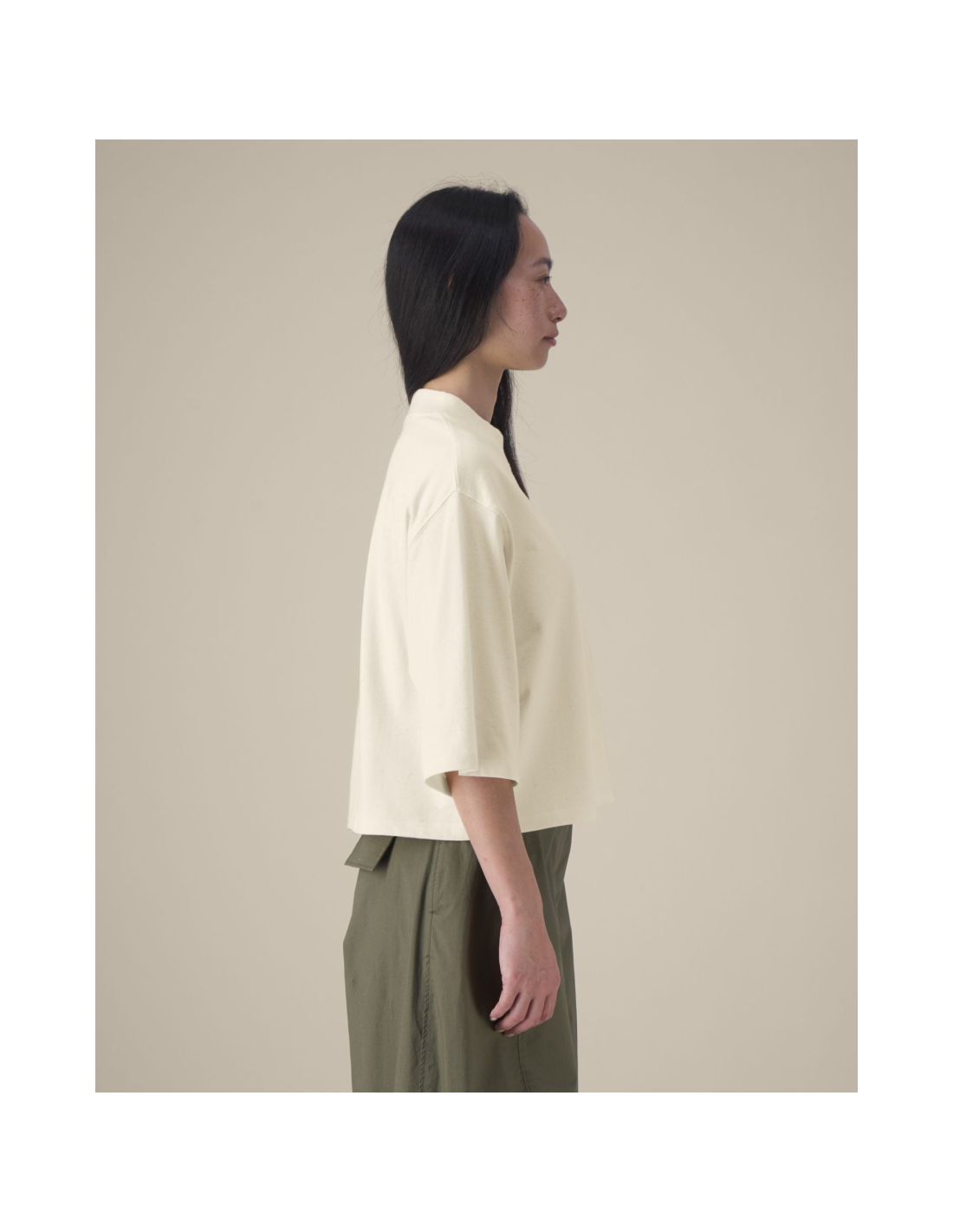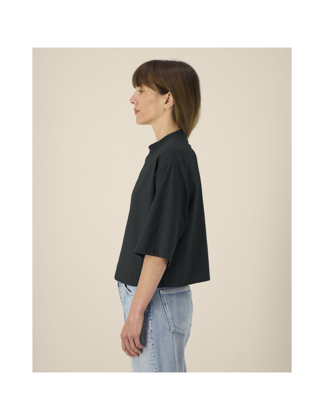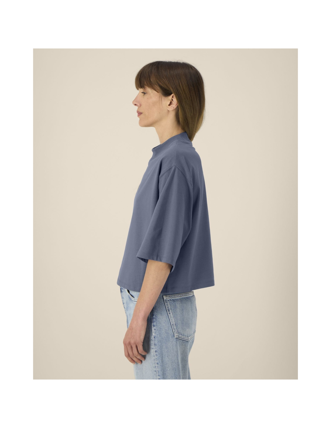 T-shirt damski krótki z bawełny z recyklingu
