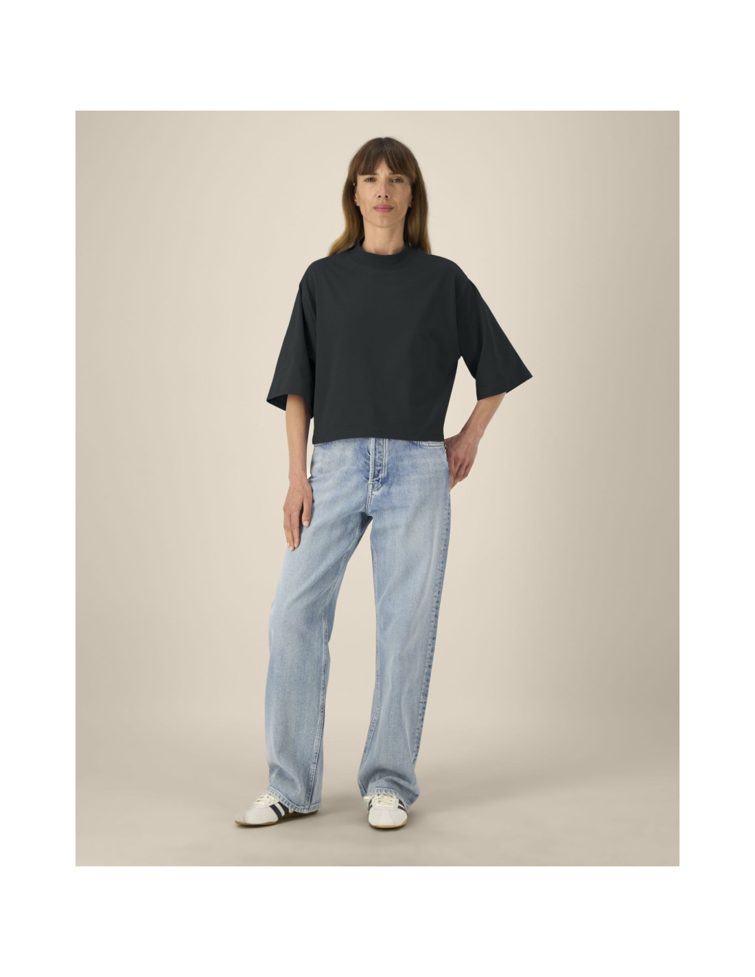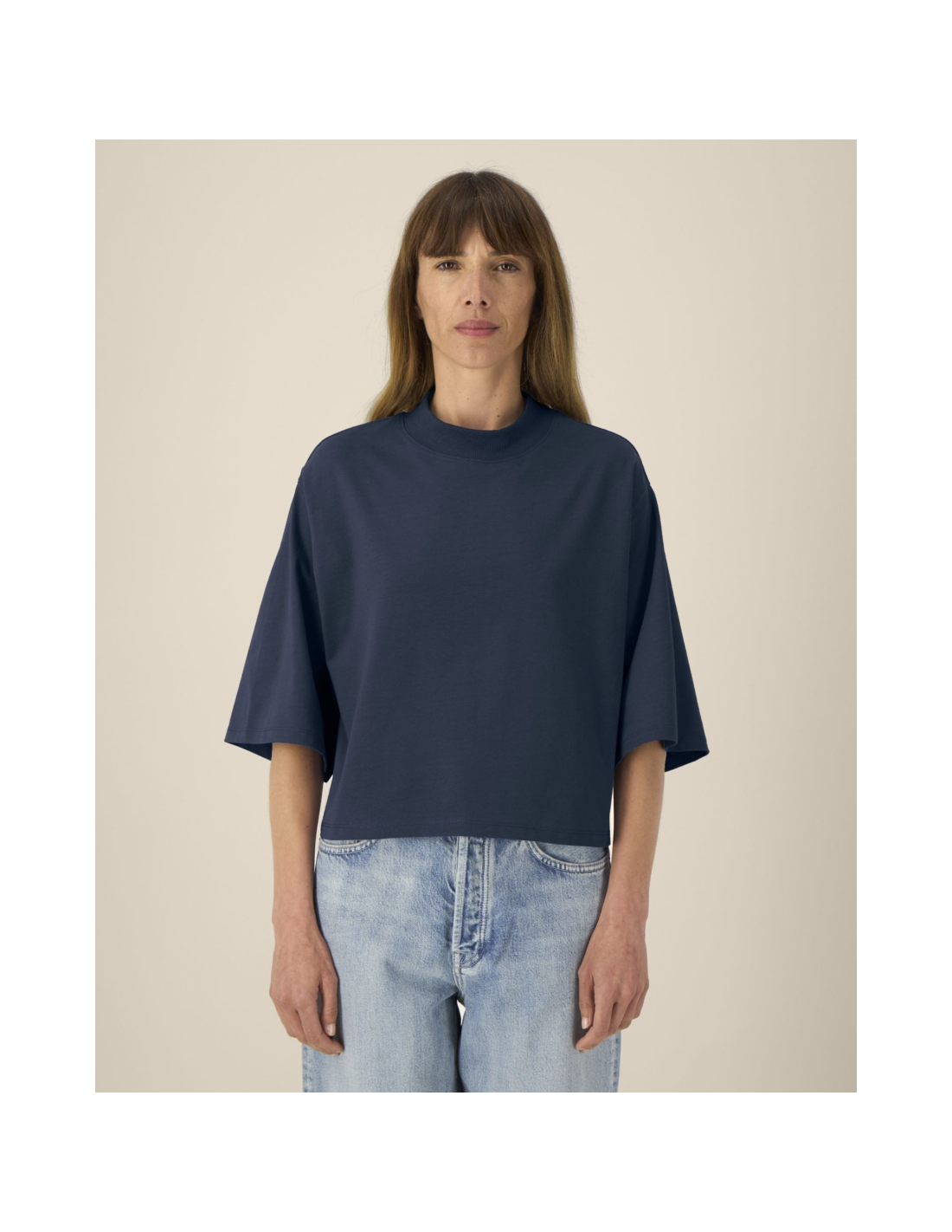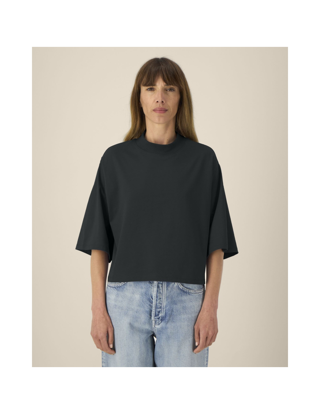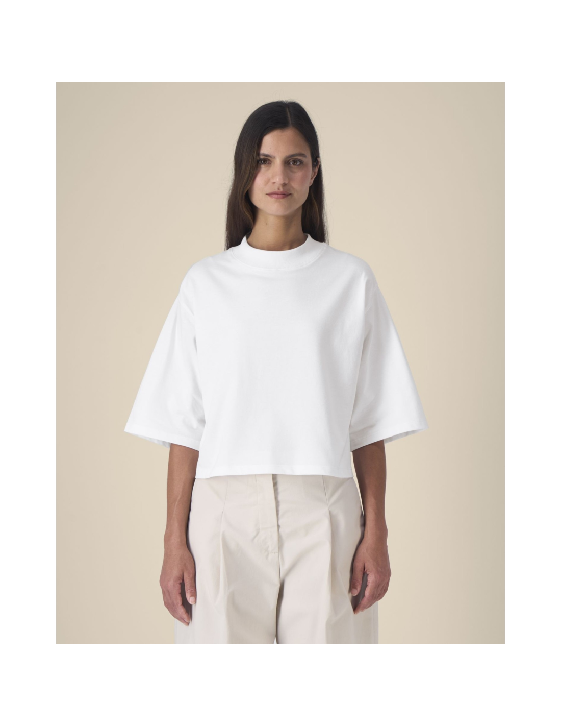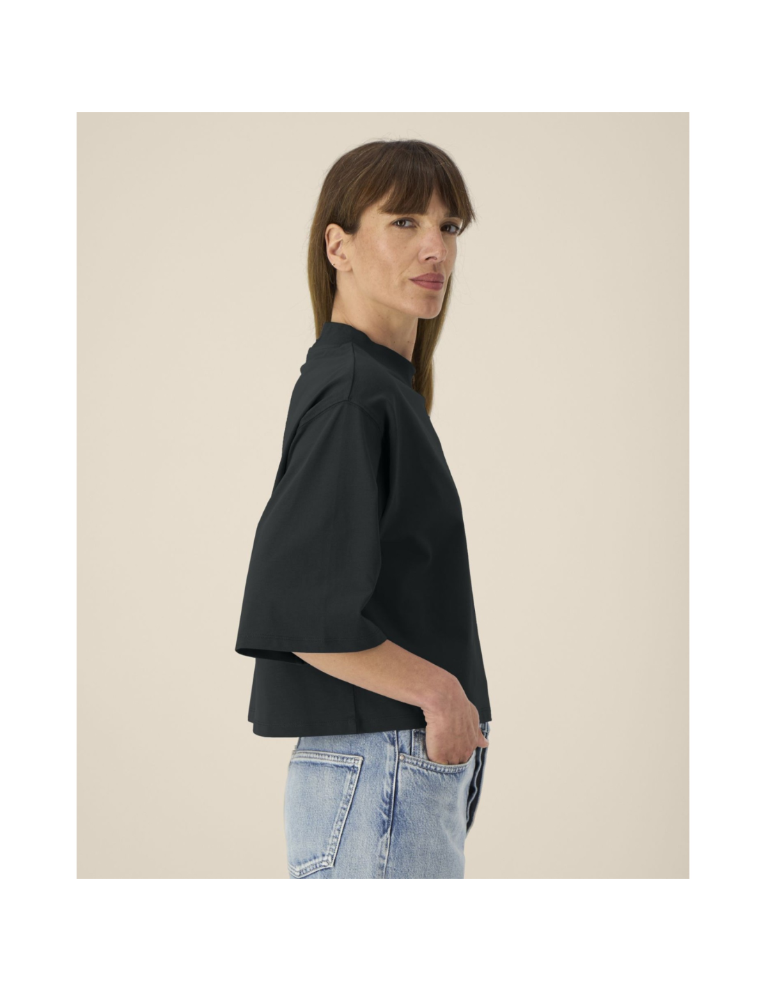 T-shirt damski krótki z bawełny z recyklingu