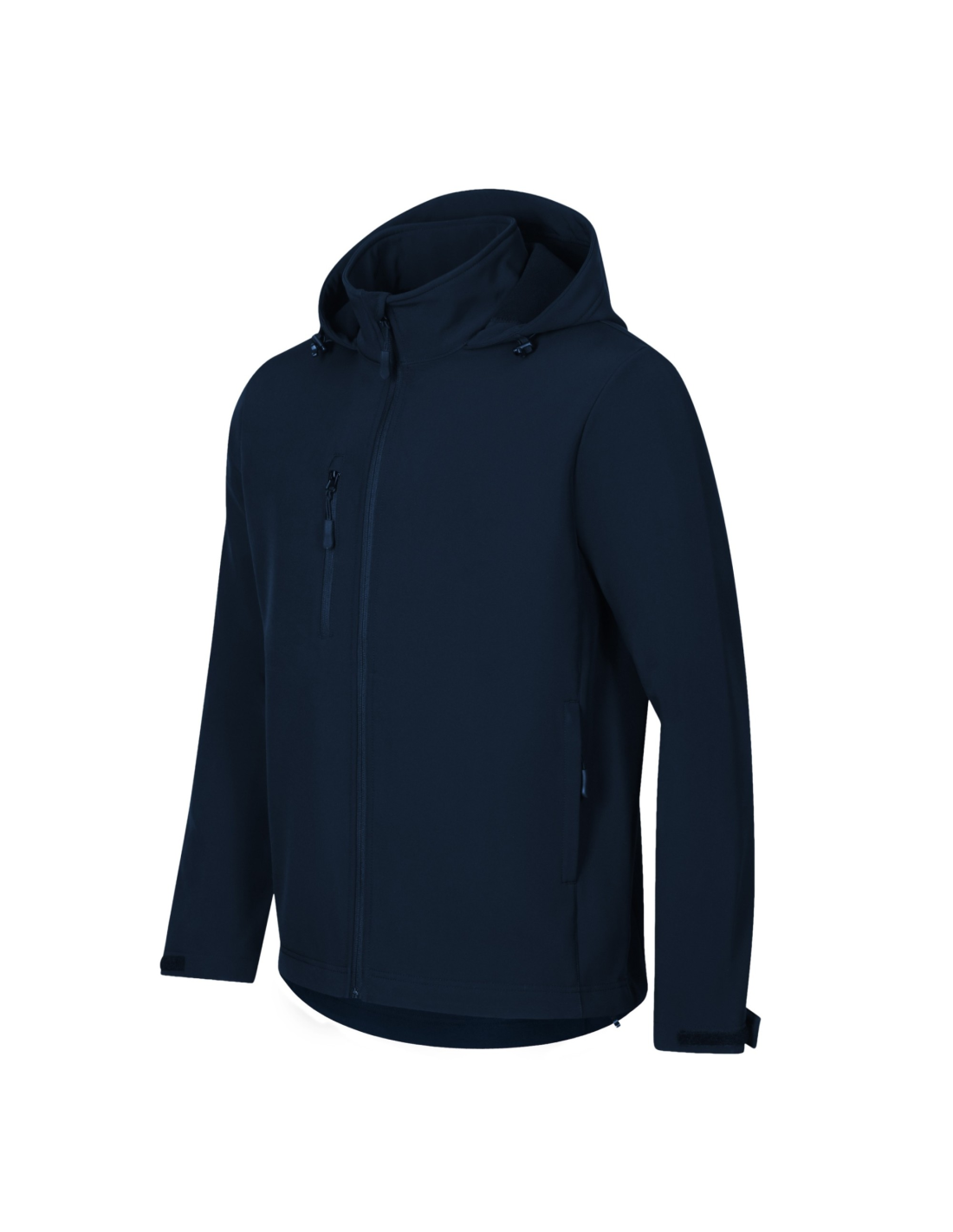 bez etykiety - gotowy do rebrandingu, 2-warstwowy sofshell, prosty krój z bocznymi częściami, zamek błyskawiczny z odwróconym suwakiem na całej długości z ochroną podbródka, elastyczny kaptur ze sznurkiem i ściągaczem na dole, etykieta na lamówce z tyłu w neutralnym rozmiarze, regulowane obszycia rękawów za pomocą rzepu, kieszenie z odwróconym spiralnym zamkiem błyskawicznym, kieszeń na piersi, lekko przedłużona w tylnej części, wewnętrzny polar z wykończeniem antypillingowym