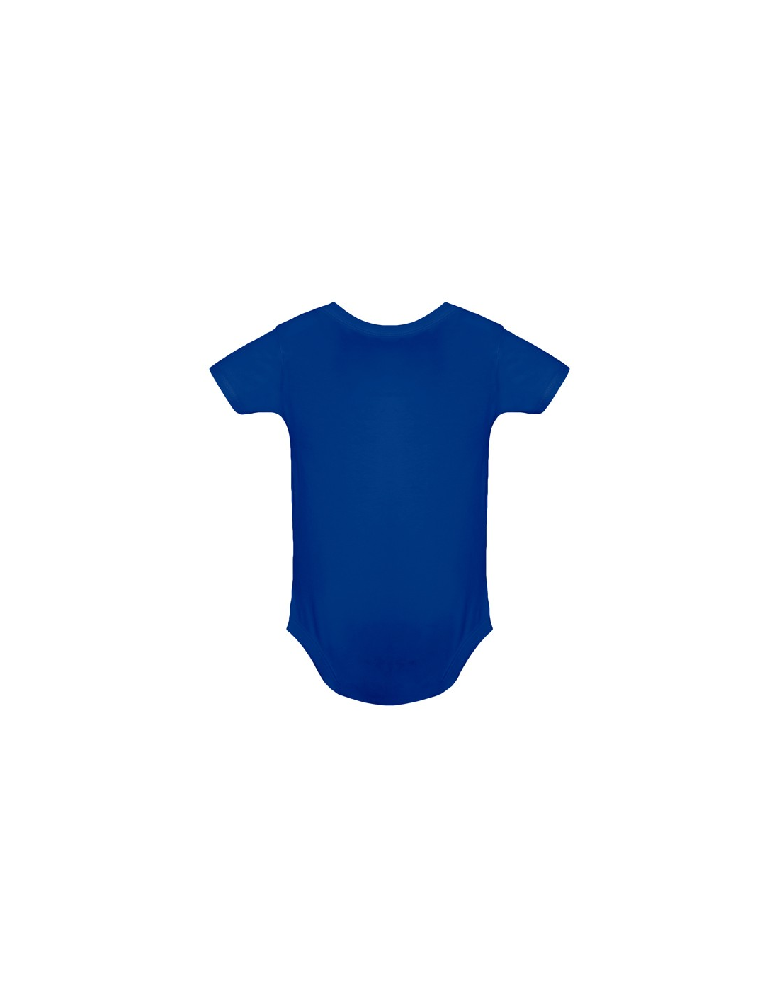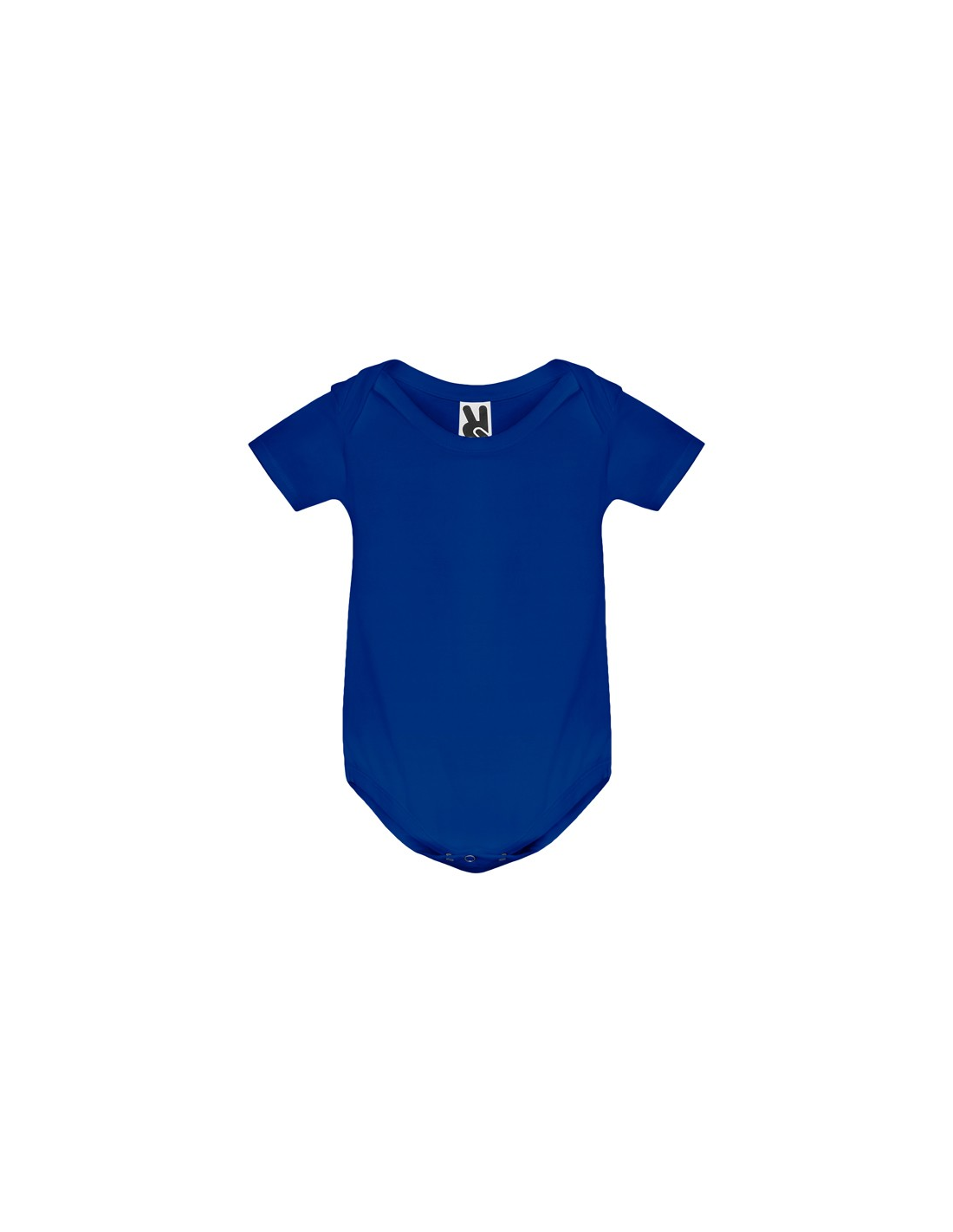 Body z krótkim rękawem dla niemowląt, tkanina single jersey. Okrągły dekolt wykończony lamówką 1x1. Zapięcie na guzik zatrzaskowy w kroku.