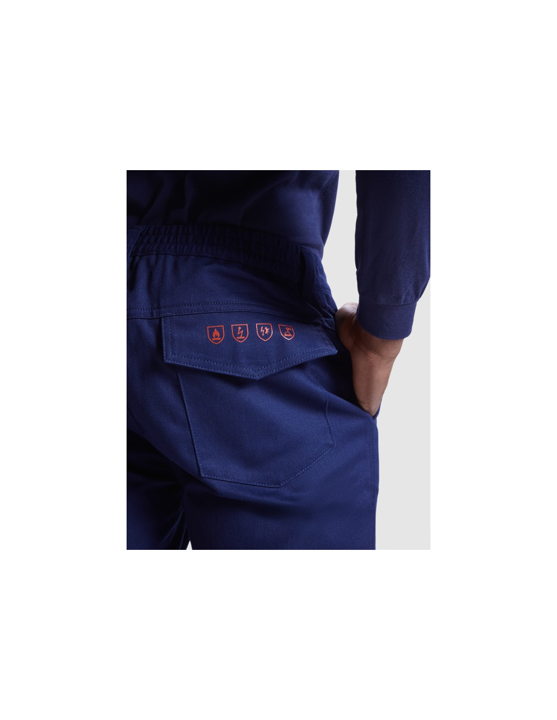 Długie spodnie z materiału trudnopalnego. · Elastyczne w pasie z regulacją z tyłu. · Dwie kieszenie przednie. · Kieszeń tylna z klapą i zapięciem na rzep. · Kieszenie boczne z klapą i zapięciem na rzep.
