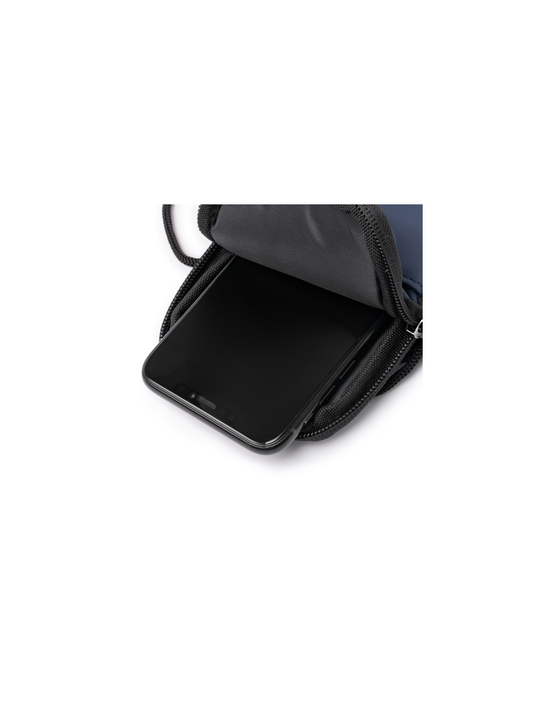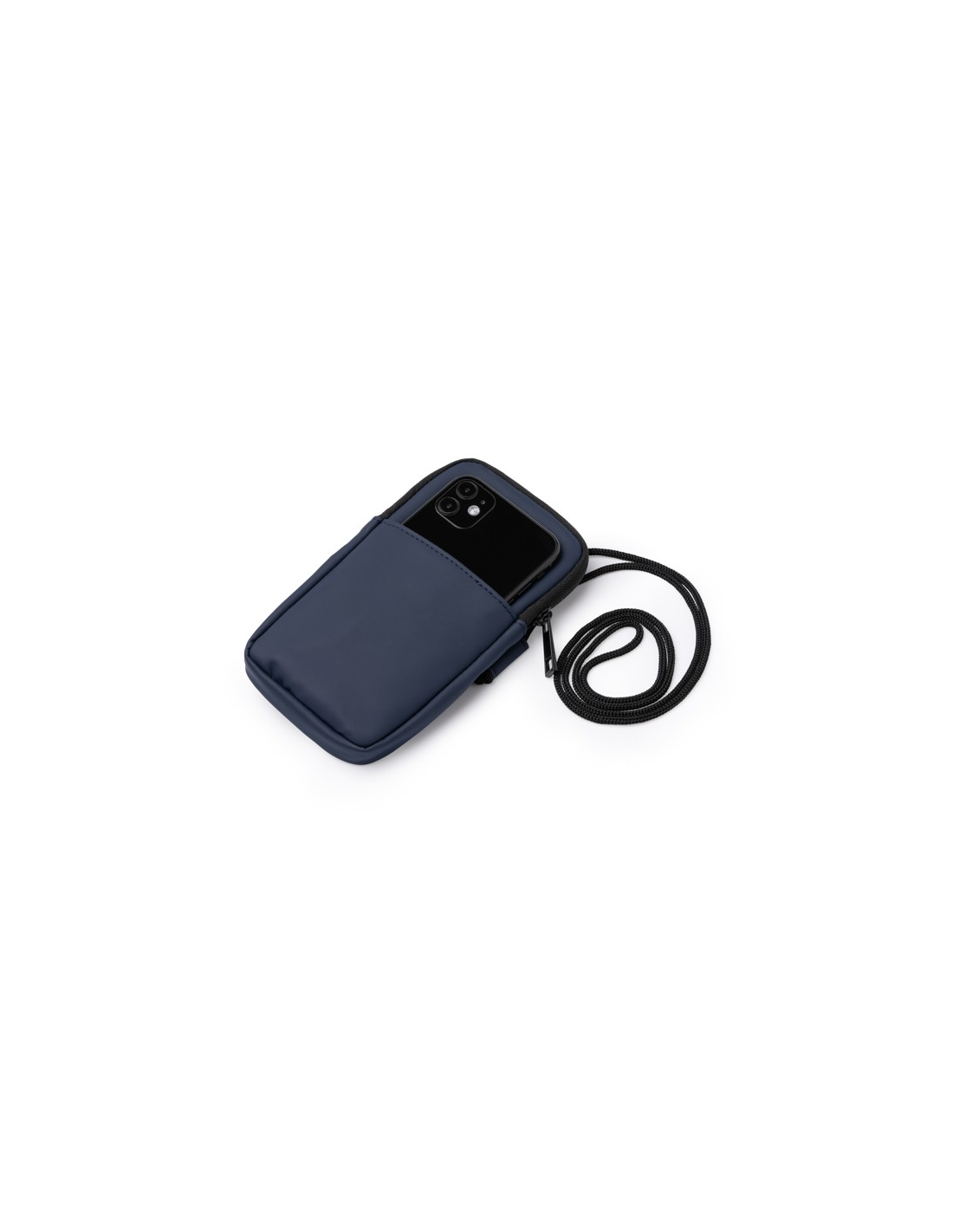 Uchwyt na telefon komórkowy wykonany ze skóry PU. Komora główna z zapięciem na zamek błyskawiczny. Zewnętrzna kieszeń i regulowany pasek do przenoszenia.
