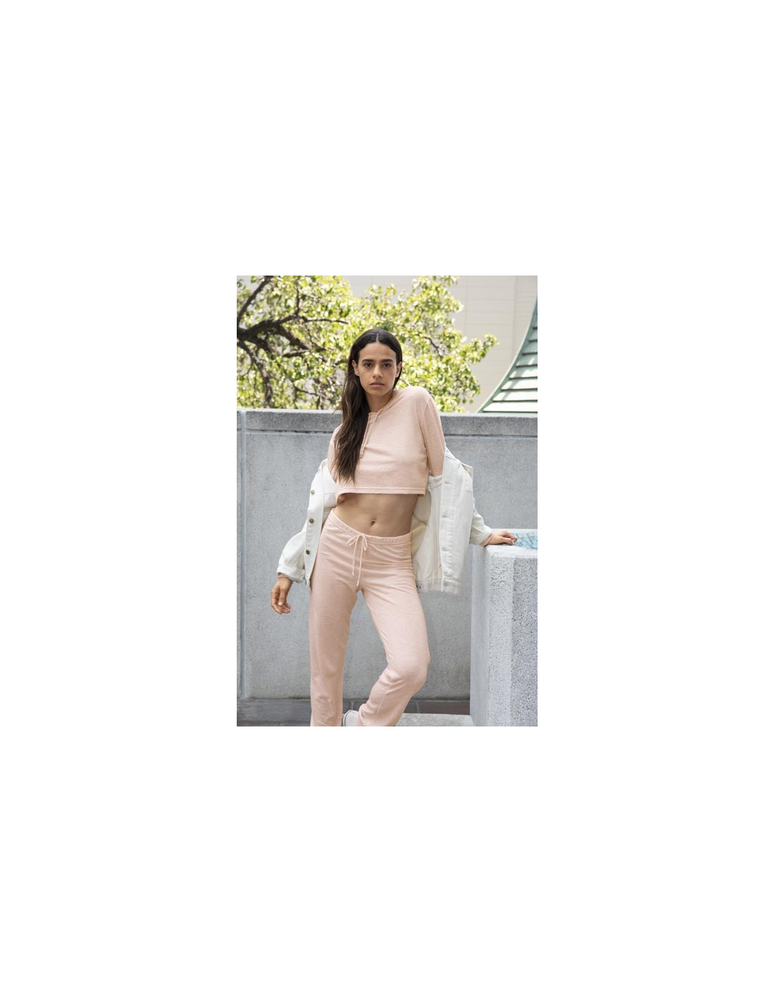 • 2.5 cm covered elastic waist with self-fabric exposed drawcord