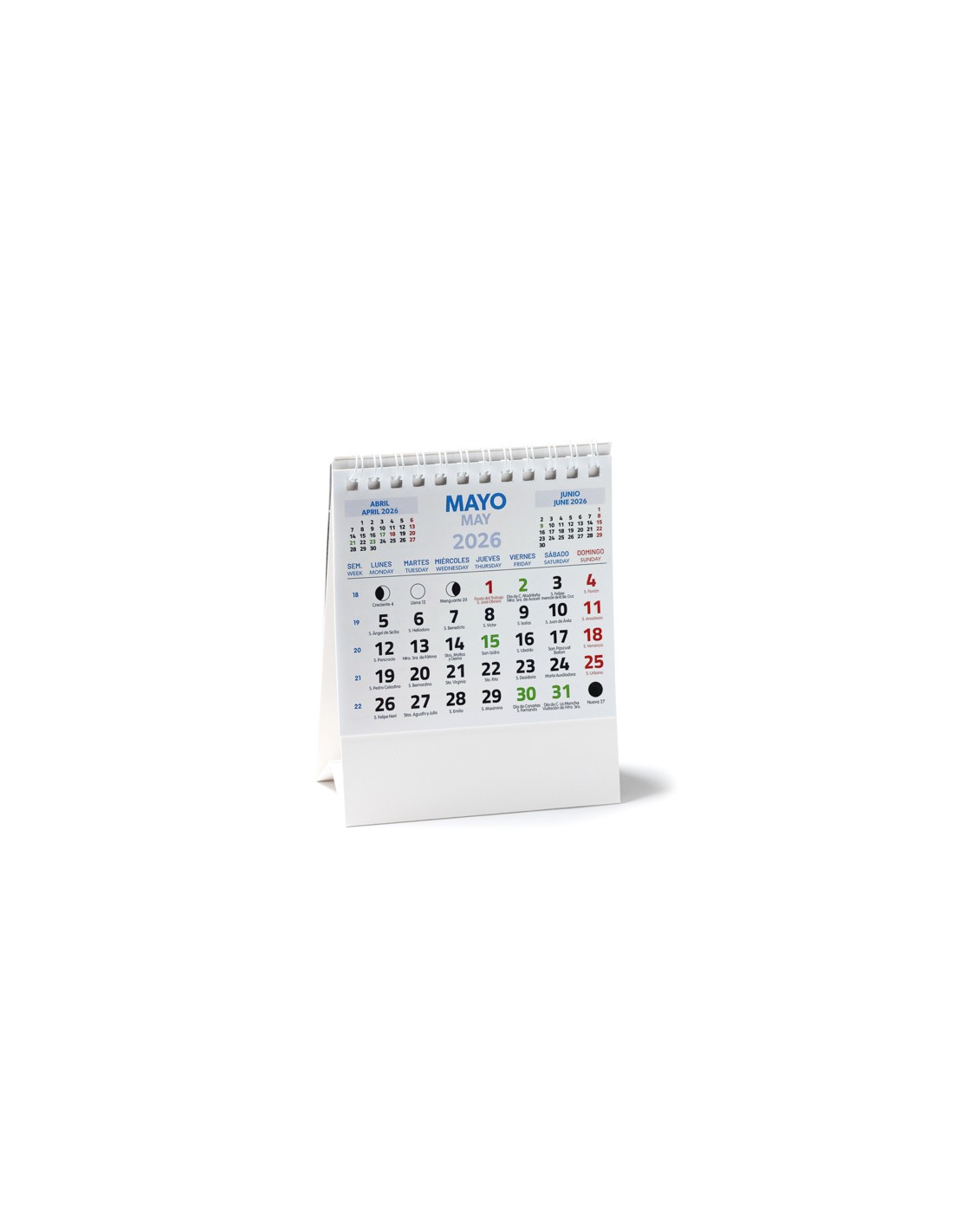 Pionowy kalendarz biurkowy z pierścieniami. Zaprojektuj bieżący miesiąc / poprzedni miesiąc / następny miesiąc / kalendarz roczny. Obejmuje dzień świętych. Kartonowa obudowa idealna do znakowania.