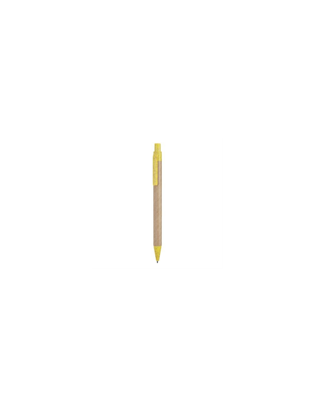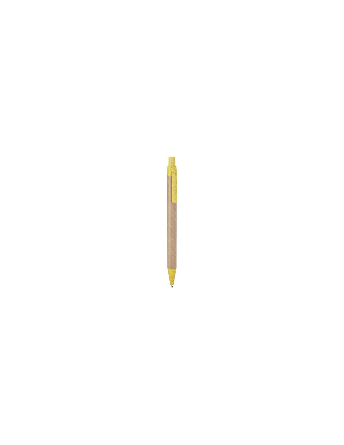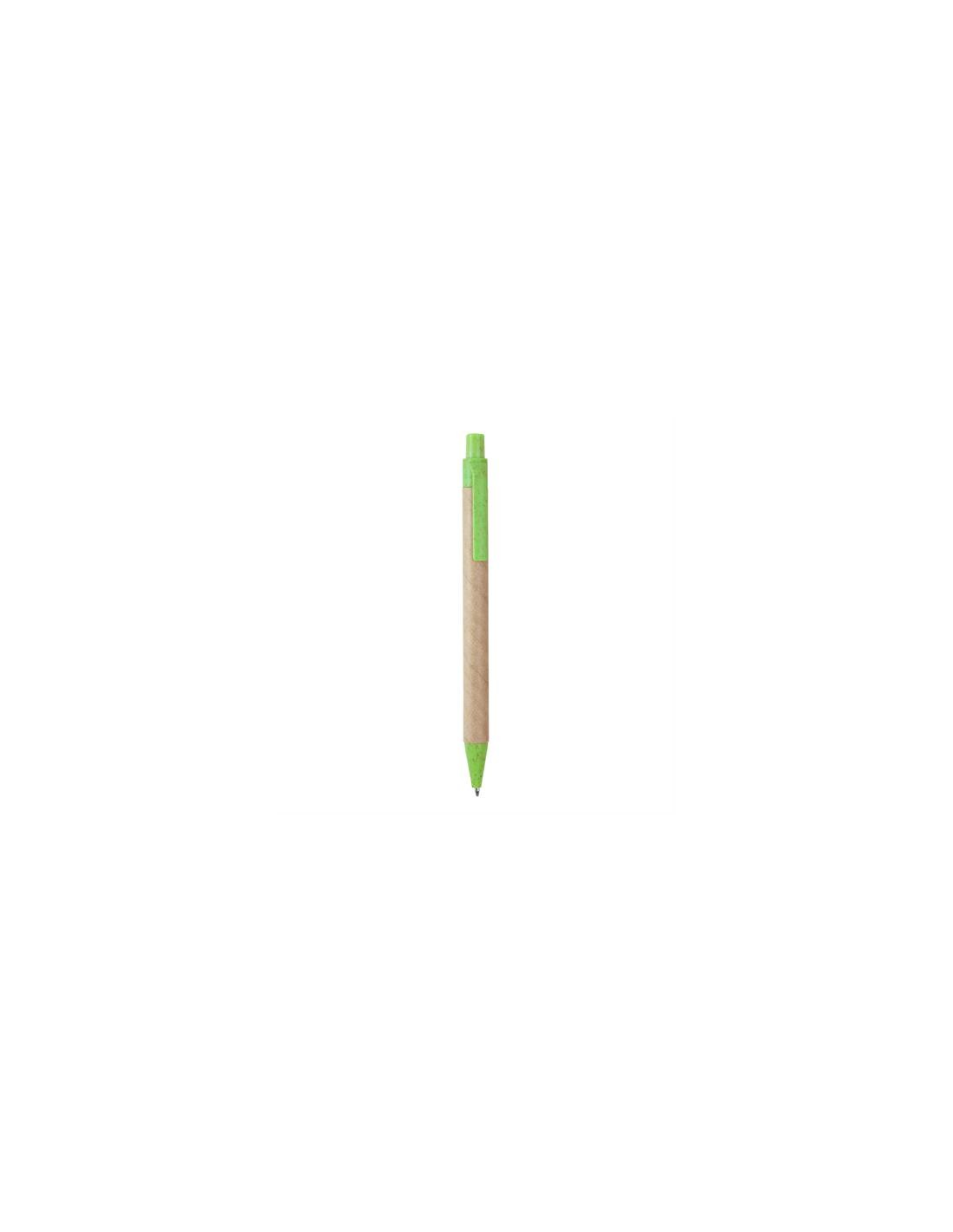 Przyciskane dlugopis wykonane z kartonu pochodzącego z recyklingu, z końcówką i klipsem z włókna pszenicznego i tworzywa ABS. Niebieski atrament.