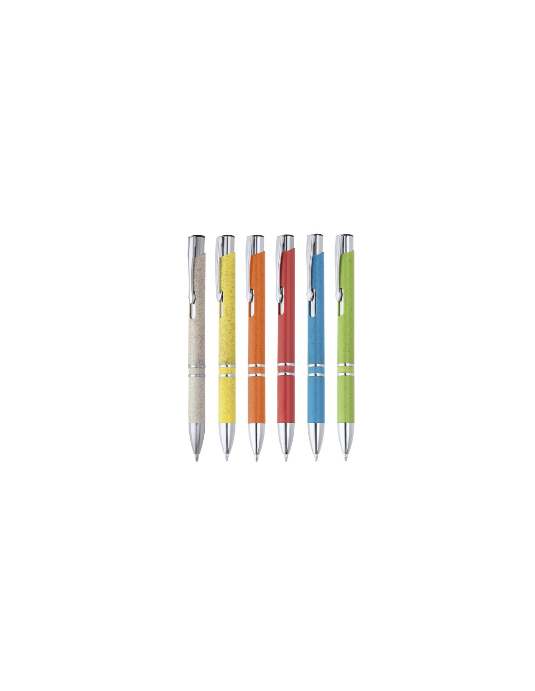 Długopis z włókna pszenicznego i ABS ze srebrnymi wykończeniami. Wkład Jumbo z niebieskim atramentem.