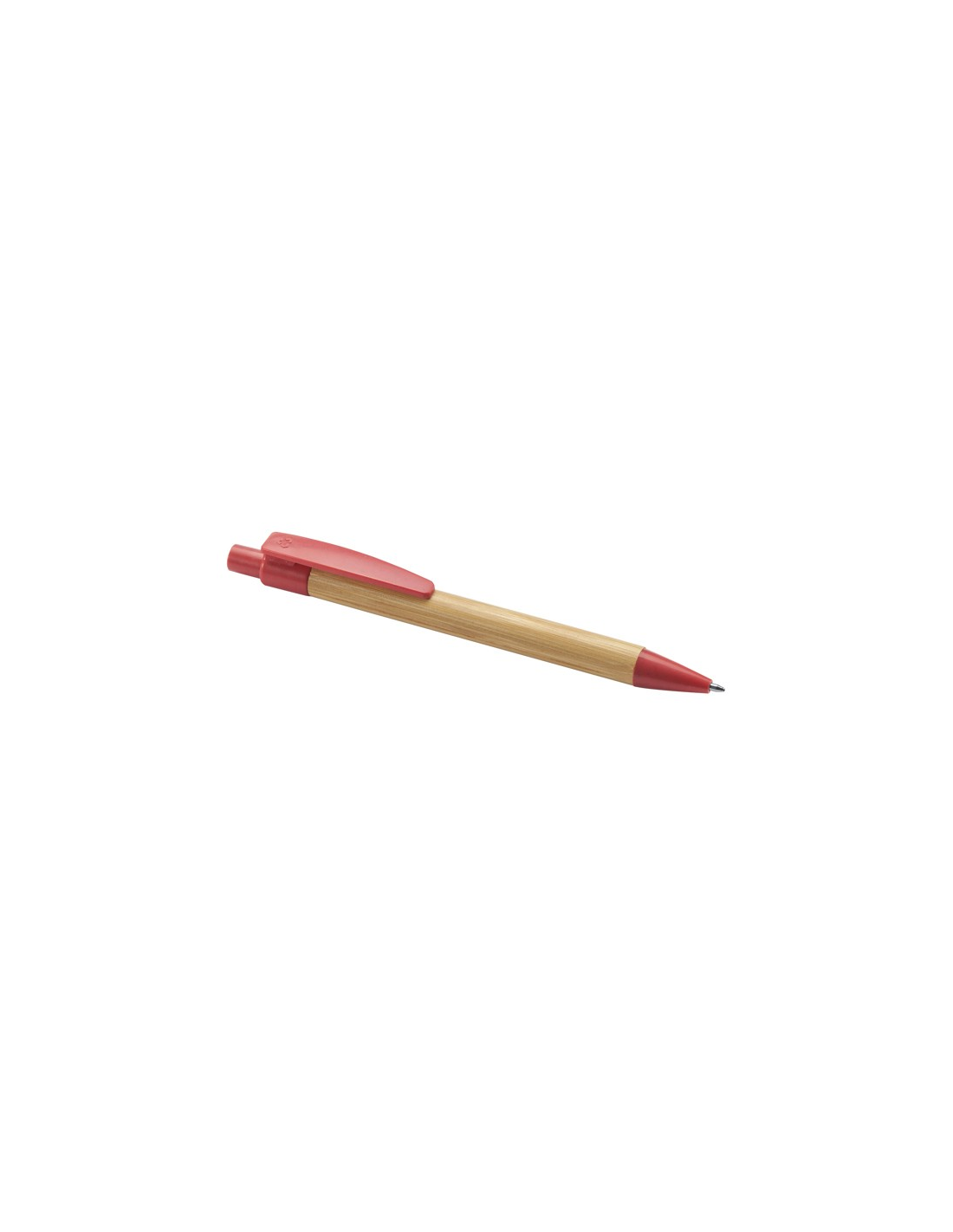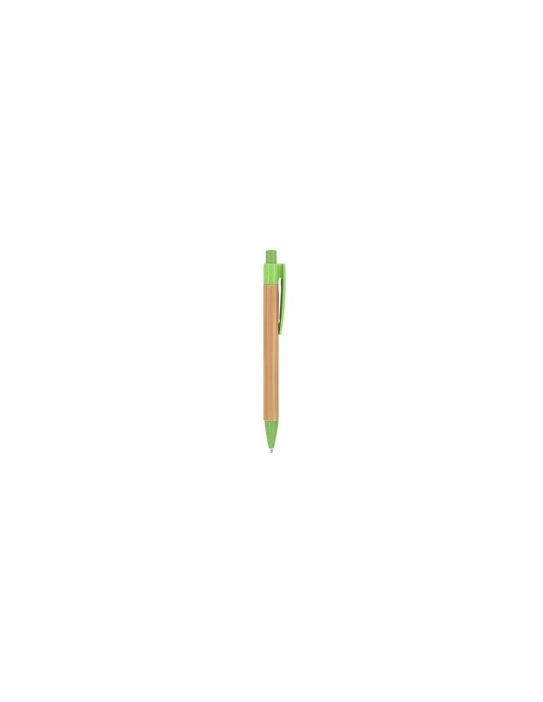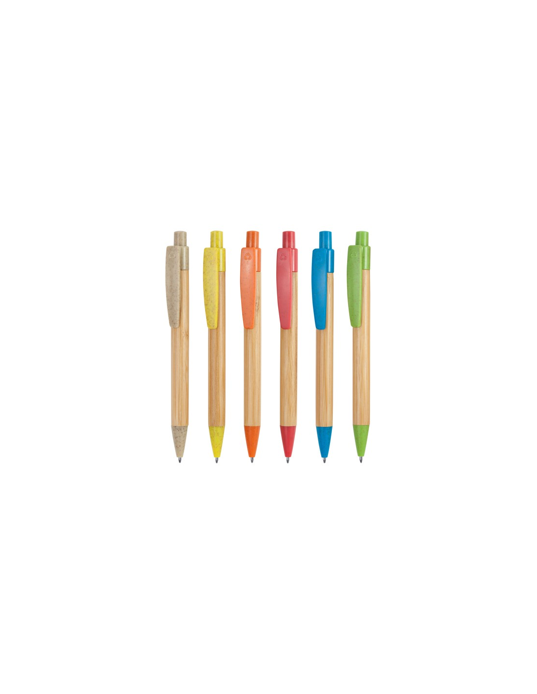 Przyciskane dlugopis z bambusowym korpusem i akcesoriami z włókna pszenicznego/ABS. Niebieski atrament.