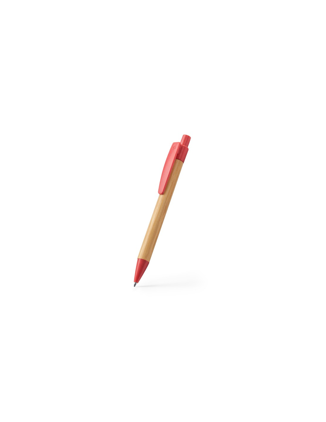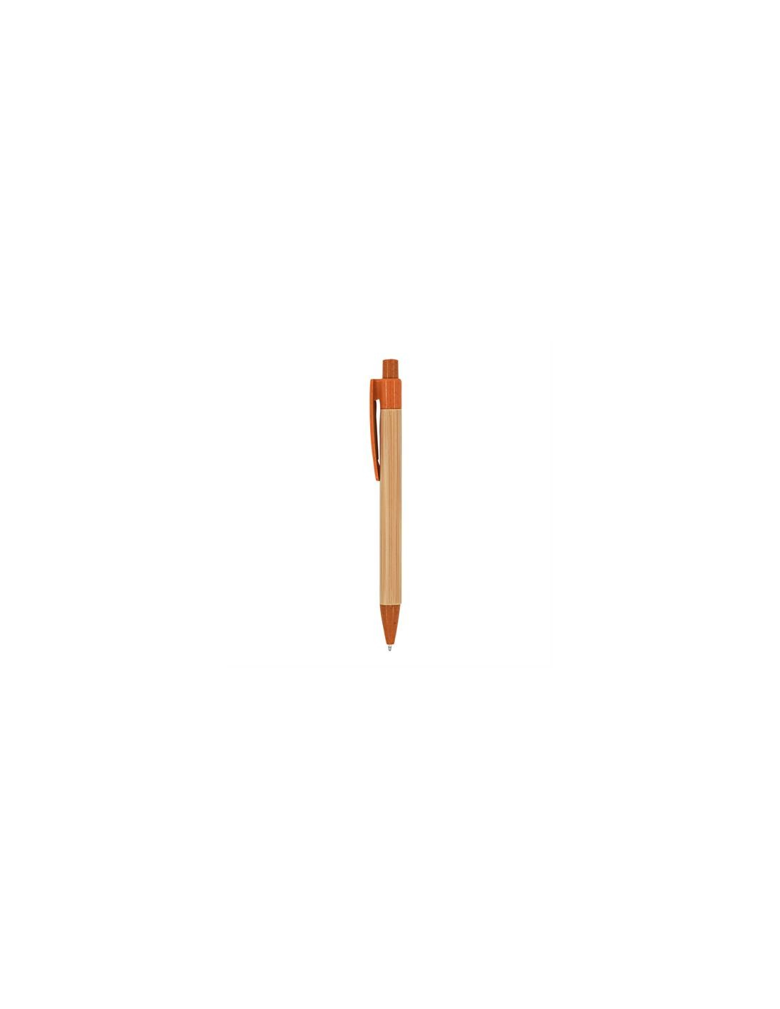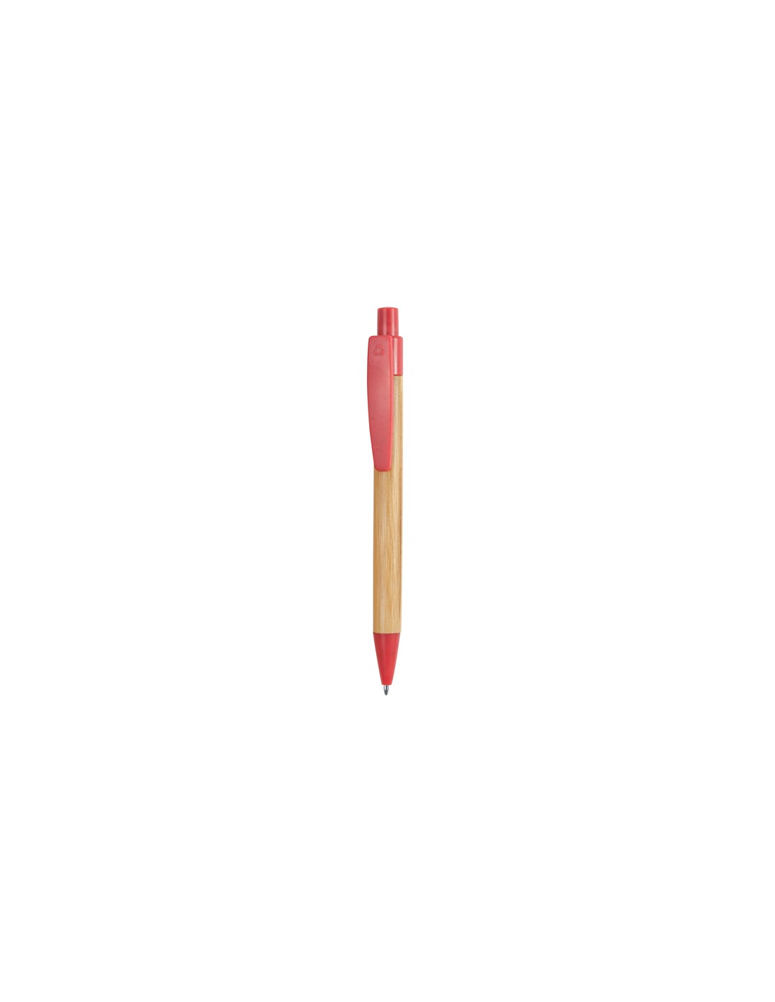 Przyciskane dlugopis z bambusowym korpusem i akcesoriami z włókna pszenicznego/ABS. Niebieski atrament.