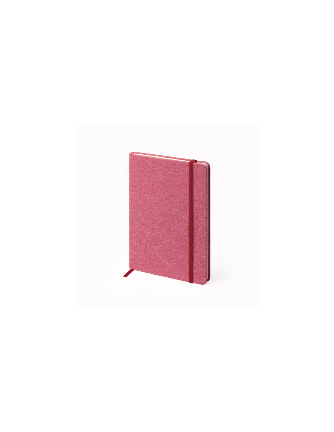 Notatnik w formacje A5 z bawełnianą okładką. Zakładka i gumka elastyczna. 100 gładkich arkuszy.