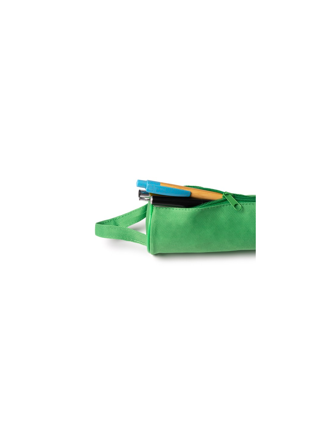 Cylindryczne etui wykonane z poliestru 600D RPET w jednolitych kolorach i z dopasowanym zamkiem błyskawicznym.