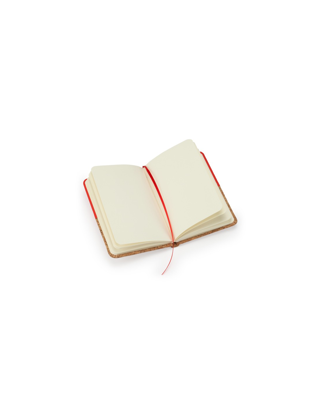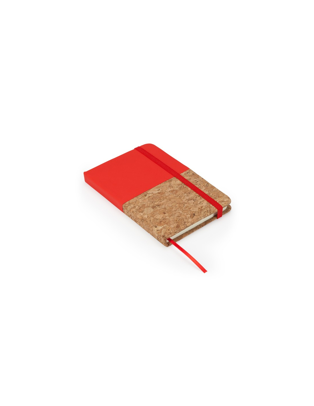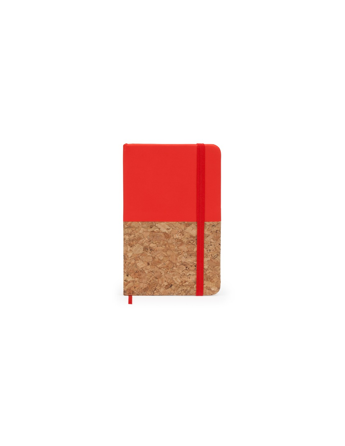 Notatnik A6. Okładka twarda mieszana korek/skóra. Zakładka do książki i gumka. 80 arkuszy.