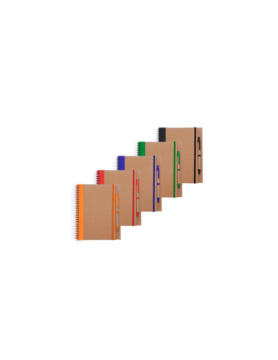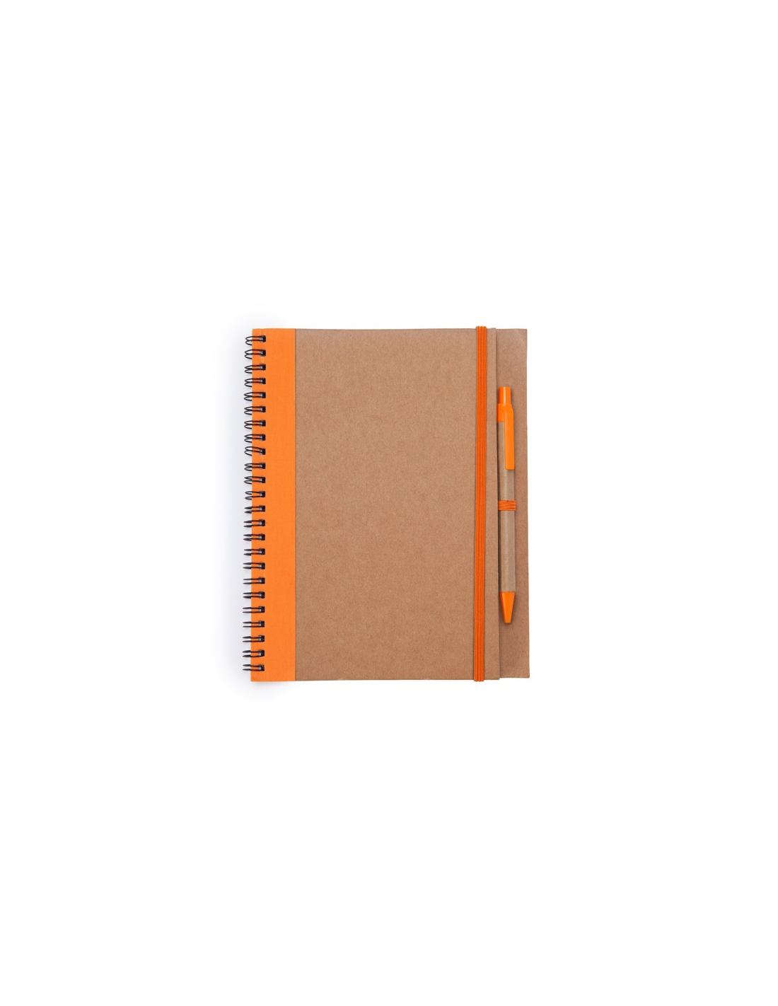 Notatnik na spirali z twardą okładką wykonaną z kartonu pochodzącego z recyklingu. Zawiera pasujący długopis z niebieskim tuszem. 60 stron.