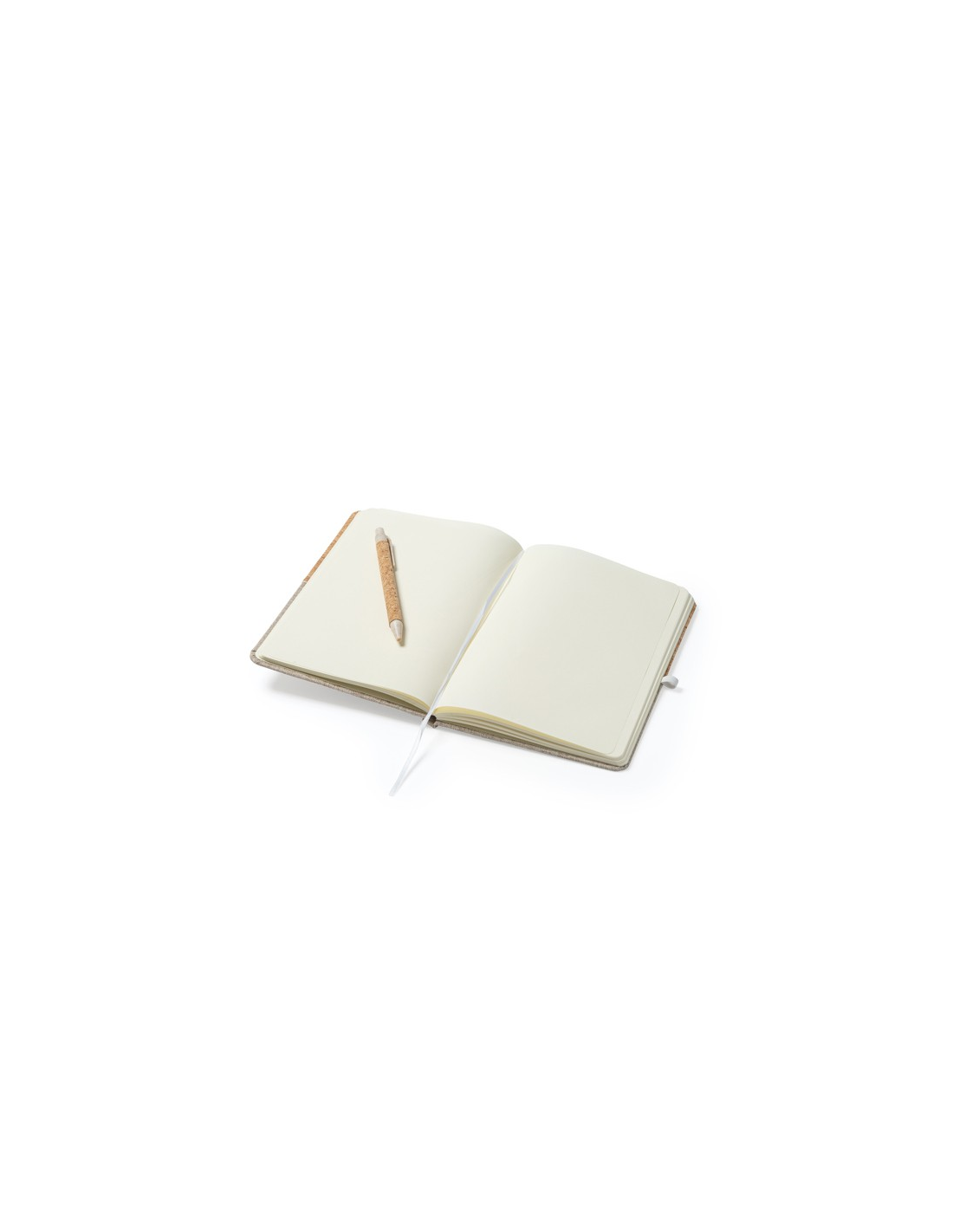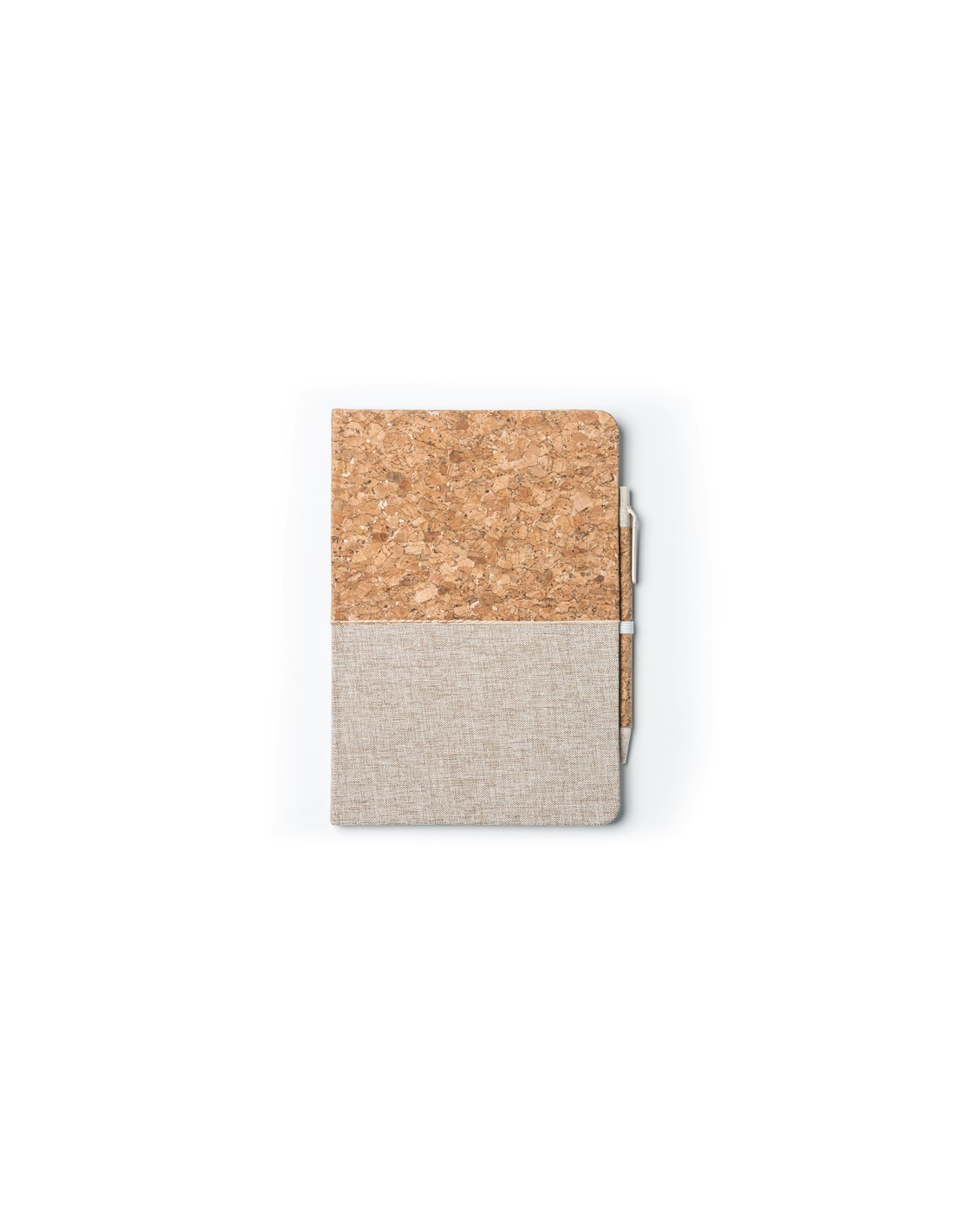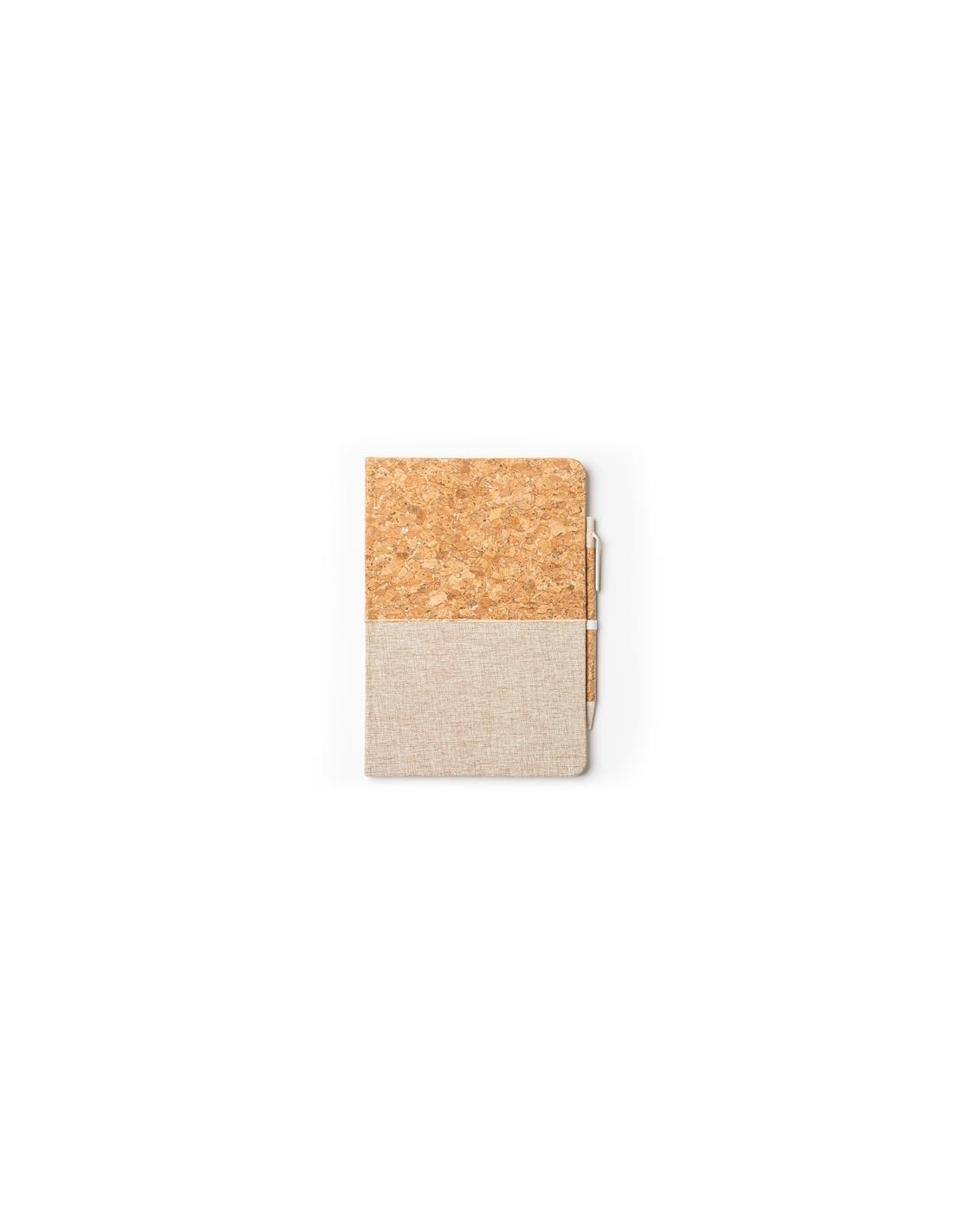 Notatnik A5 z twardą korkową i bawełnianą okładką. 80 gładkich kartek. Zawiera pasujący uchwyt na pióro z korka i włókna pszenicznego.