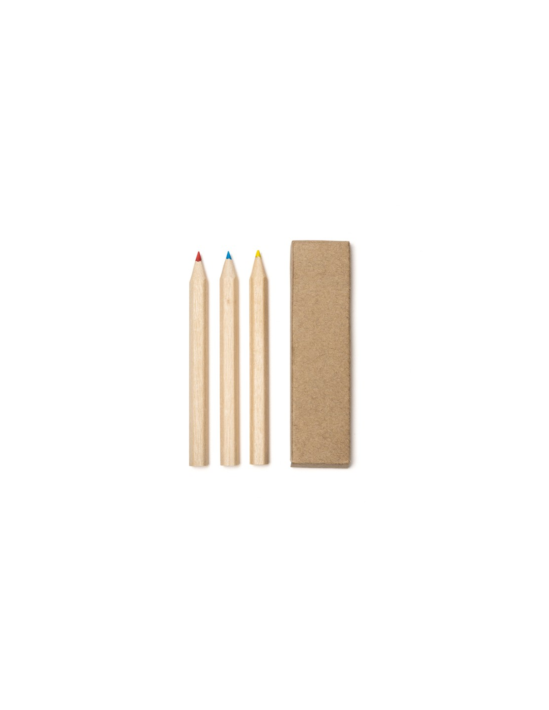 Zestaw 3 drewnianych ołówków w tekturowym pudełku pochodzącym z recyklingu.