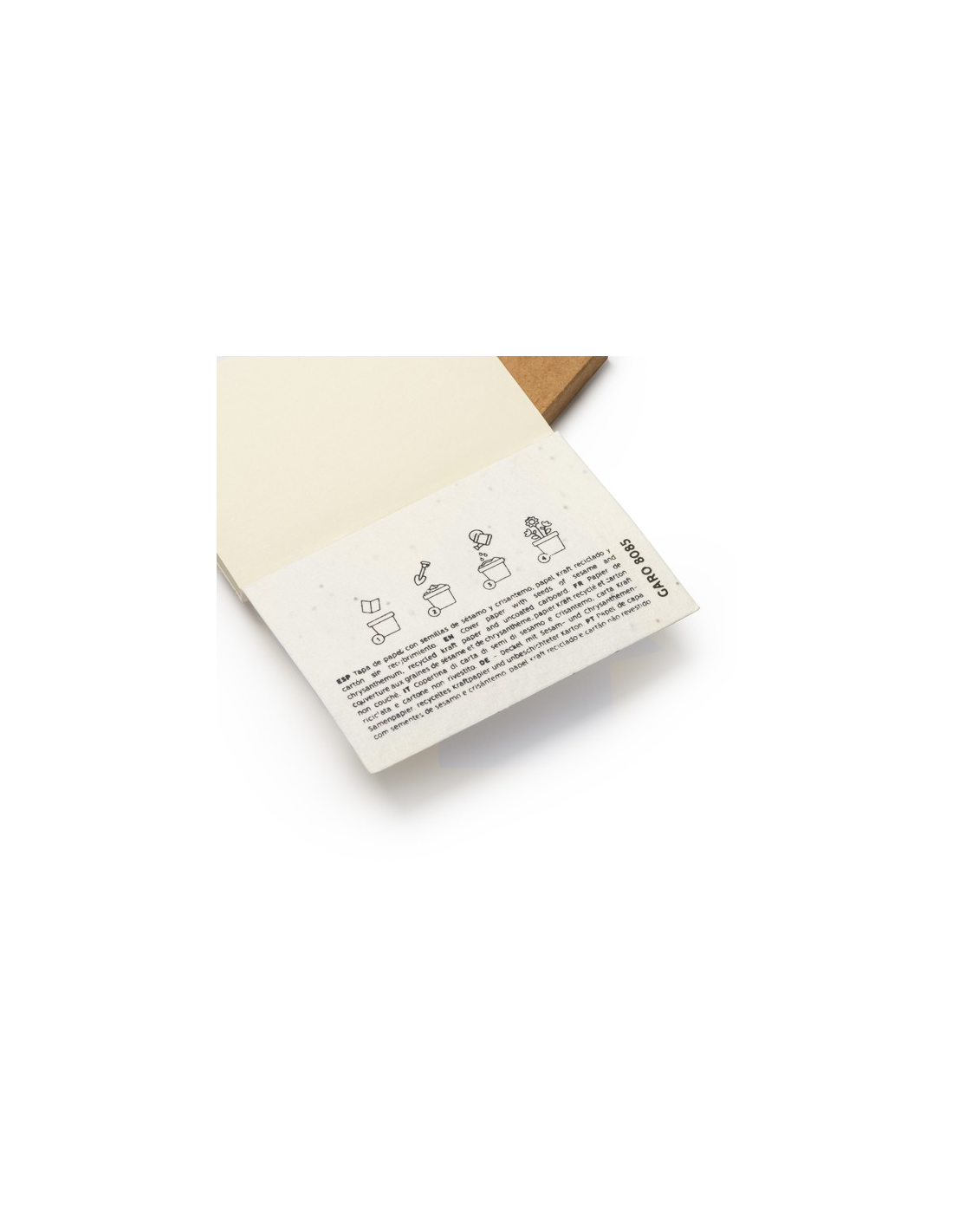Notatnik z okładkami z makulatury i degradowalnego papieru nasiennego. Zawiera 50 arkuszy papieru pochodzącego z recyklingu.