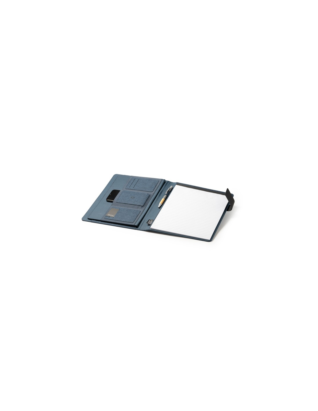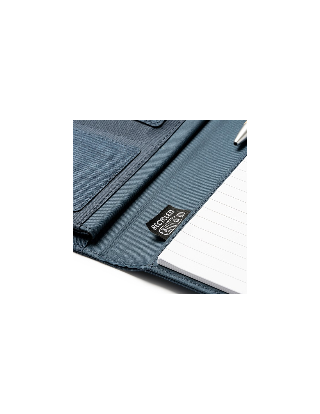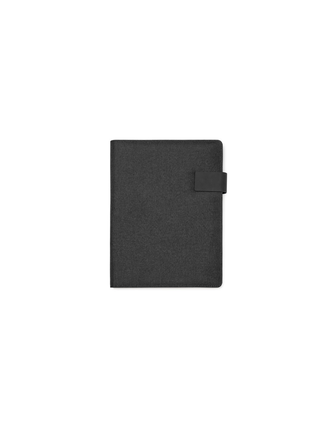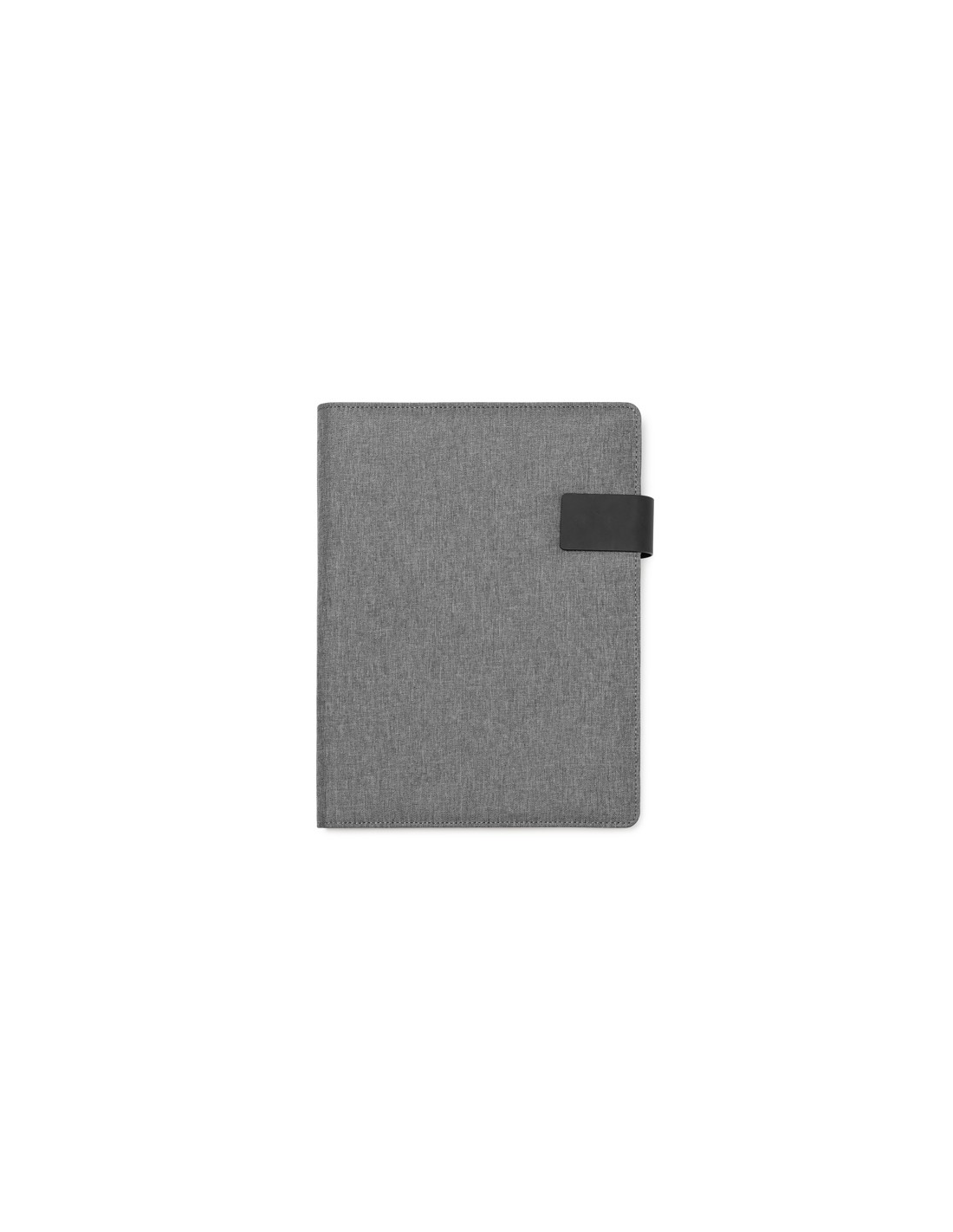 Uniwersalna teczka A4 wykonana z tkaniny RPET 600D ze wrzosowym wzorem i zapięciem magnetycznym. Wyściełana podkładka z 30 arkuszami w zestawie. 4 kieszenie wewnętrzne i uchwyt na długopis.