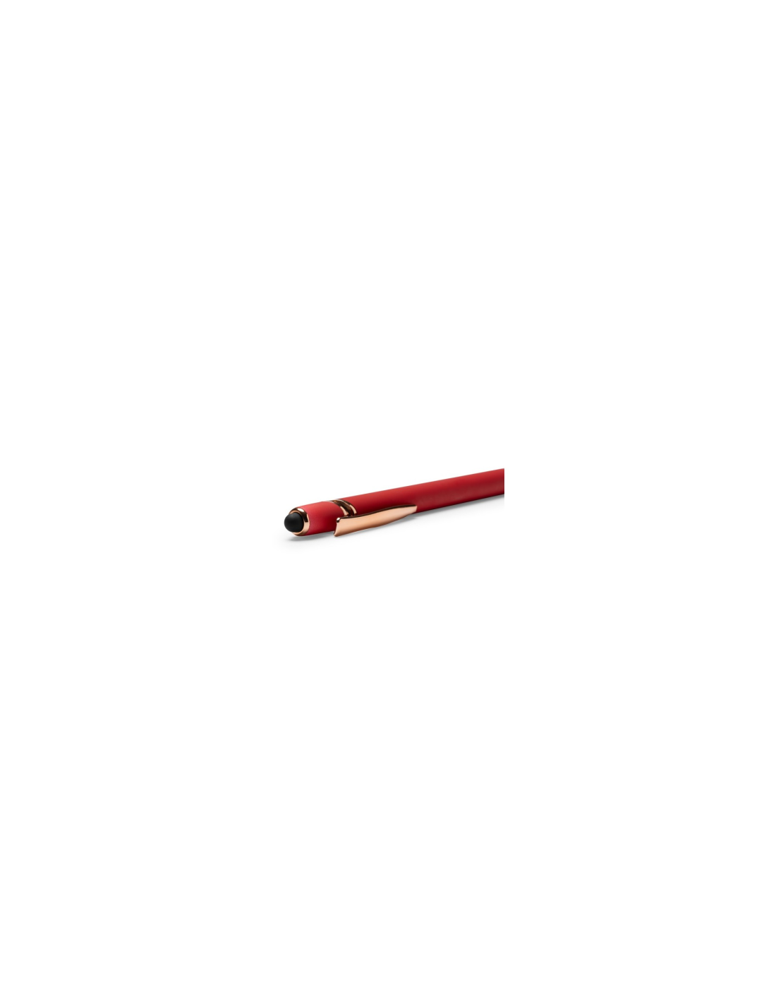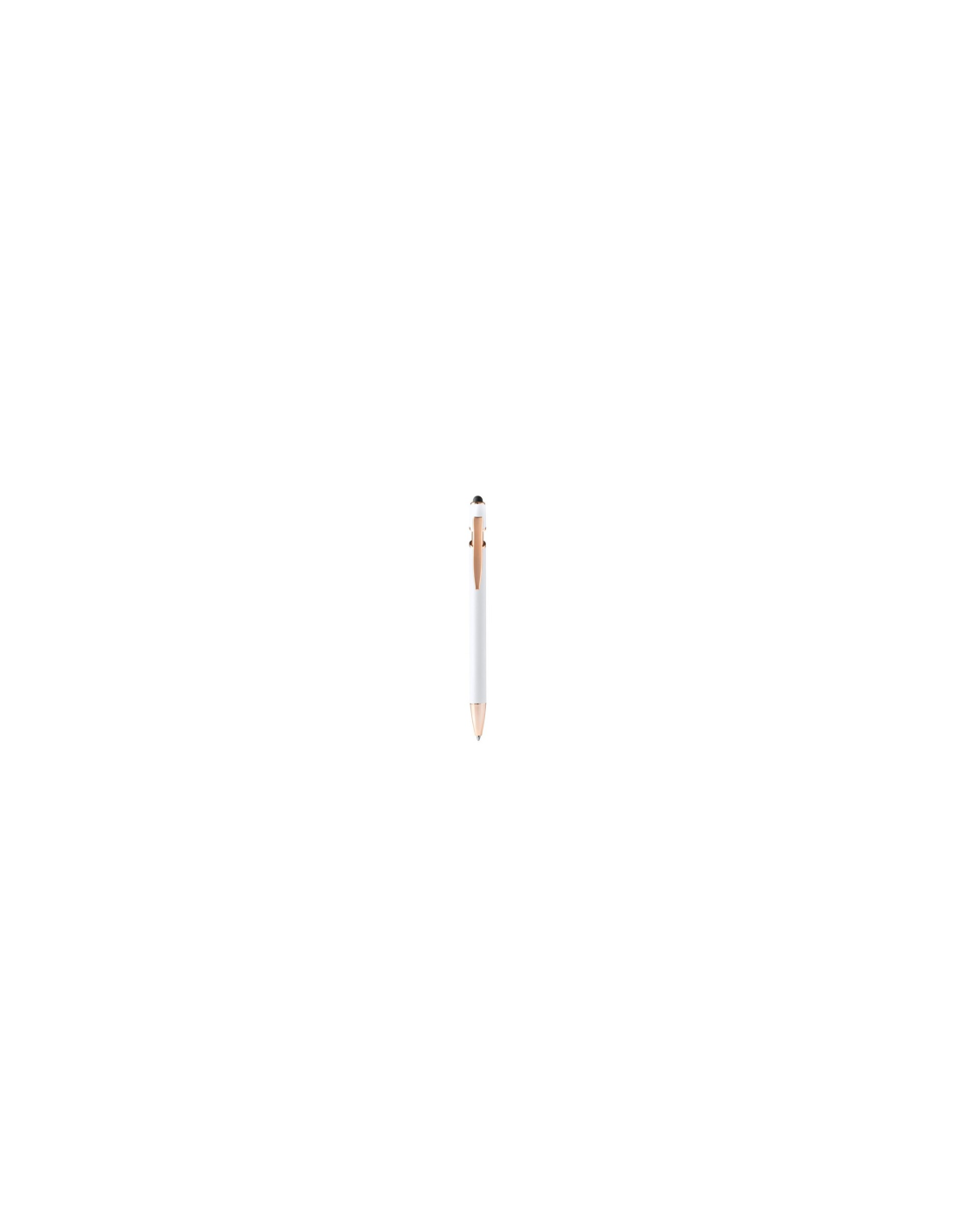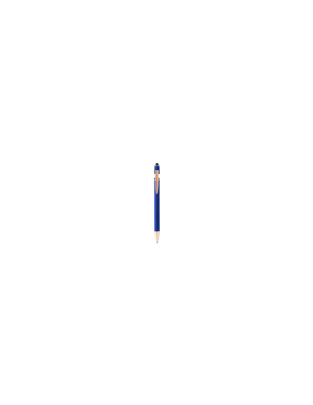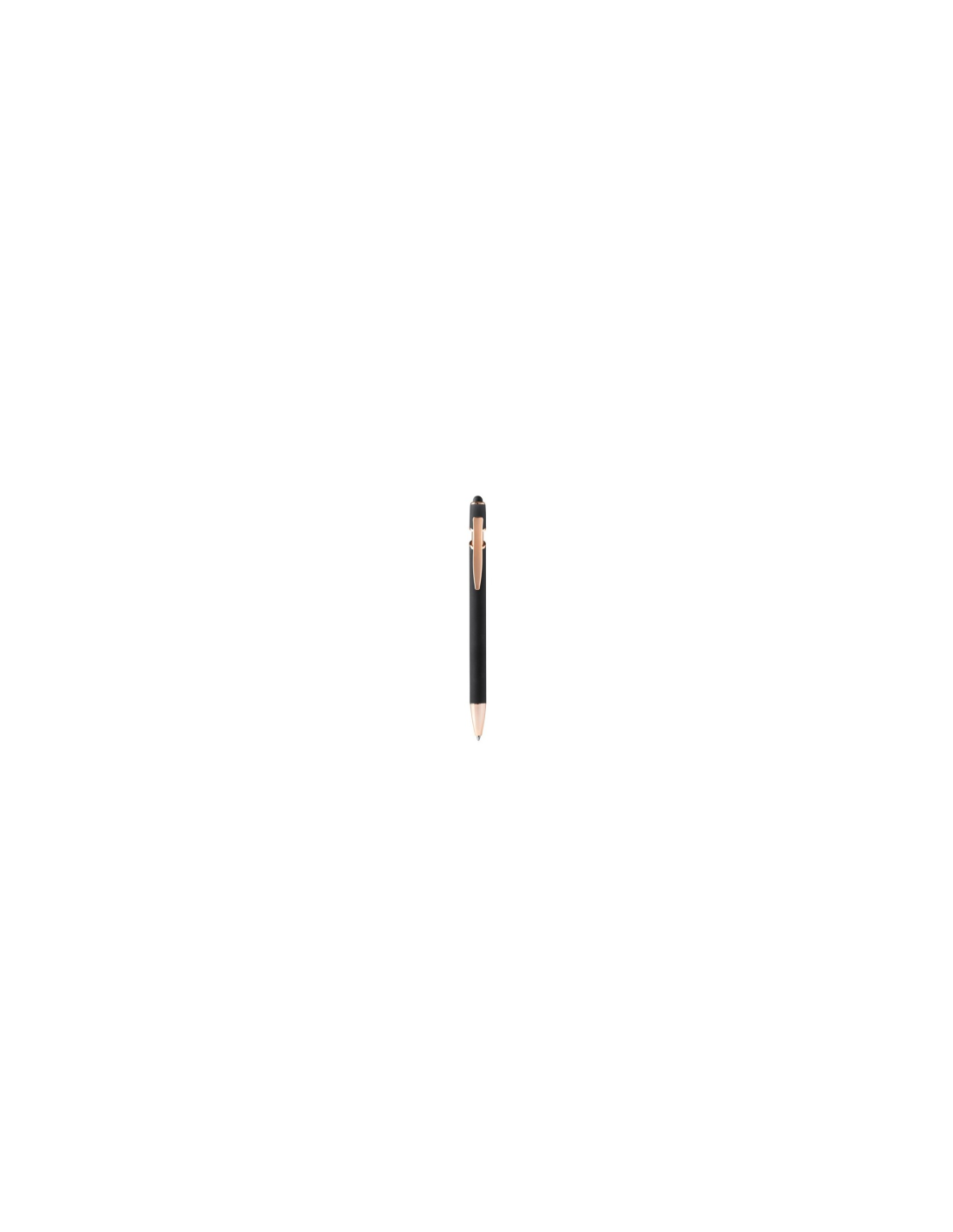 Miękki w dotyku metalowy długopis z detalami w kolorze różowego złota. Wkład Jumbo z niebieskim atramentem. Idealny do druku laserowego.