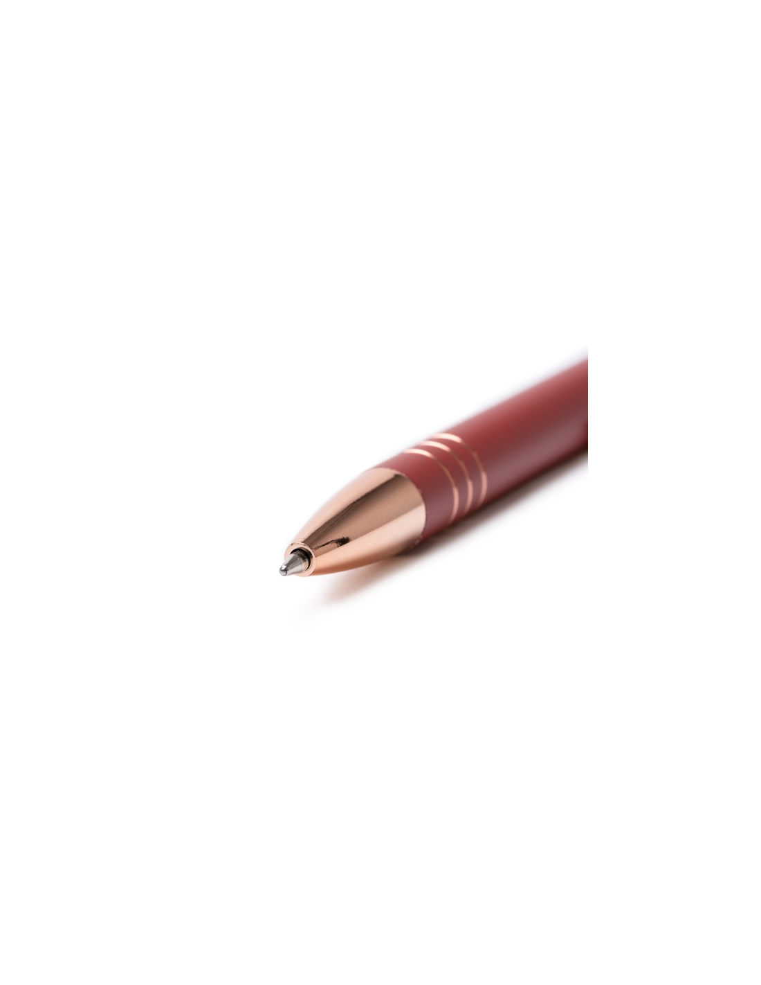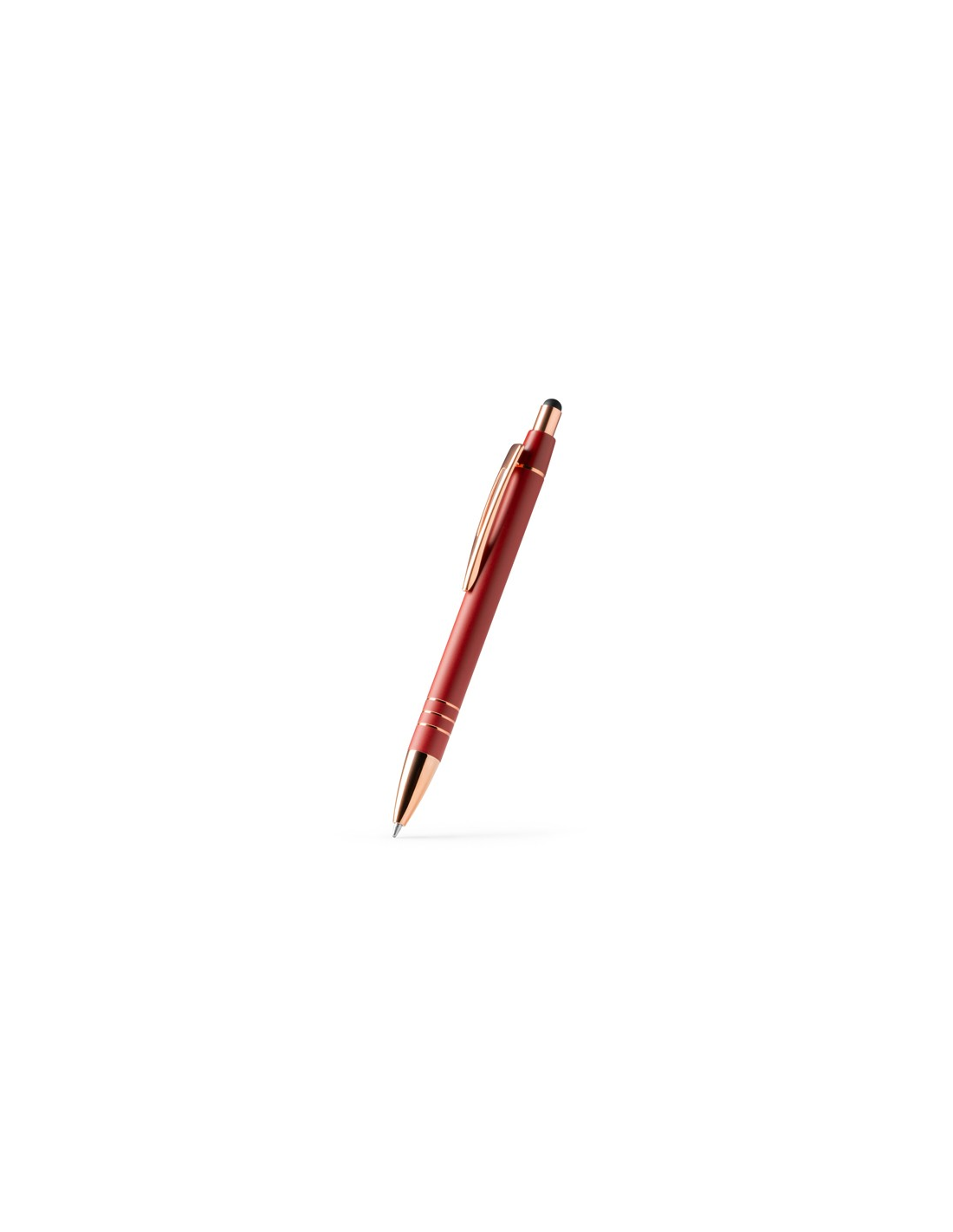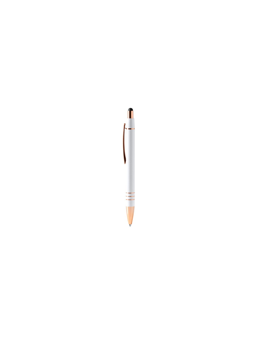 Wciskany długopis z przyciskiem, z metalowym korpusem o matowym wykończeniu i detalami w miedzianym okablowaniu. Wskaźnik dotykowy na dole. Wkład Jumbo z tuszem w kolorze niebieskim.