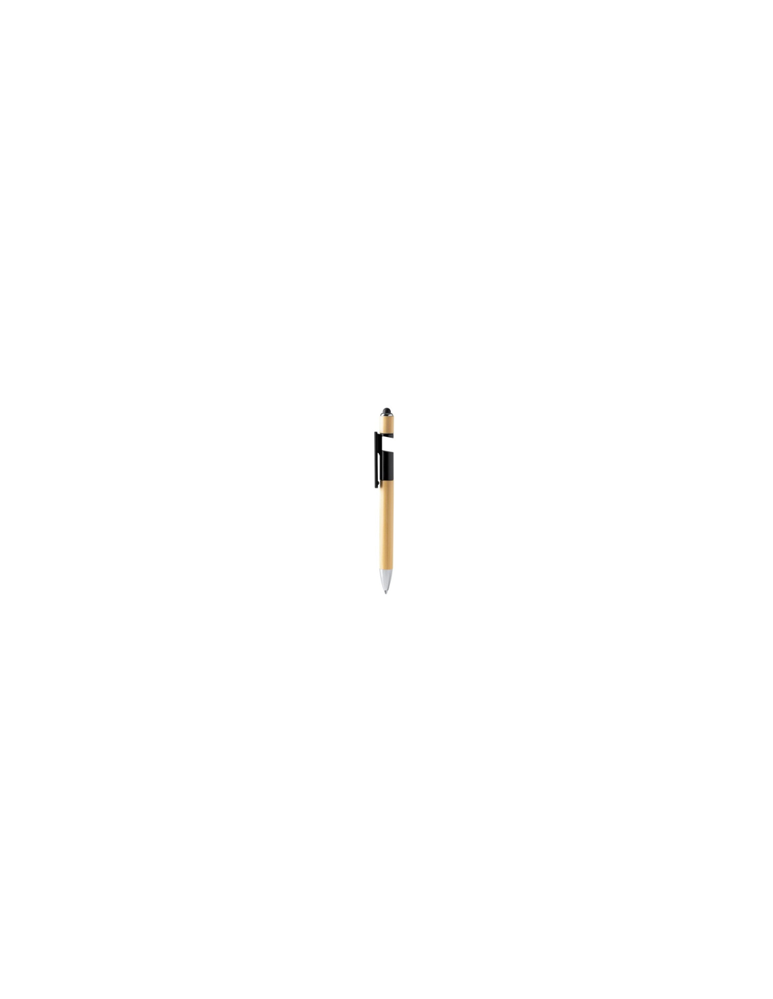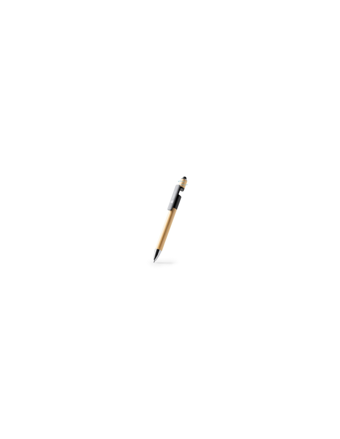 Długopis z zabawką antystresową. Bambusowy korpus i uchwyt na smartfon. Wskaźnik dotykowy i metaliczne wykończenie. Niebieski tusz.