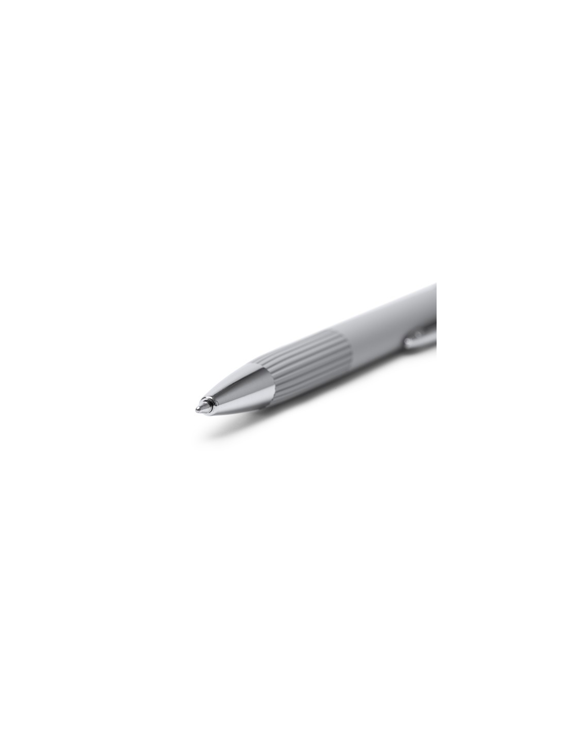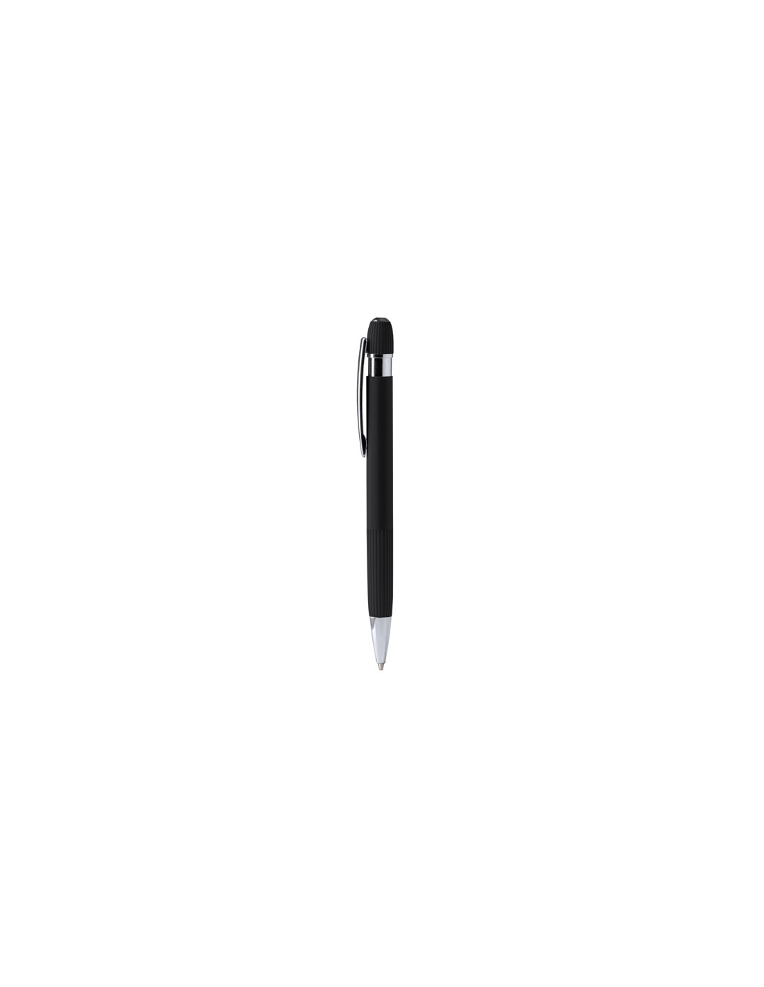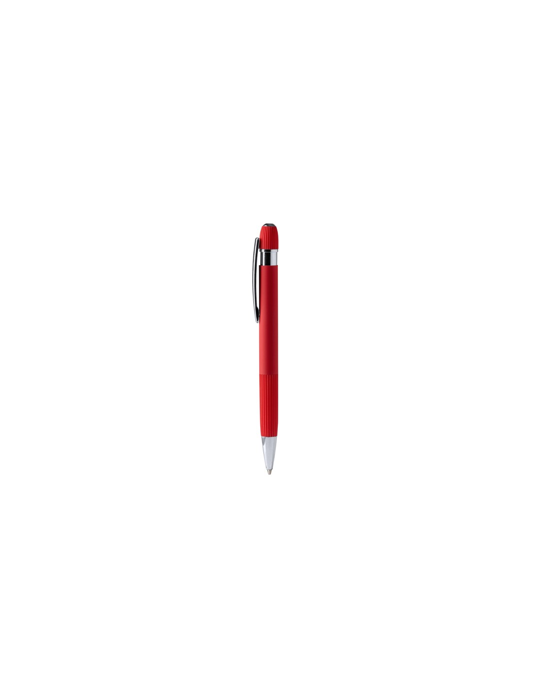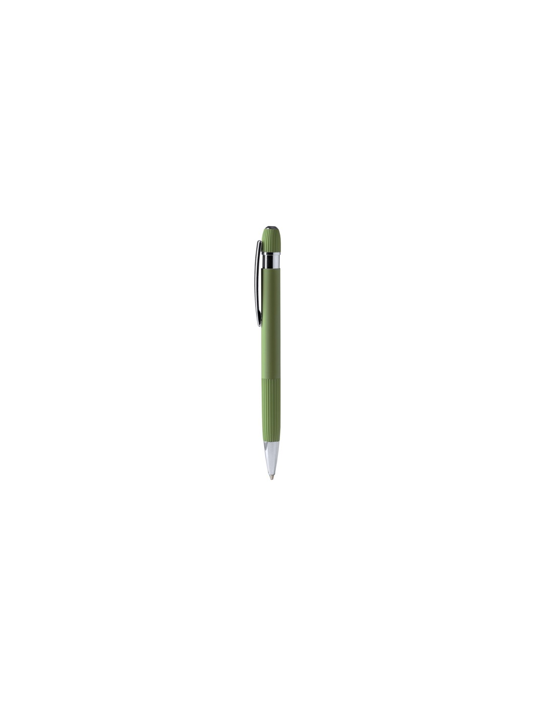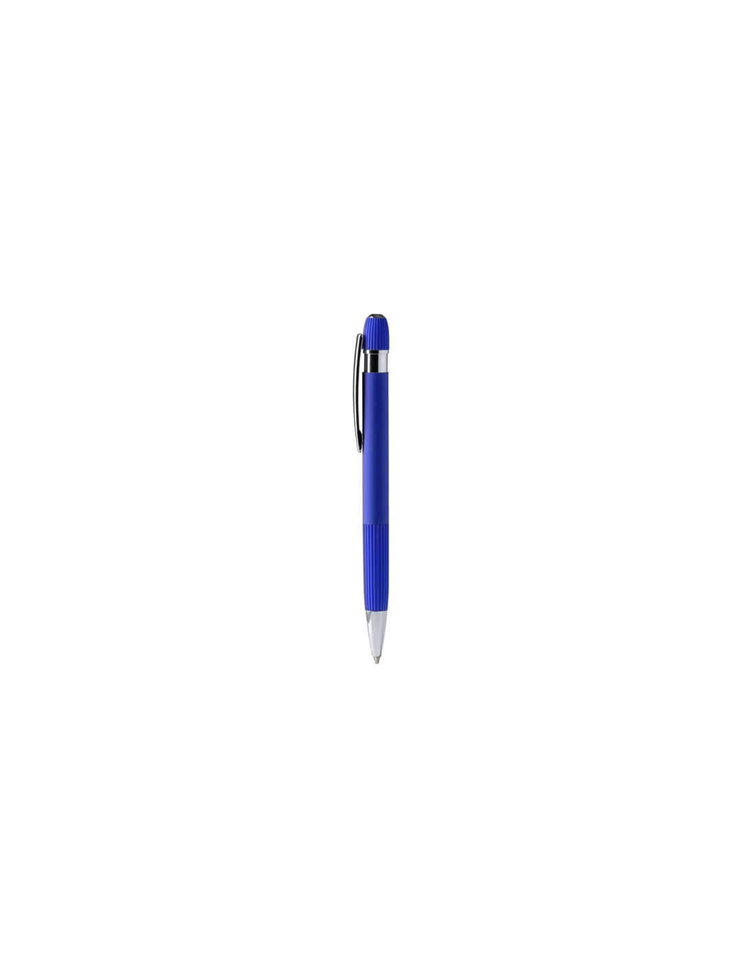 Długopis z korpusem w paski wykonanym z aluminium pochodzącego z recyklingu o matowym, gumowym wykończeniu. Detale o chromowanym wykończeniu. Wkład Jumbo z tuszem w kolorze niebieskim.