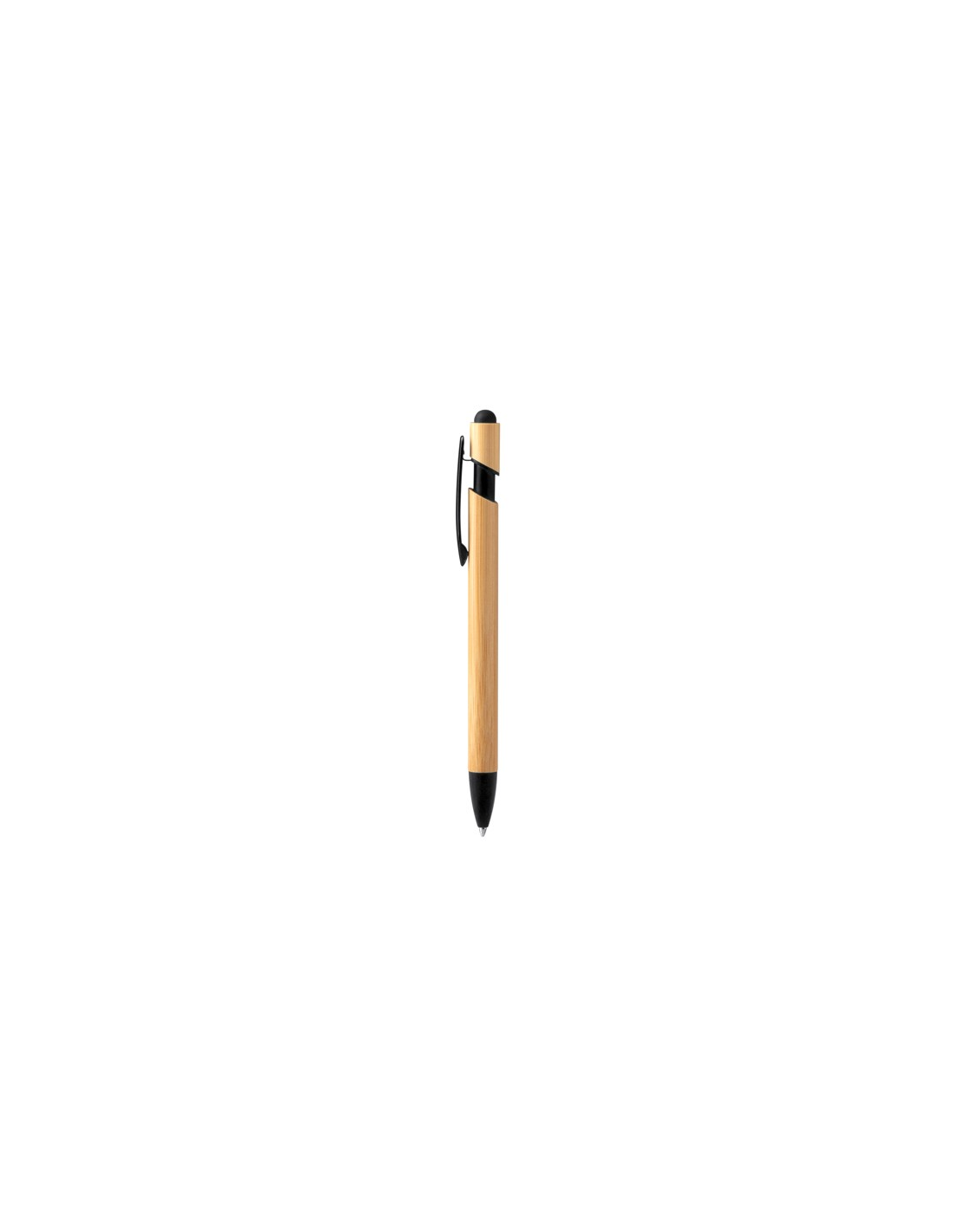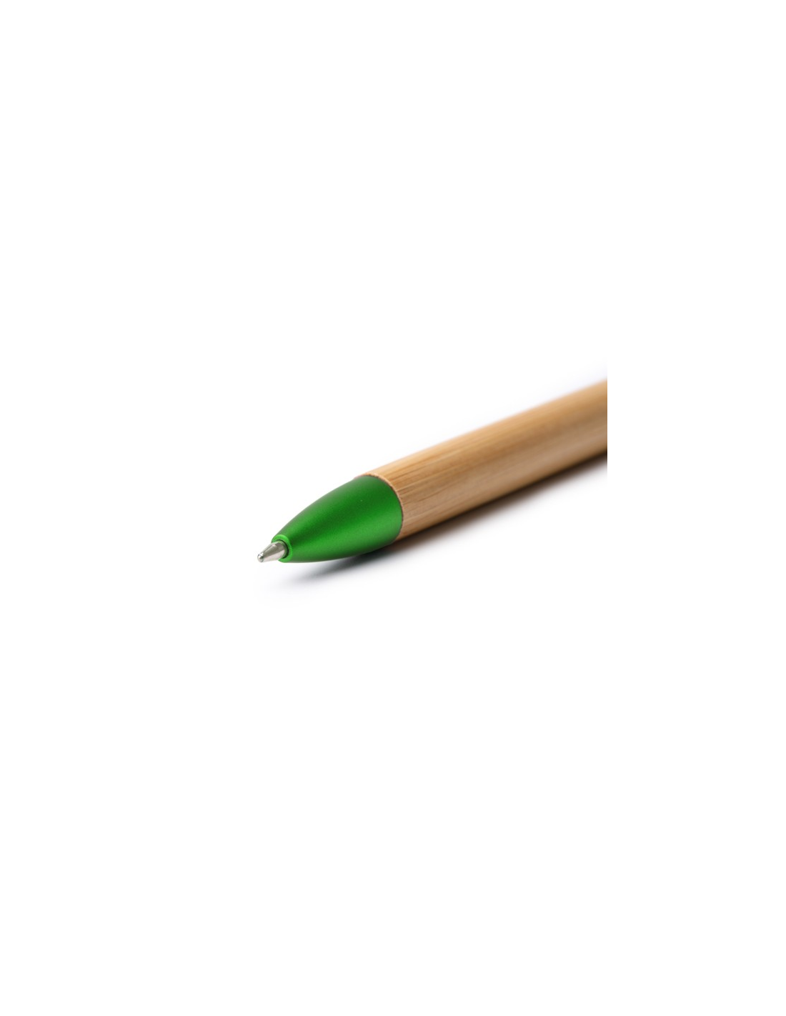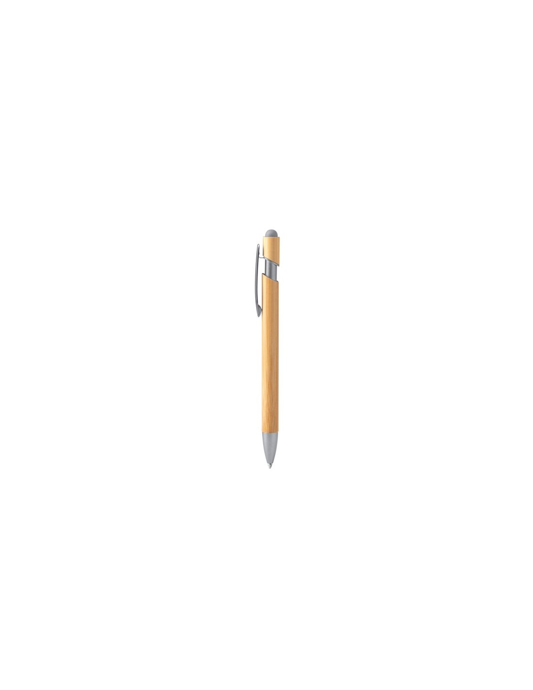 Długopis z korpusem i przyciskiem wykonanymi z bambusa. Kolorowe detale z chromowanym efektem i pasującym wskaźnikiem dotykowym. Wyposażony w duży nabój z niebieskim atramentem, pozwalającym na płynne pisanie i dłuższe użytkowanie.