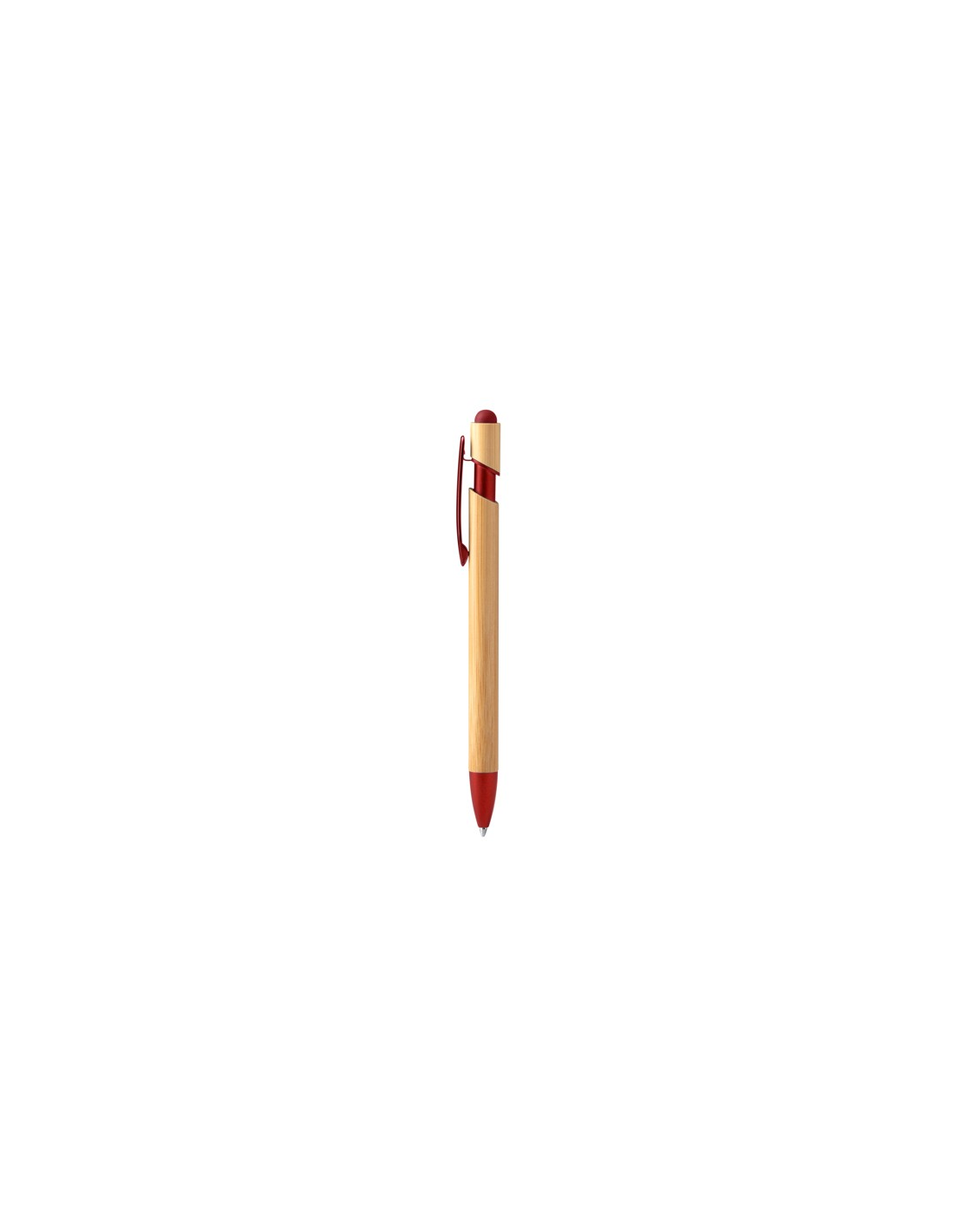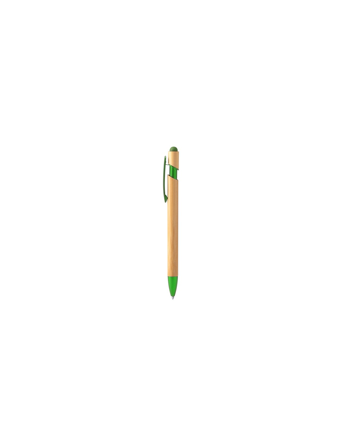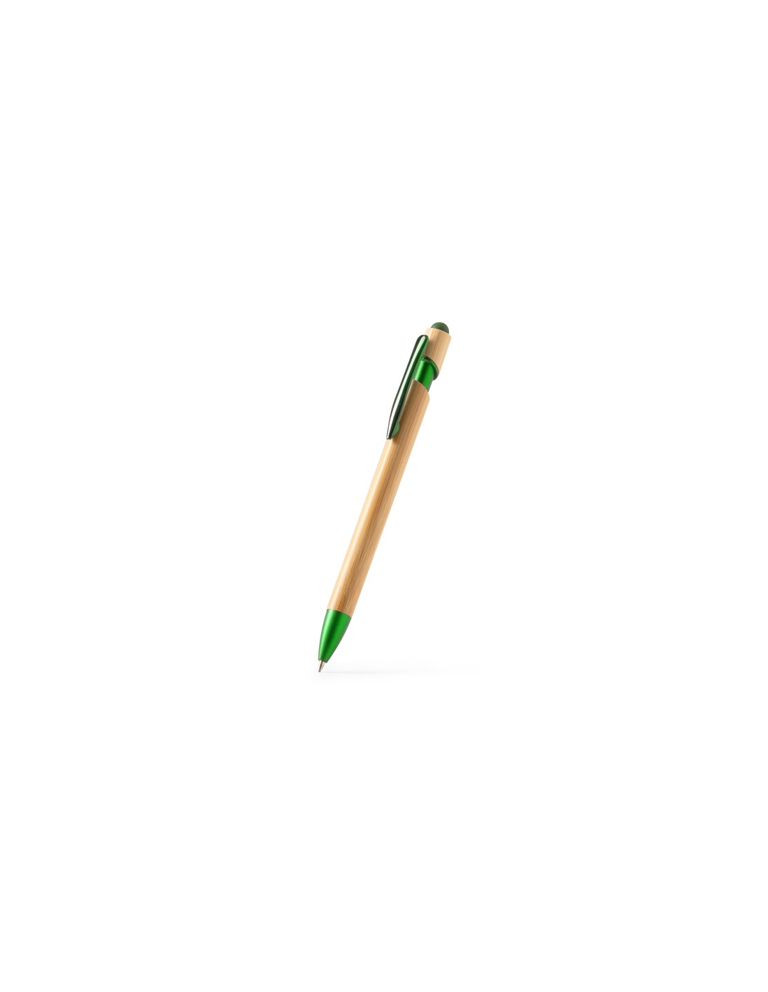 Długopis z korpusem i przyciskiem wykonanymi z bambusa. Kolorowe detale z chromowanym efektem i pasującym wskaźnikiem dotykowym. Wyposażony w duży nabój z niebieskim atramentem, pozwalającym na płynne pisanie i dłuższe użytkowanie.
