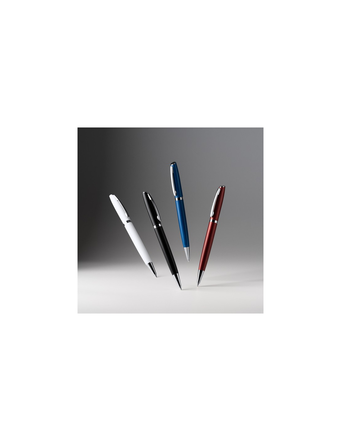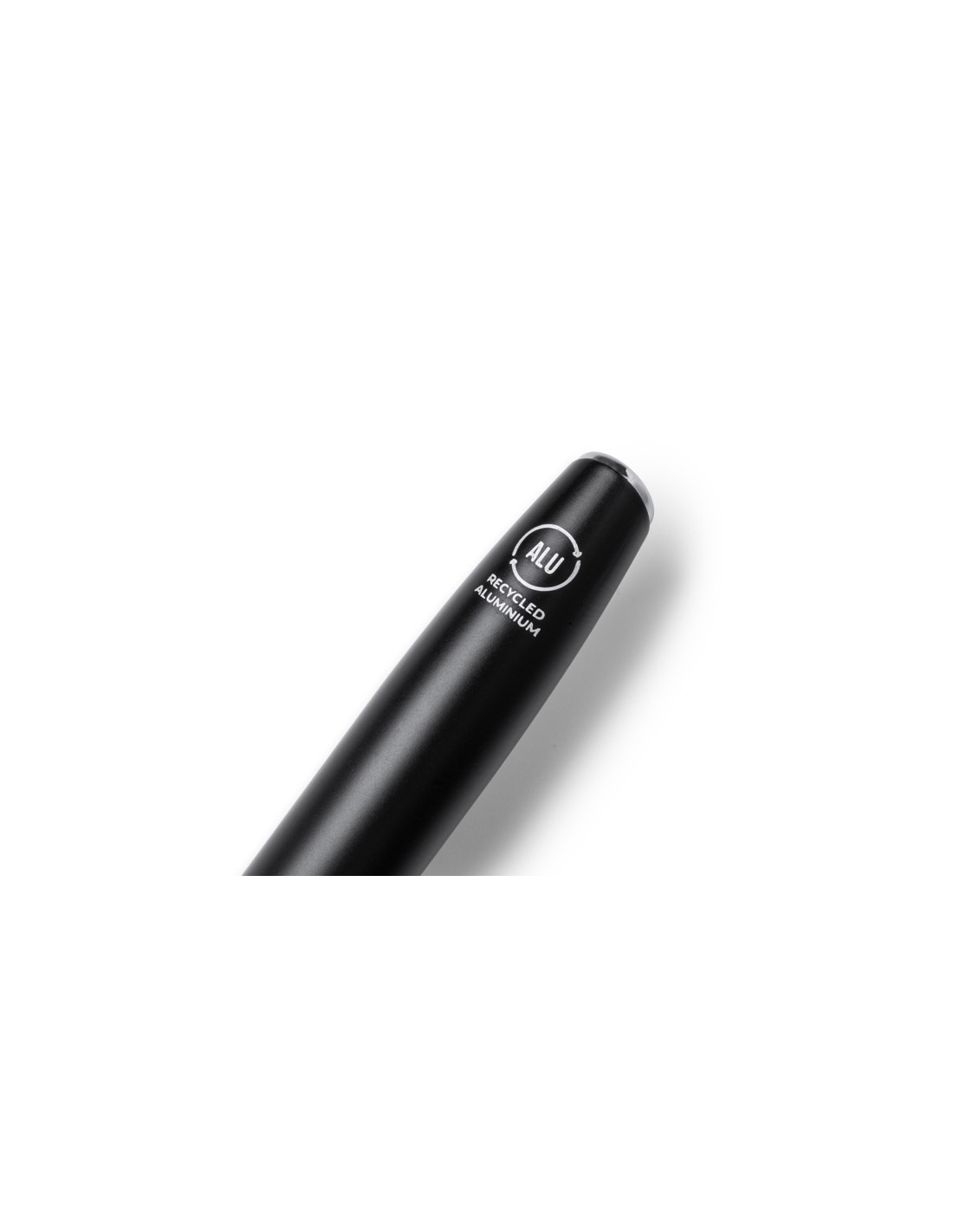 Elegancki przekręcany długopis z korpusem wykonanym z aluminium pochodzącego z recyklingu i szczegółowymi elementami wykonanymi z metalu. Wkład Jumbo z niebieskim atramentem.