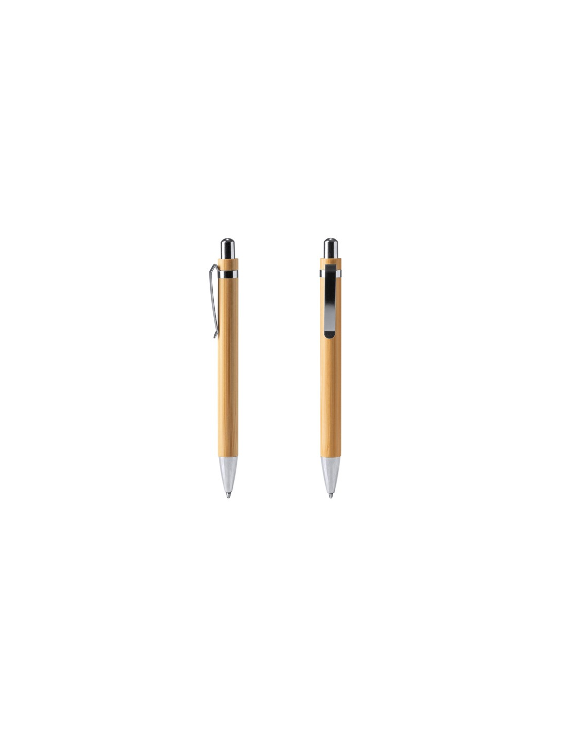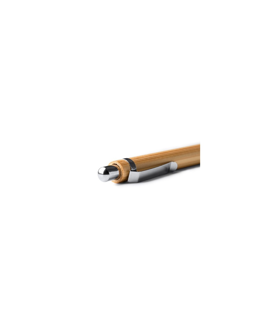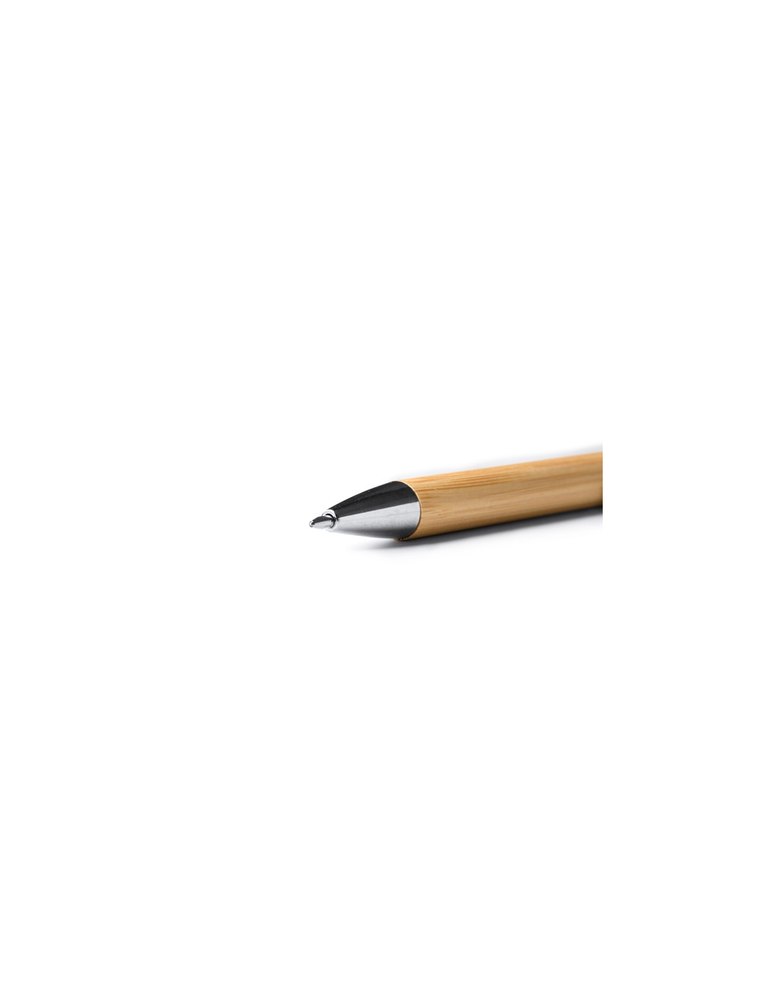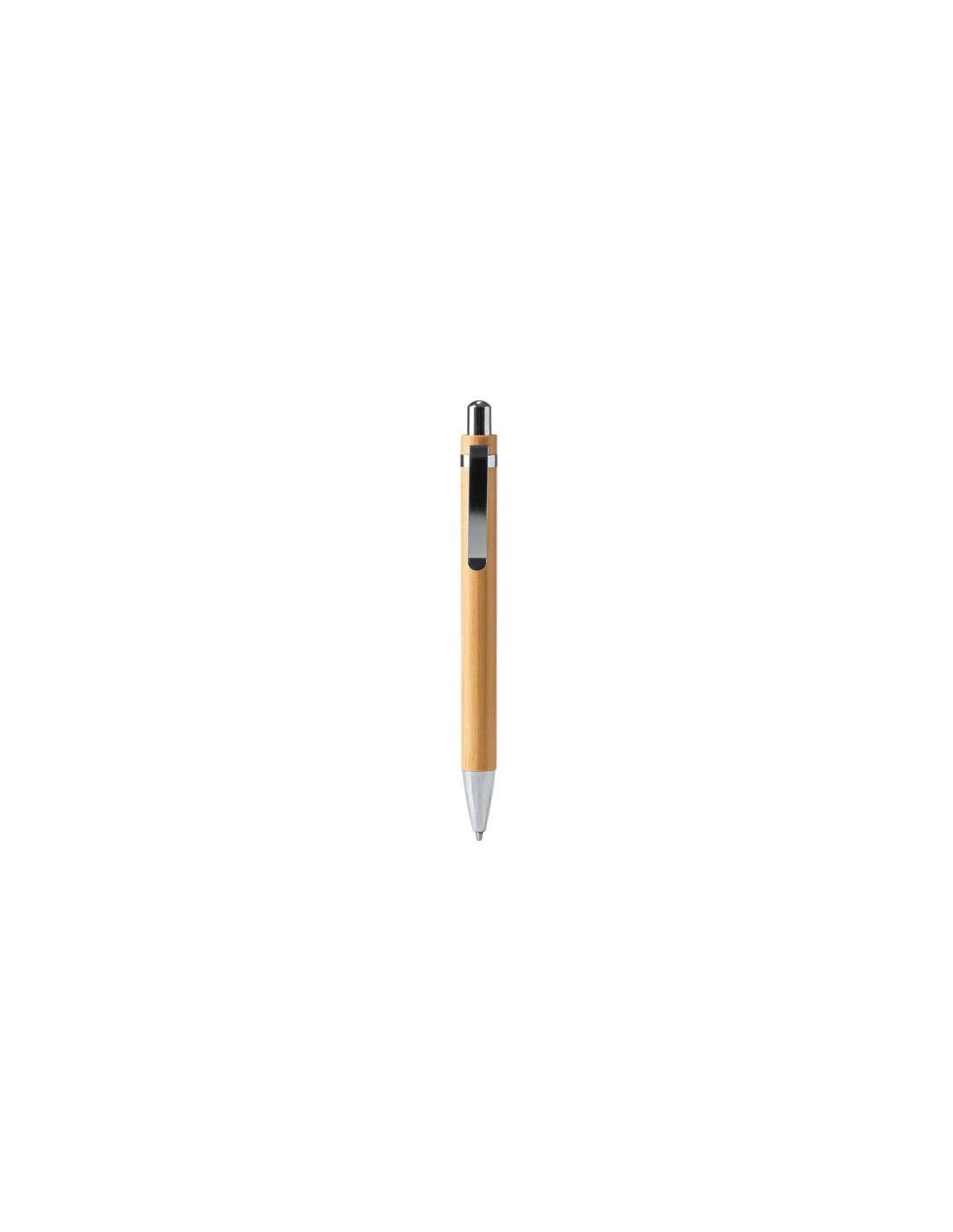 Długopis bambusowy z przyciskiem i metalowymi detalami. Niebieski atrament.