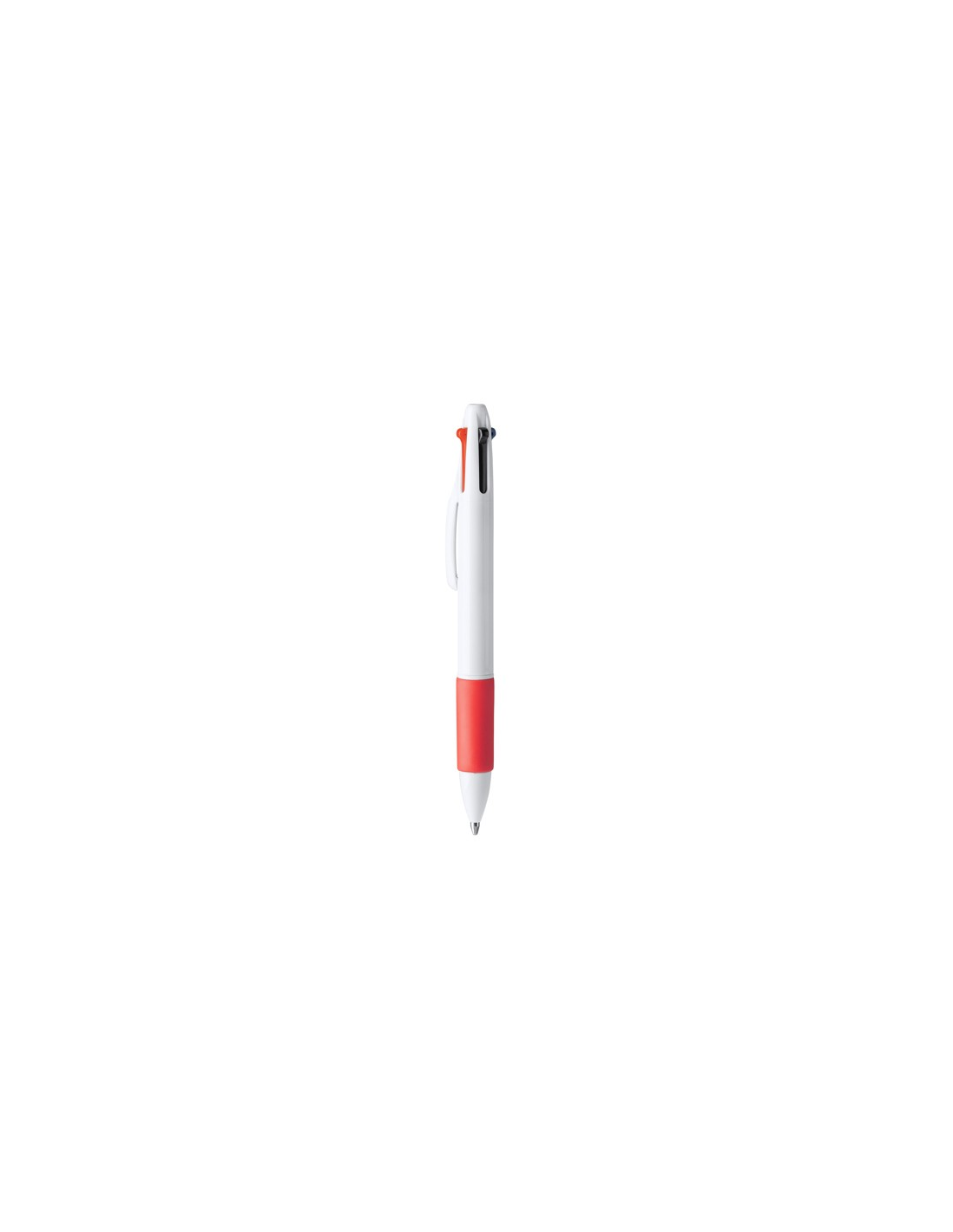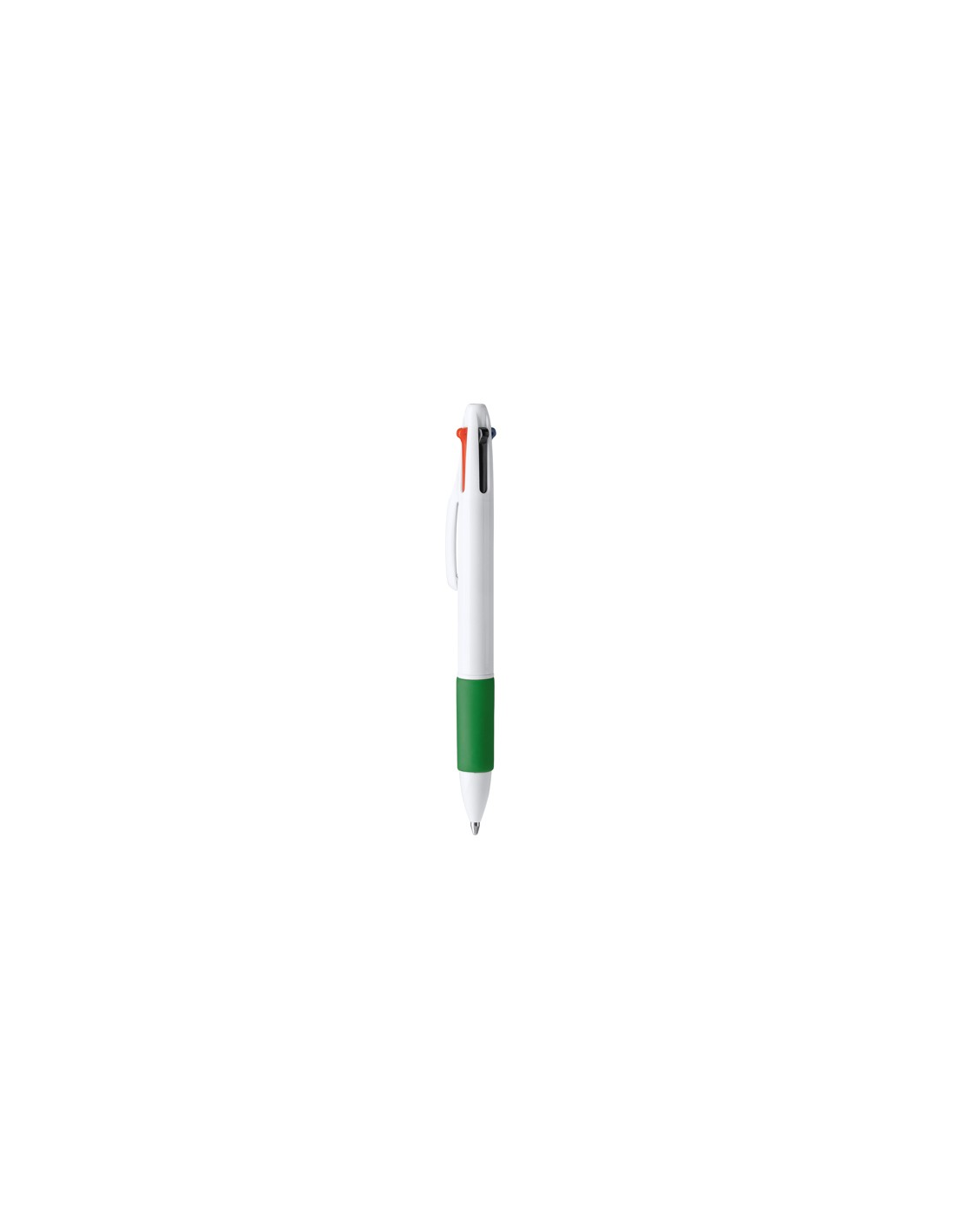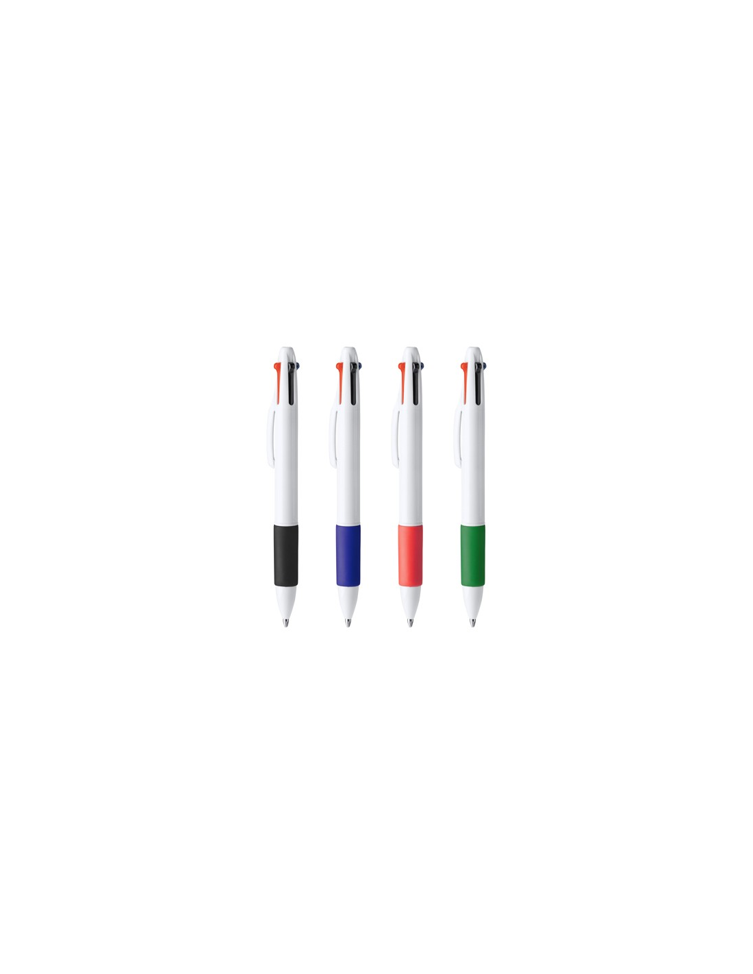 4-kolorowy wysuwany długopis. Korpus wykonany z ABS z miękkim kolorowym uchwytem. Niebieski, czarny, czerwony i zielony atrament.