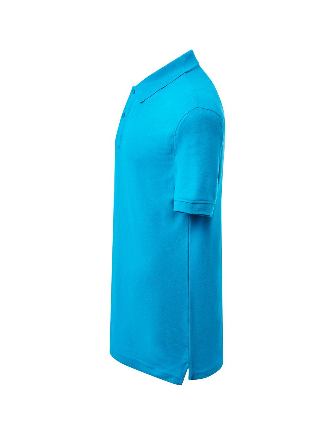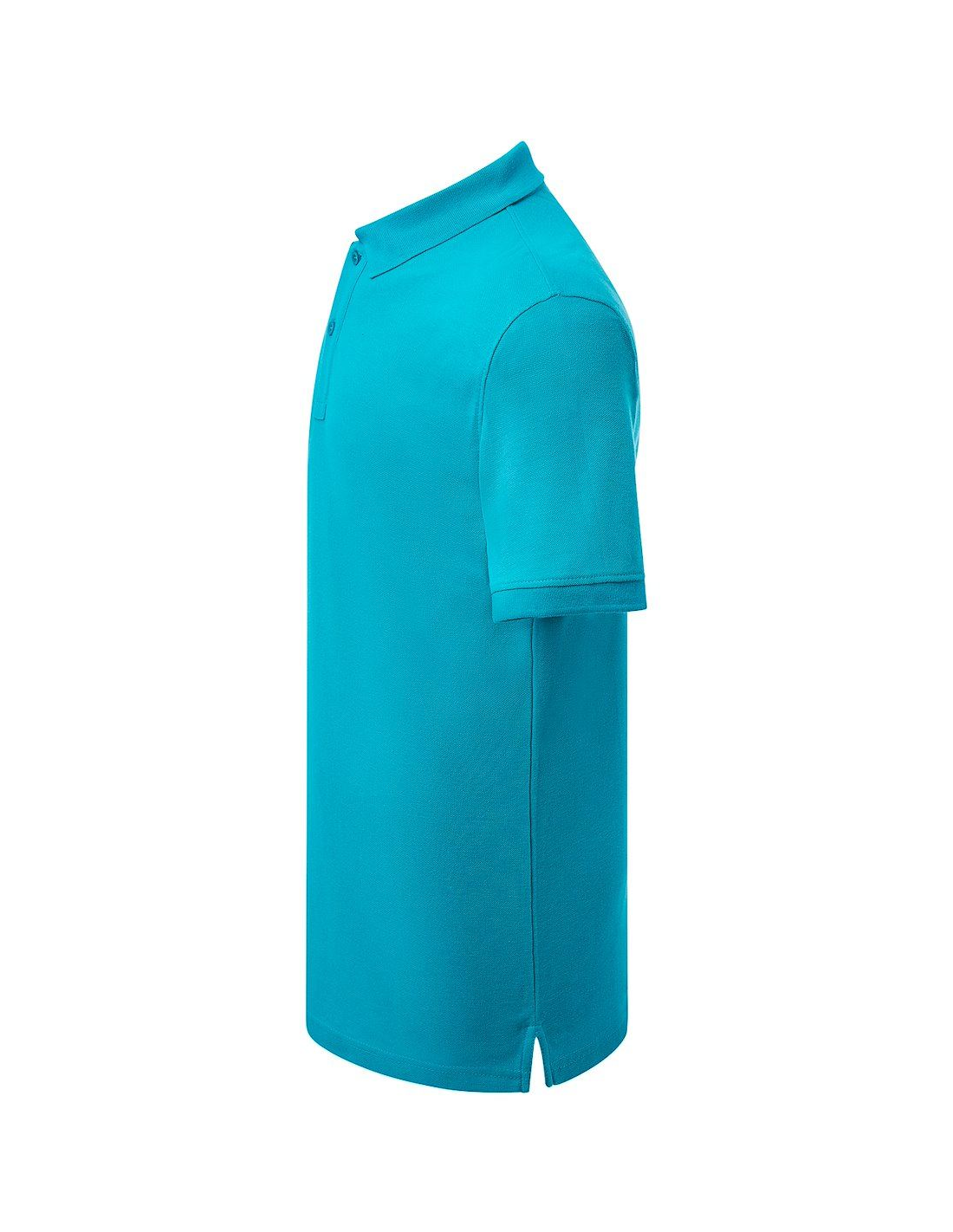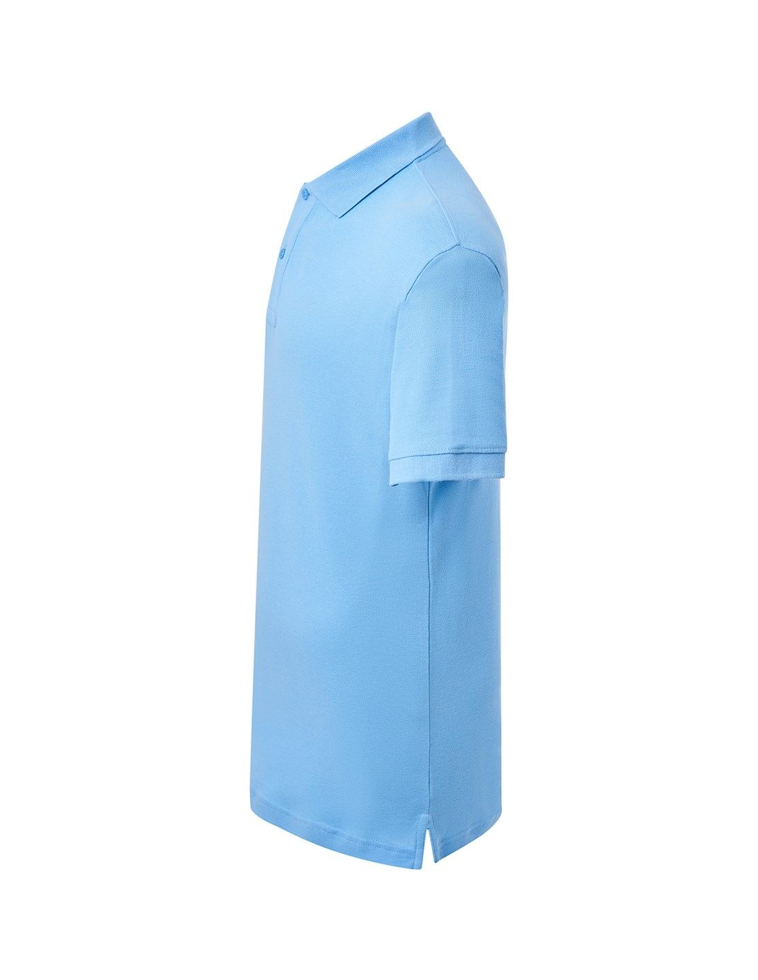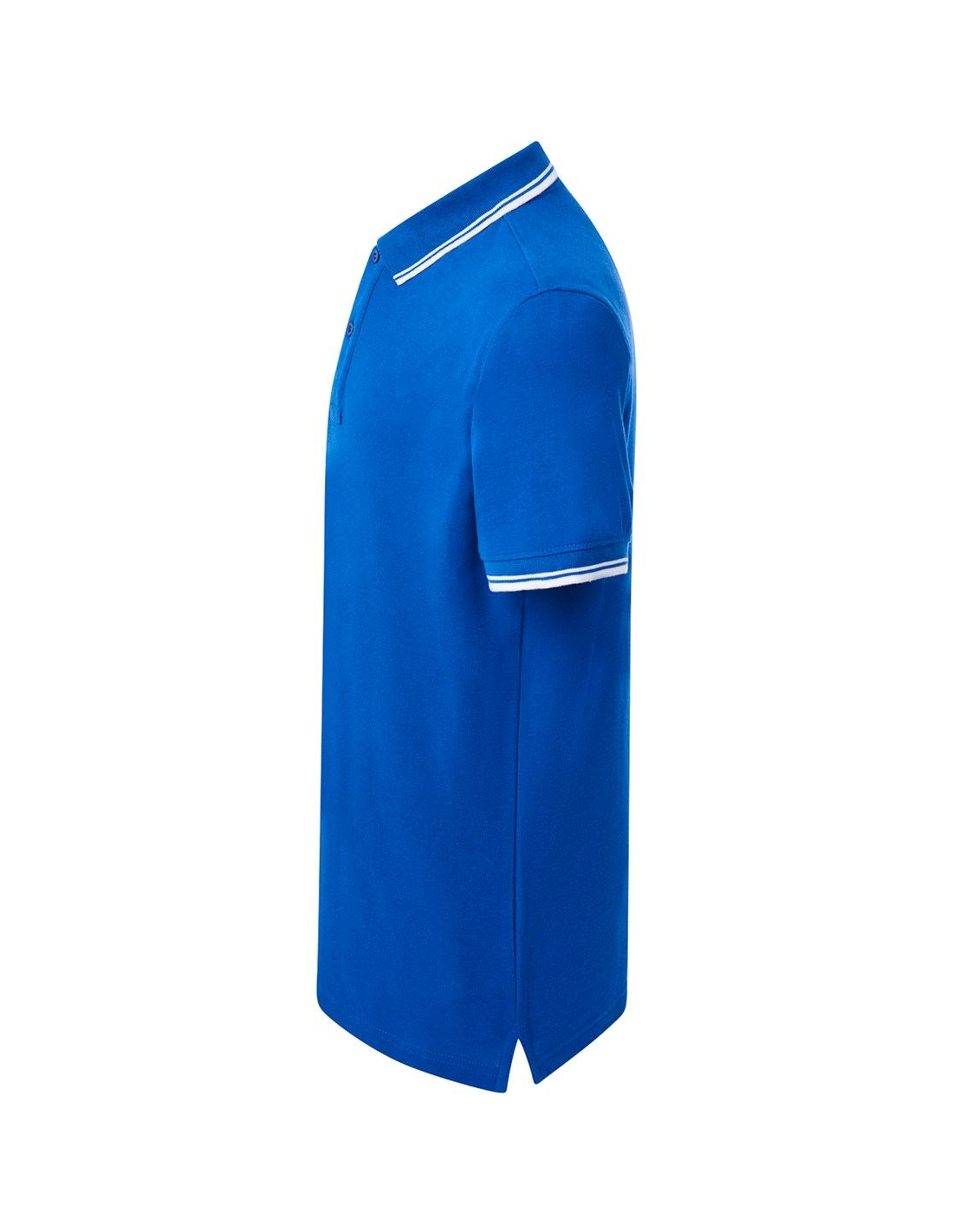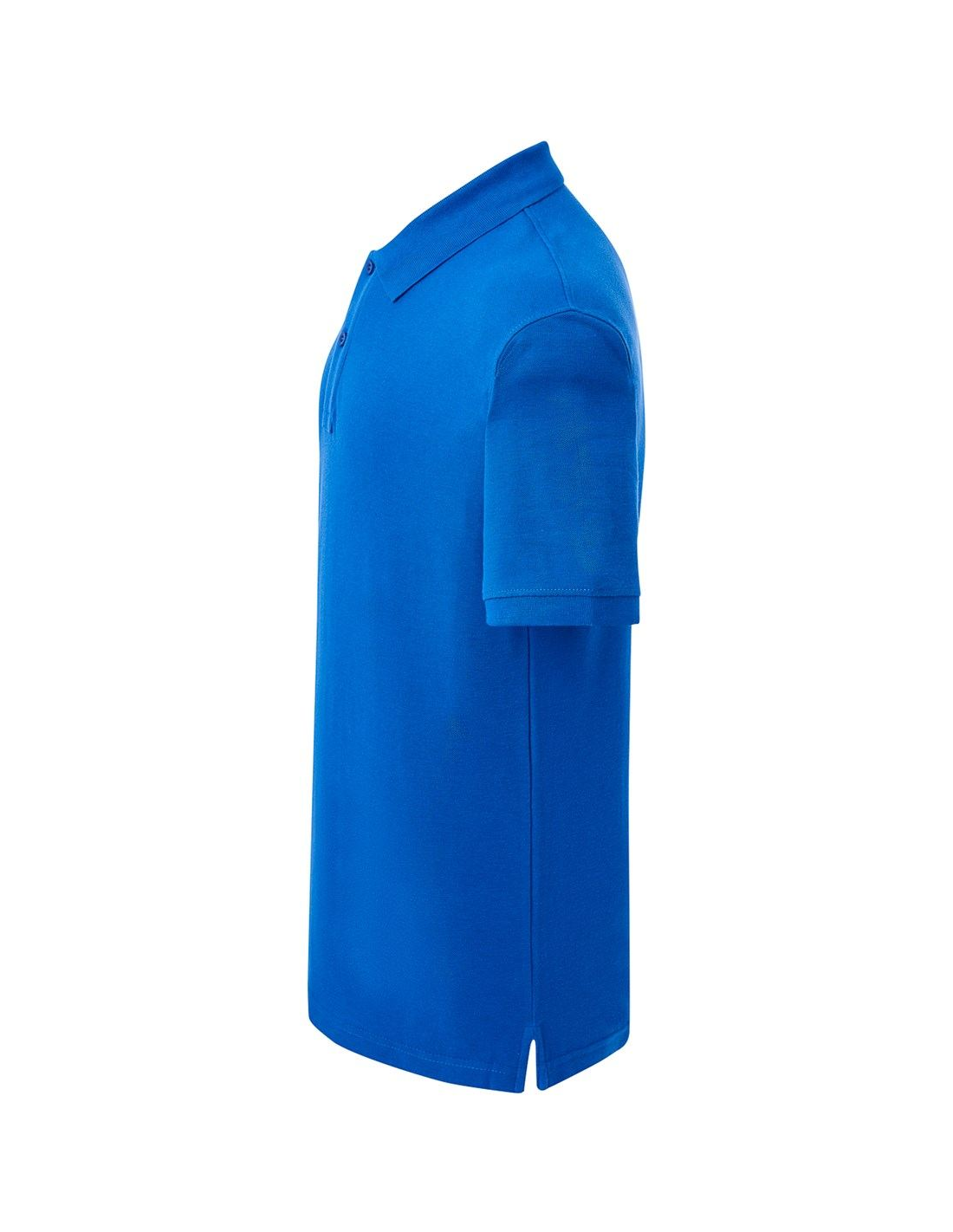 Polo męskie z krótkim rękawem. Zapinane na dwa guziki. Kołnierzyk i rękawy wykończone dzianiną 1x1. Boczne rozcięcia. 100% stabilizowana bawełna czesankowa pique.