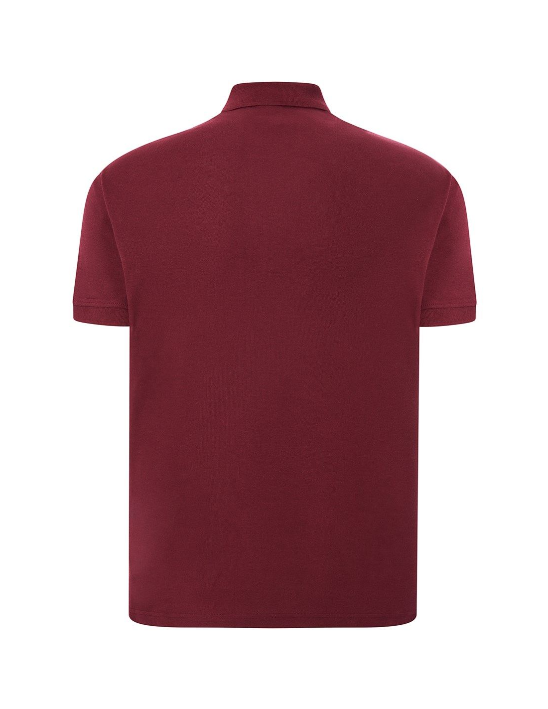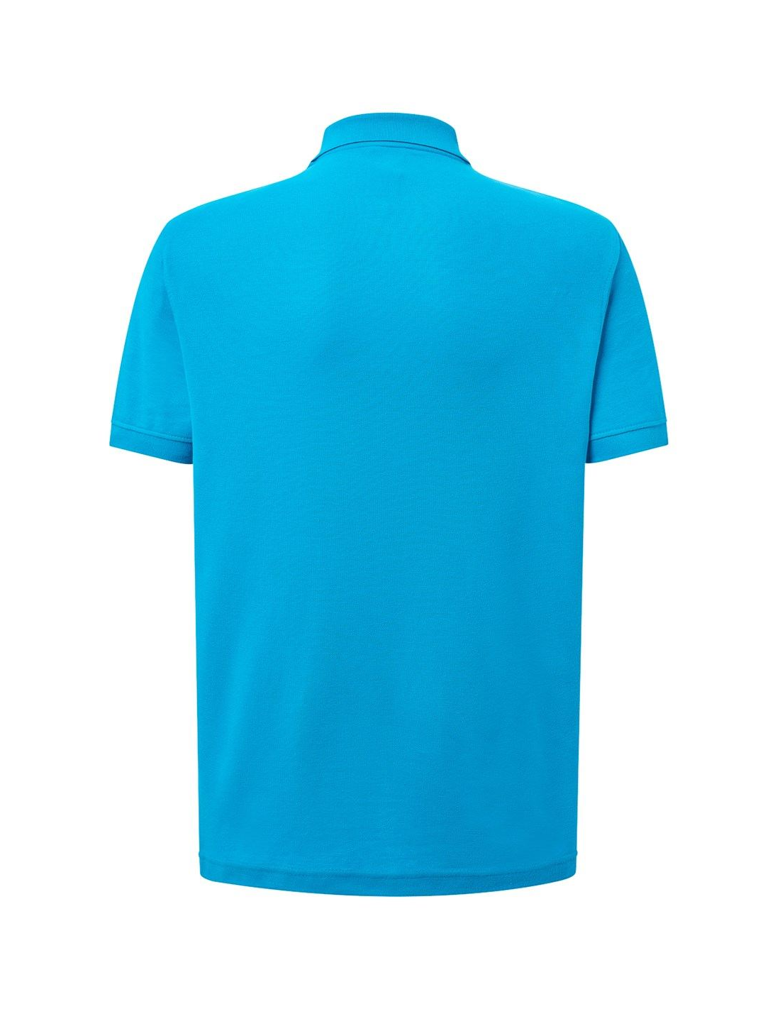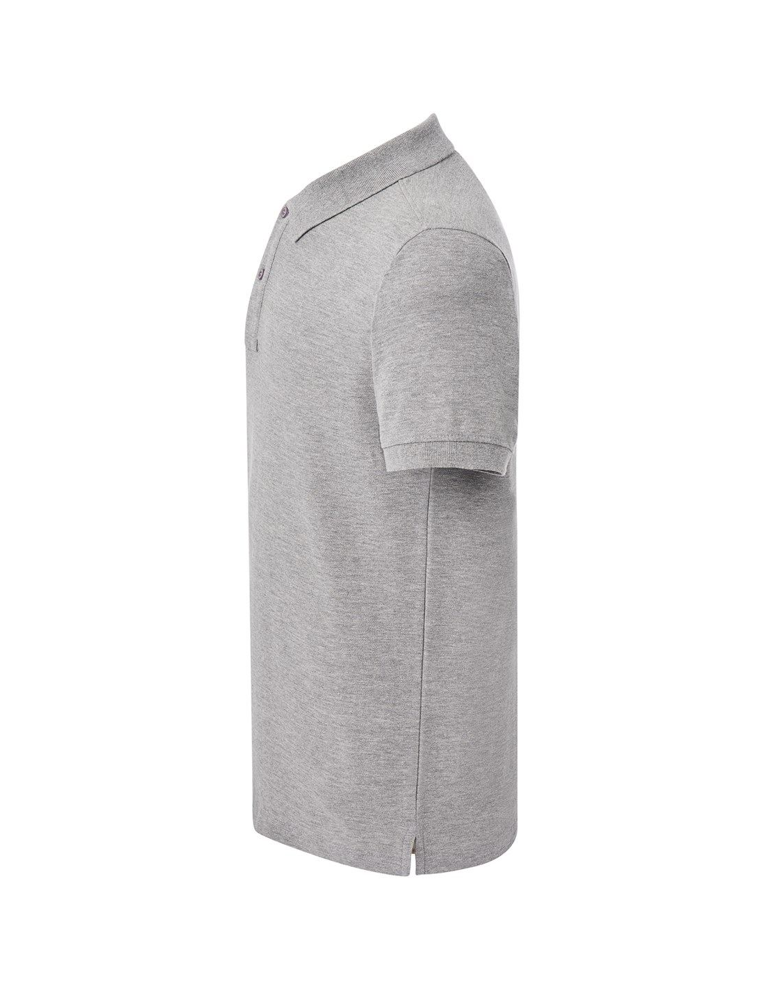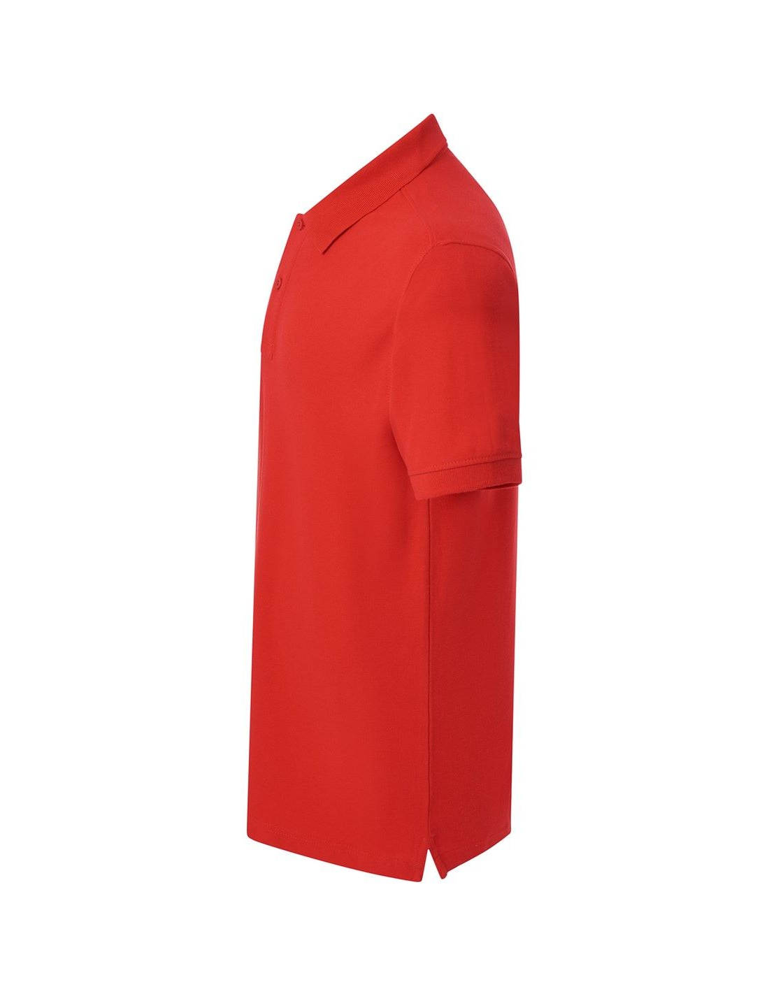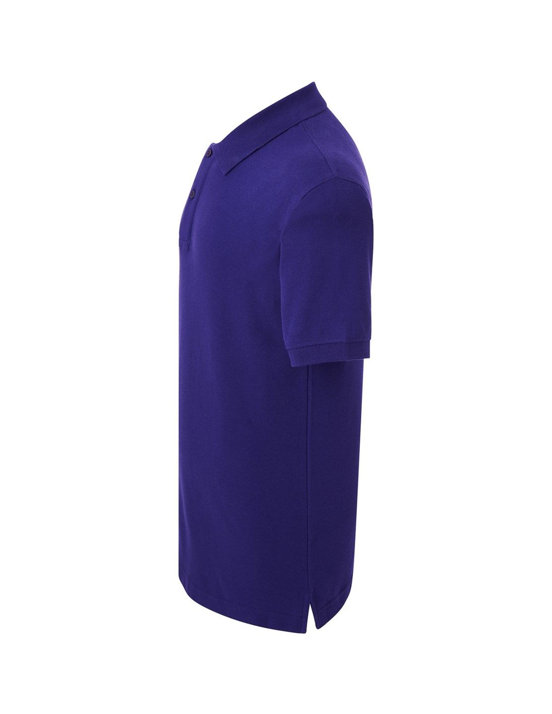 Polo męskie z krótkim rękawem. Zapinane na dwa guziki. Kołnierzyk i rękawy wykończone dzianiną 1x1. Boczne rozcięcia. 100% stabilizowana bawełna czesankowa pique.