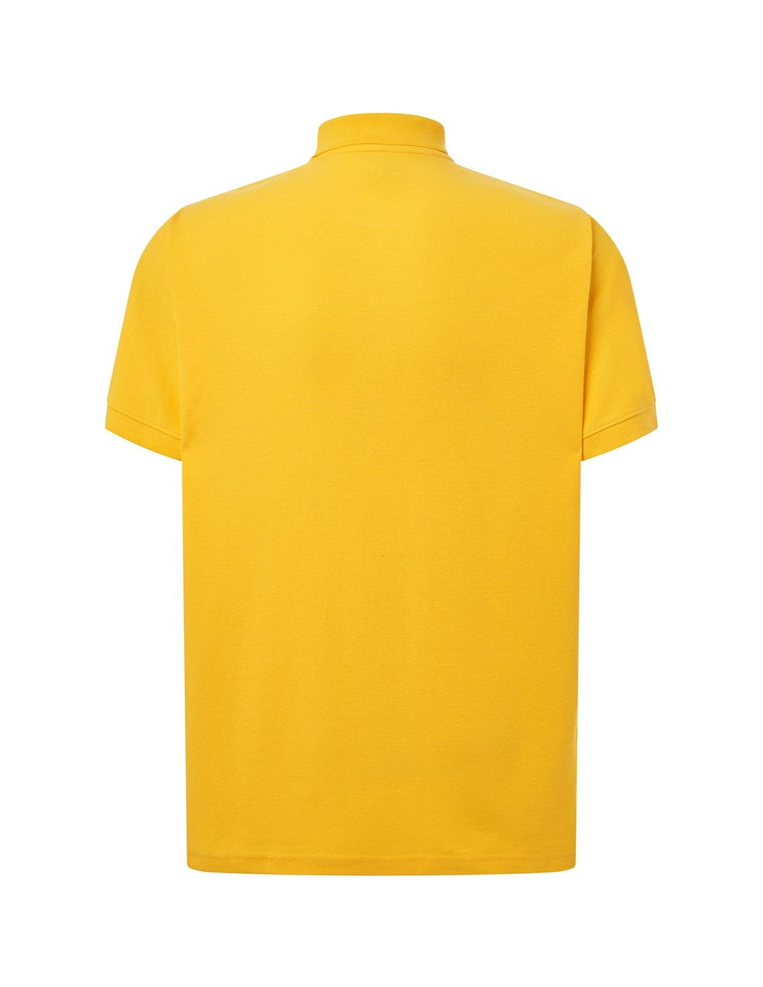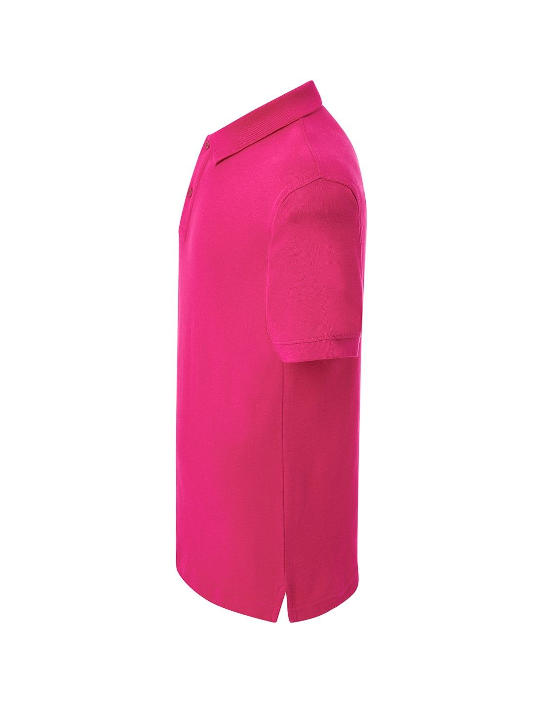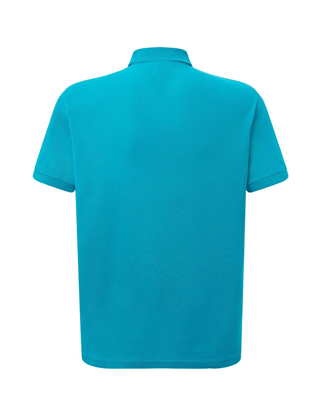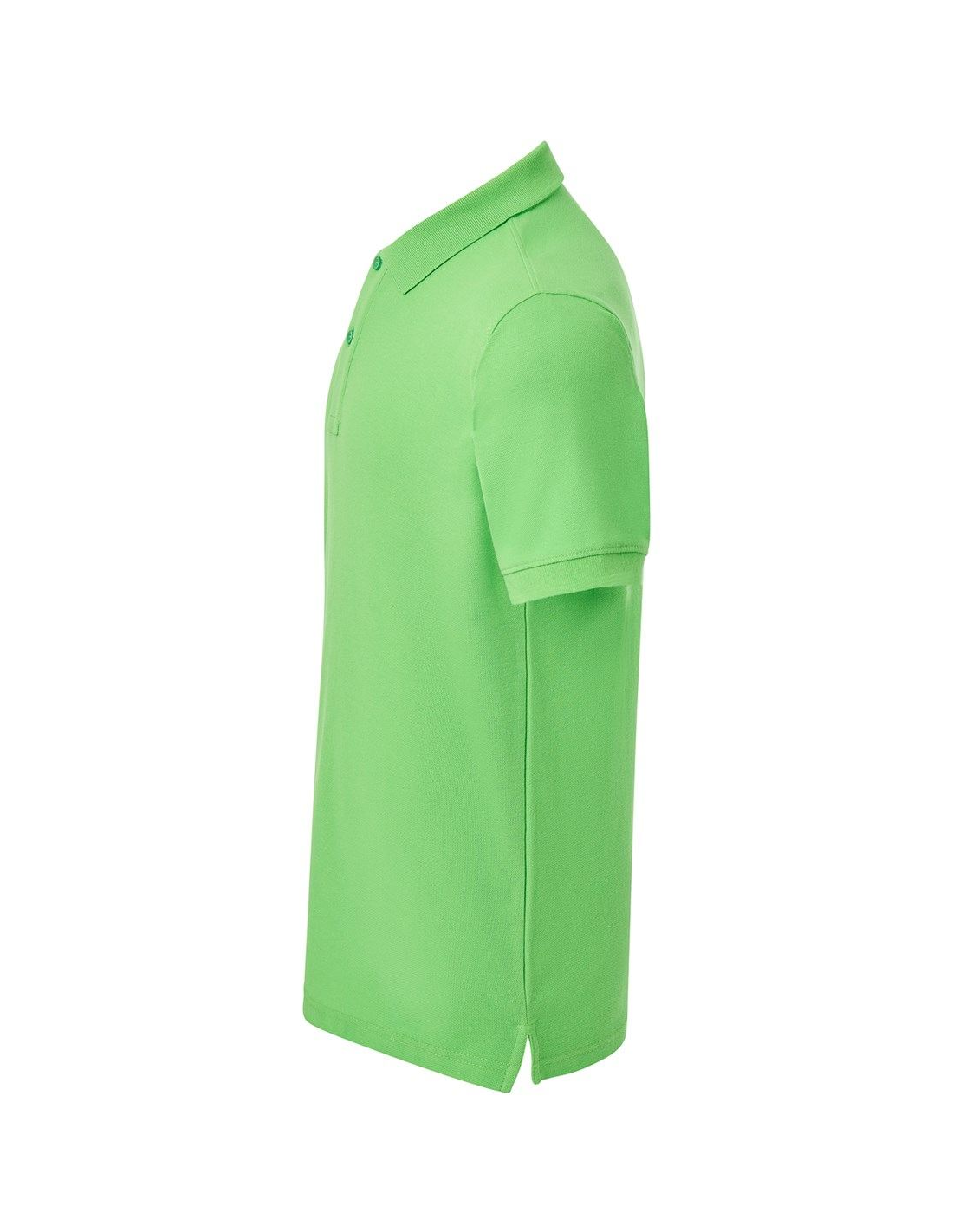Polo męskie z krótkim rękawem. Zapinane na dwa guziki. Kołnierzyk i rękawy wykończone dzianiną 1x1. Boczne rozcięcia. 100% stabilizowana bawełna czesankowa pique.