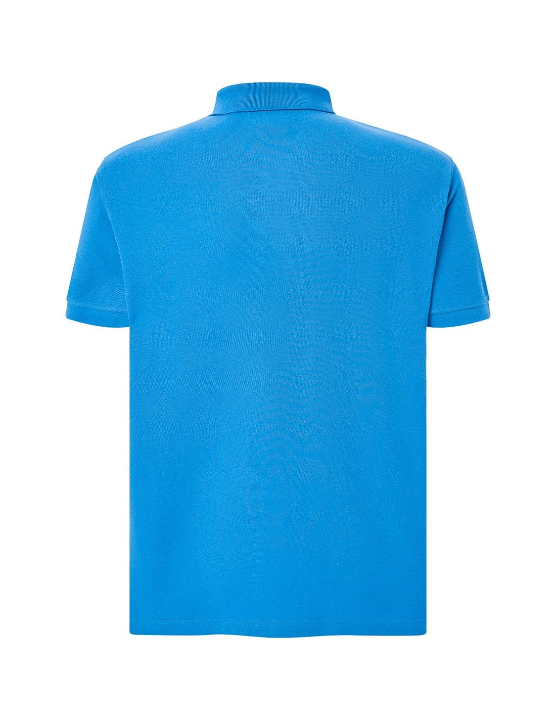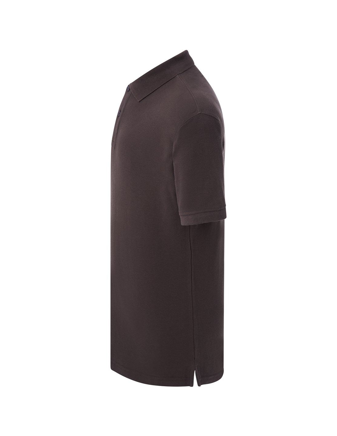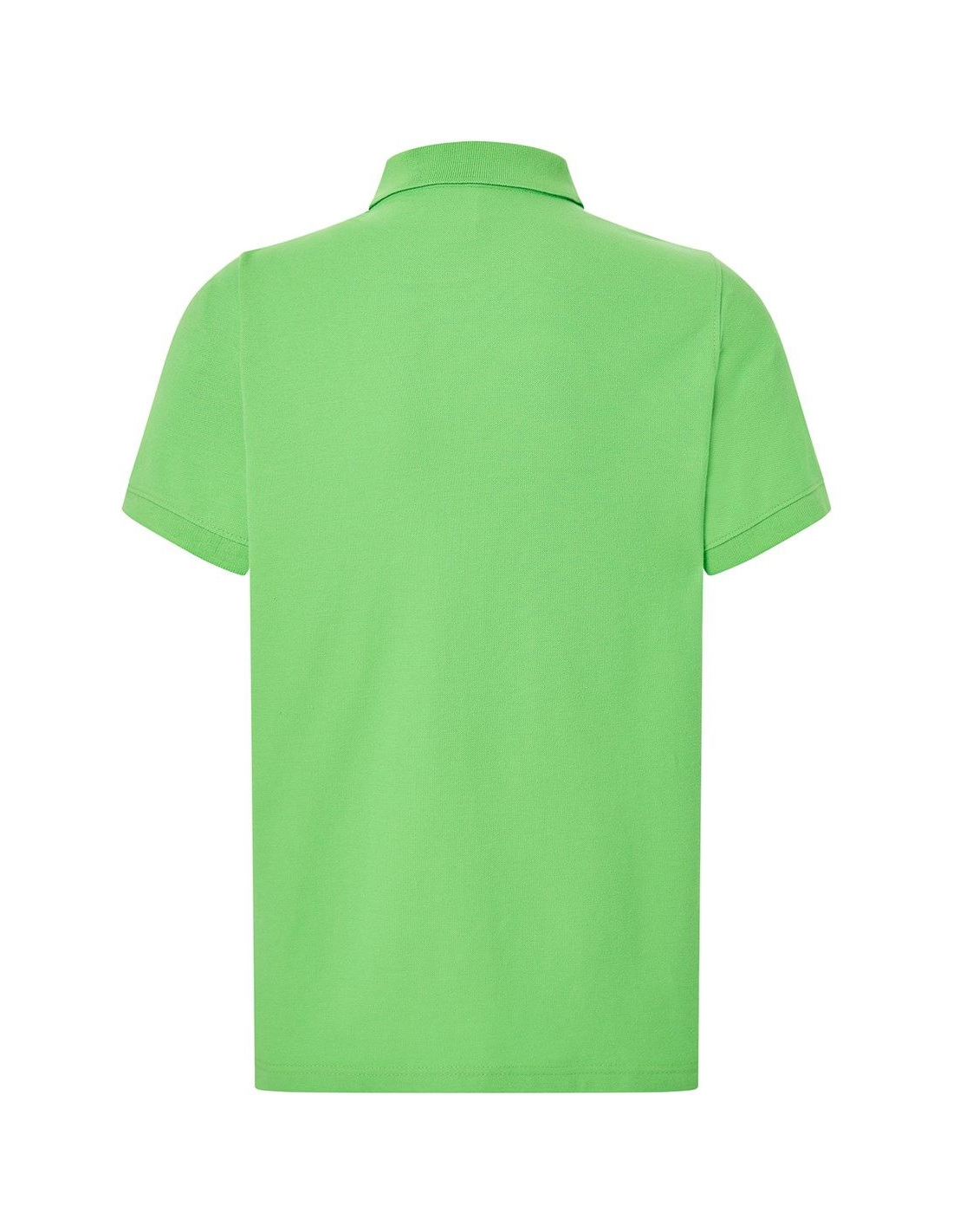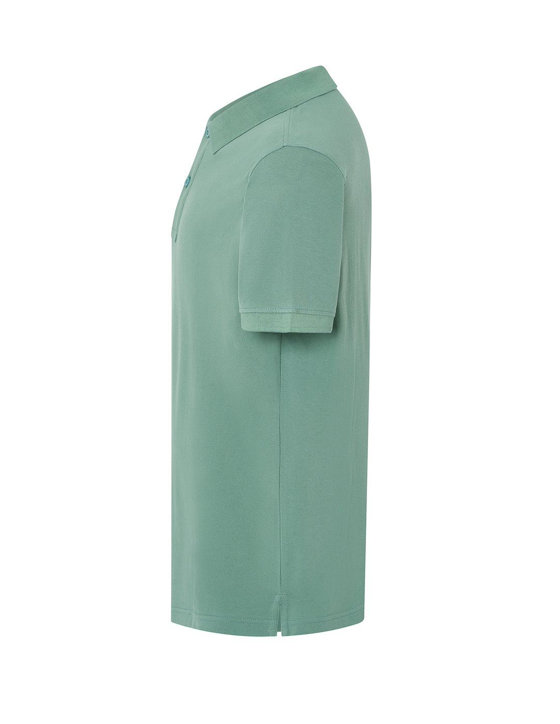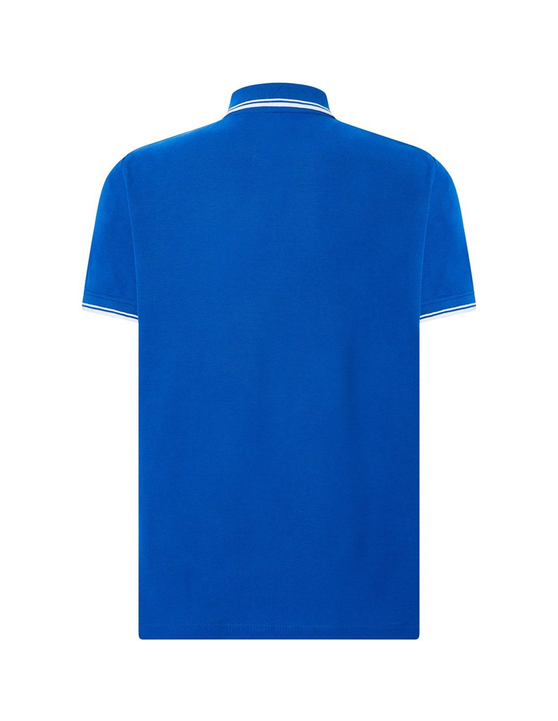 Polo męskie z krótkim rękawem. Zapinane na dwa guziki. Kołnierzyk i rękawy wykończone dzianiną 1x1. Boczne rozcięcia. 100% stabilizowana bawełna czesankowa pique.