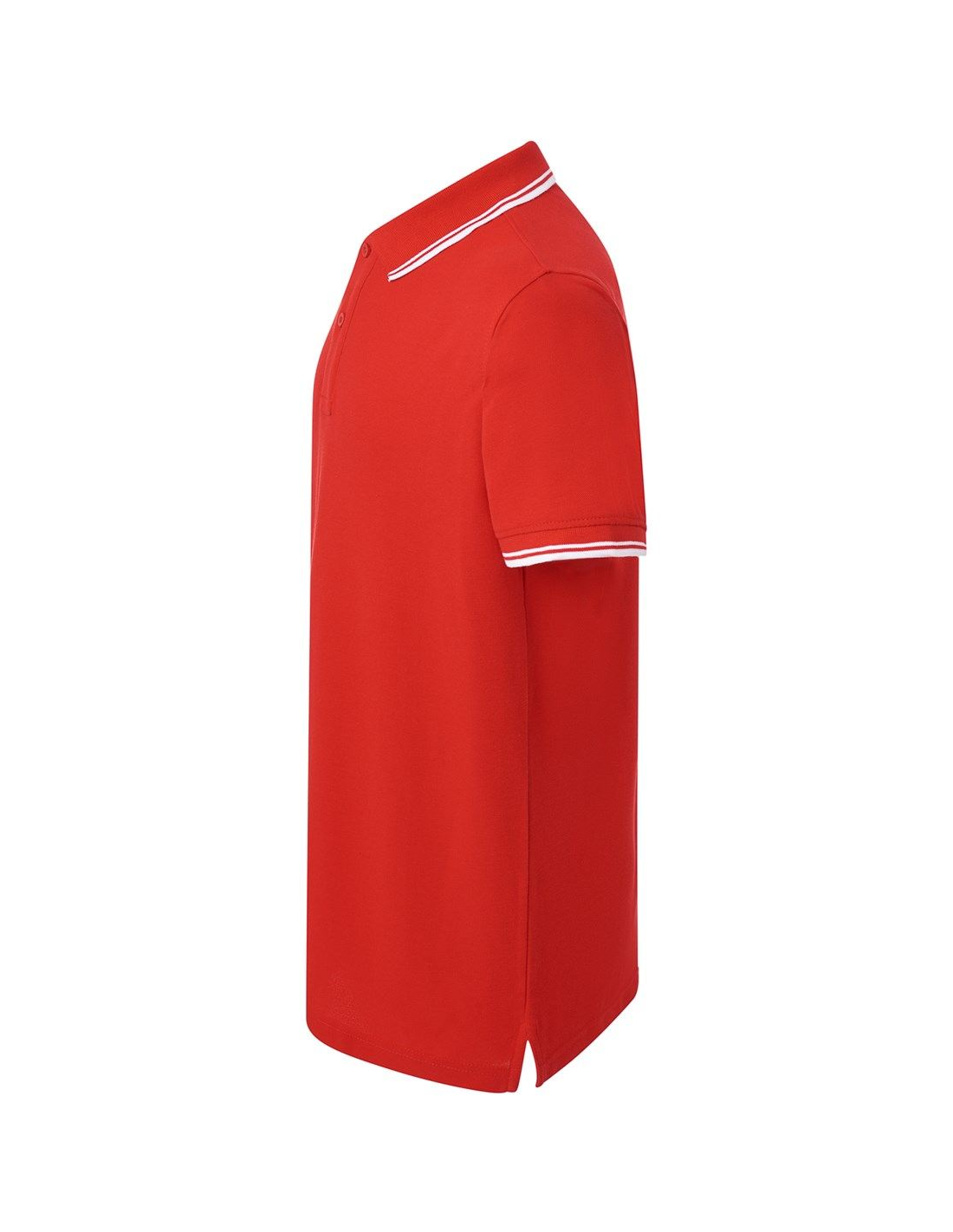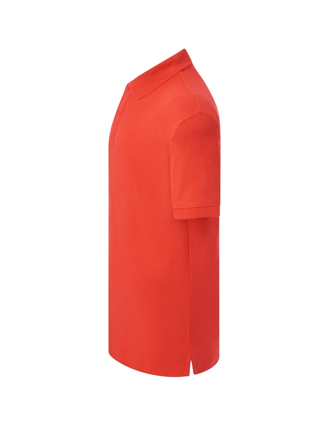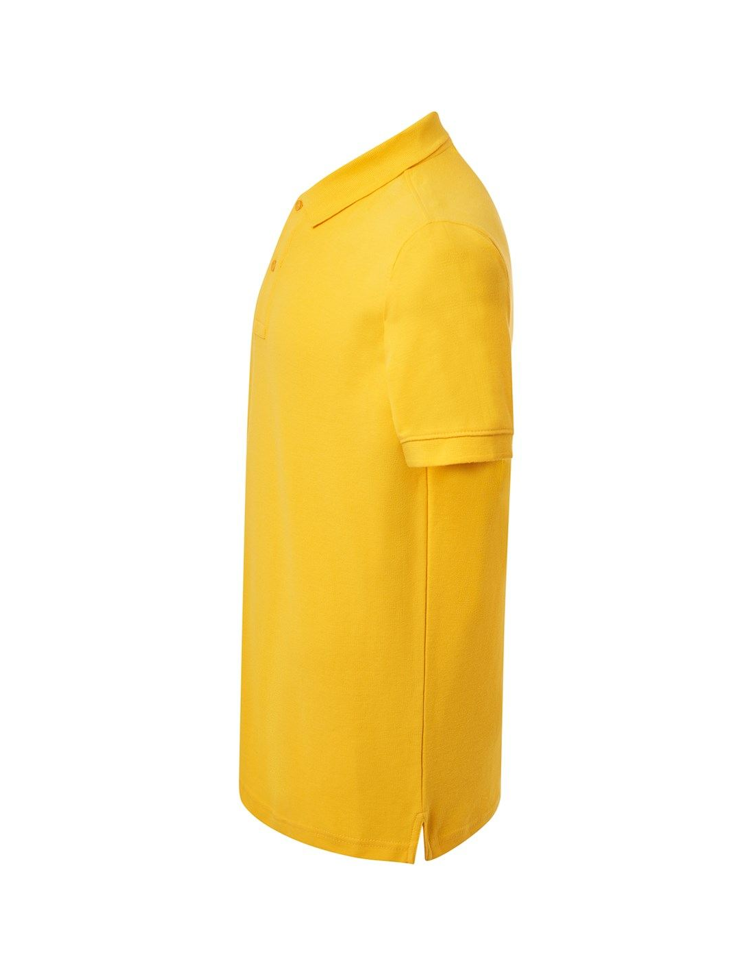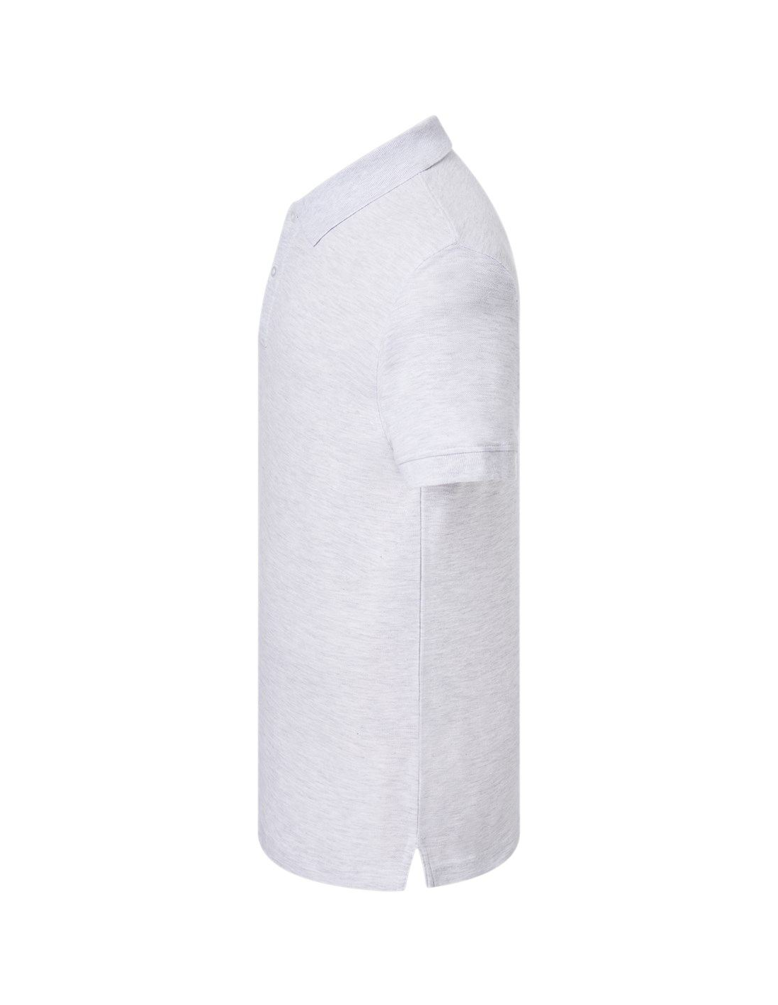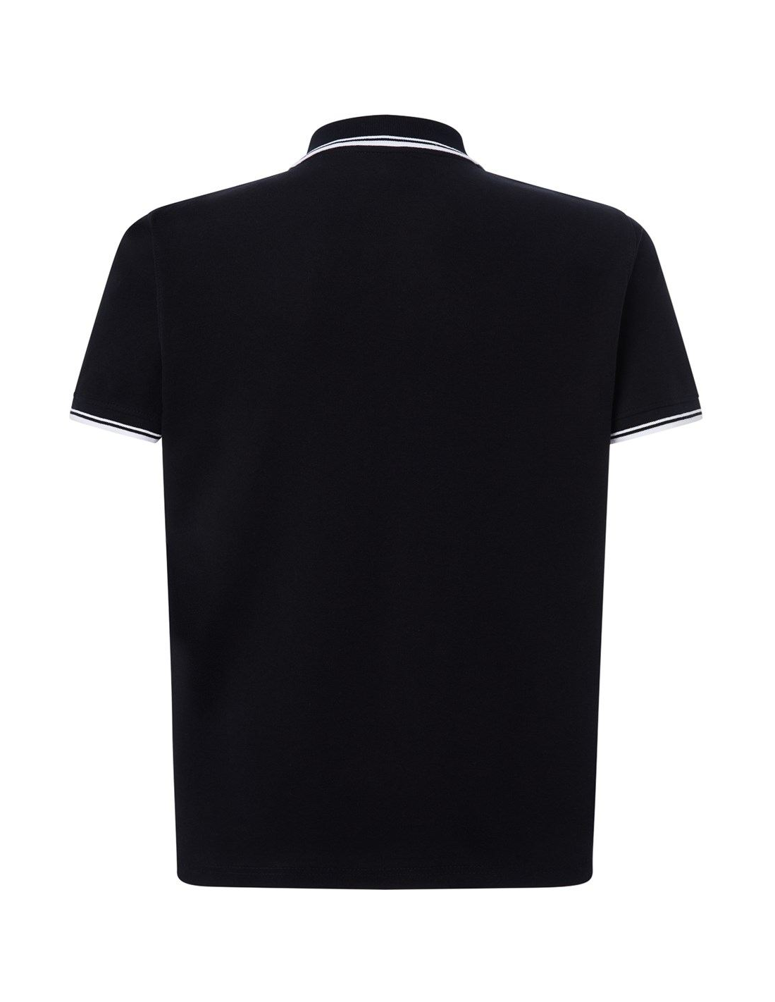 Polo męskie z krótkim rękawem. Zapinane na dwa guziki. Kołnierzyk i rękawy wykończone dzianiną 1x1. Boczne rozcięcia. 100% stabilizowana bawełna czesankowa pique.