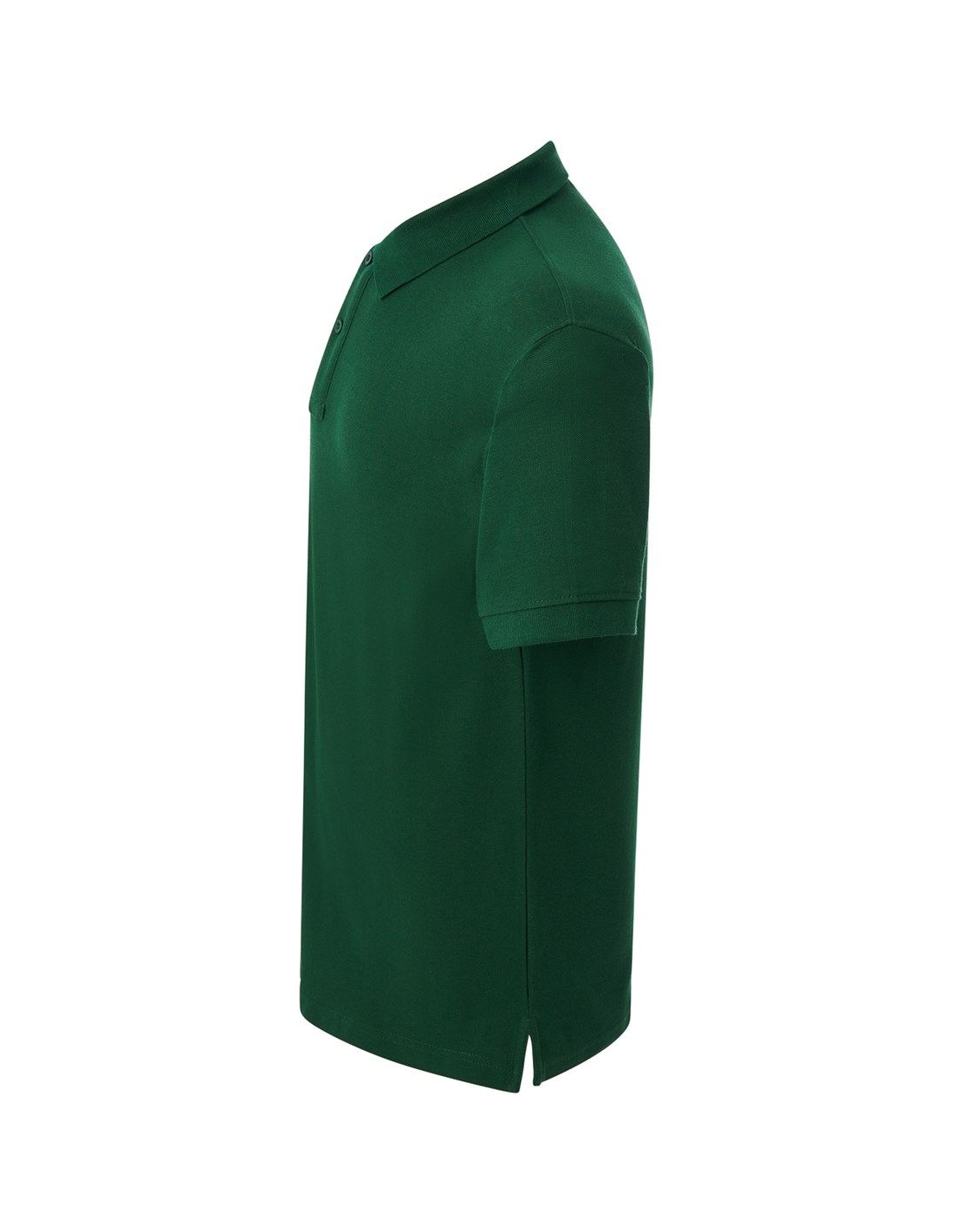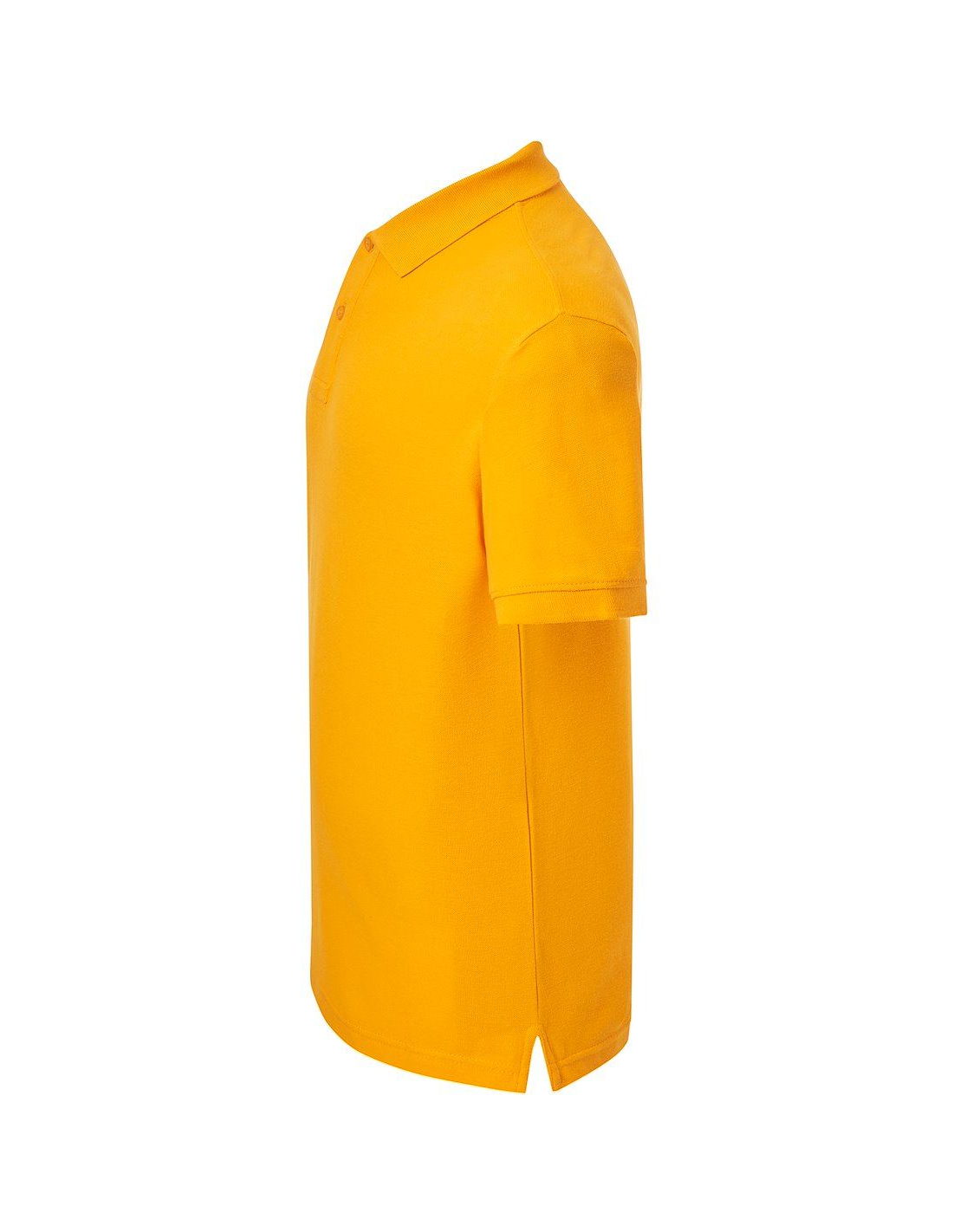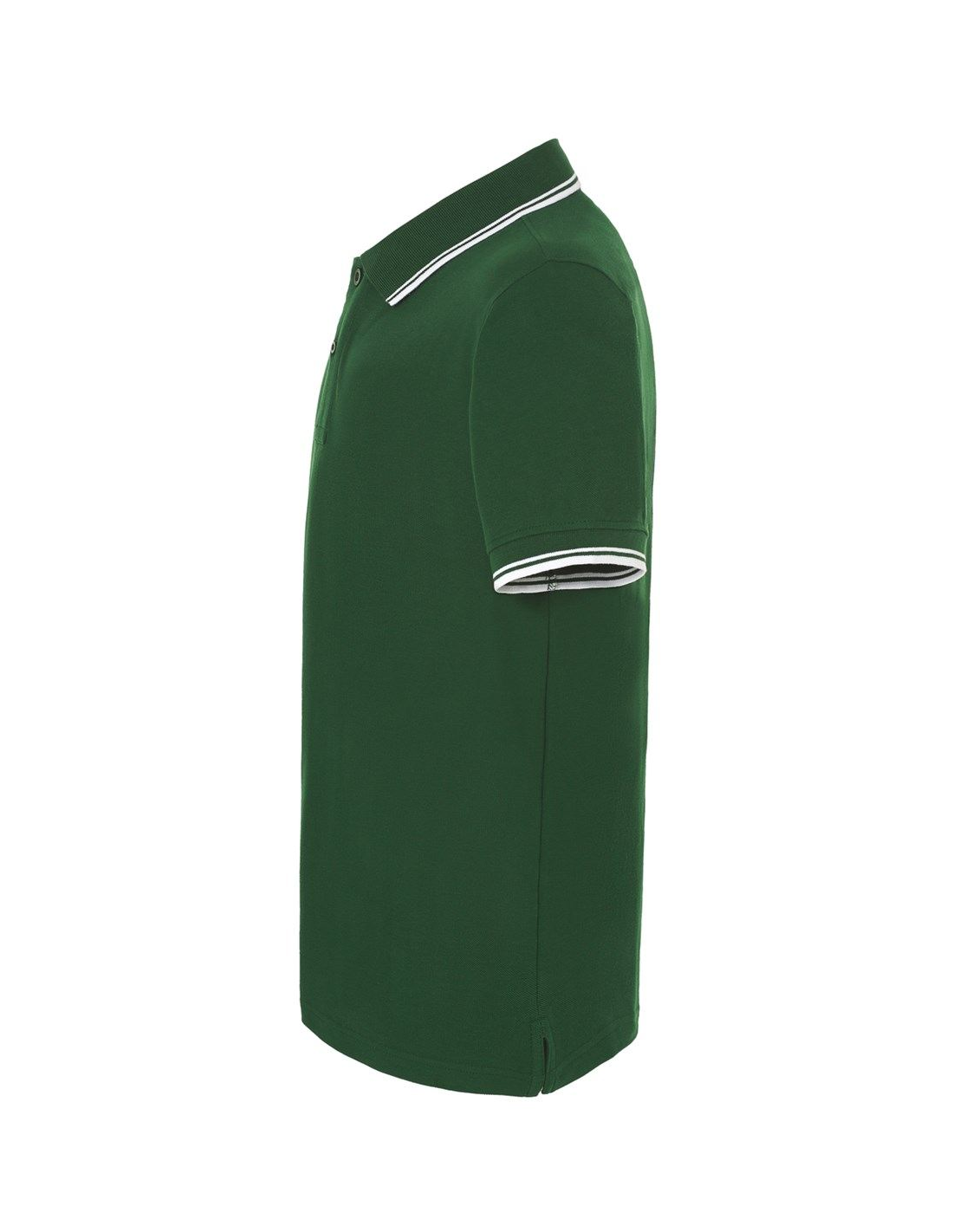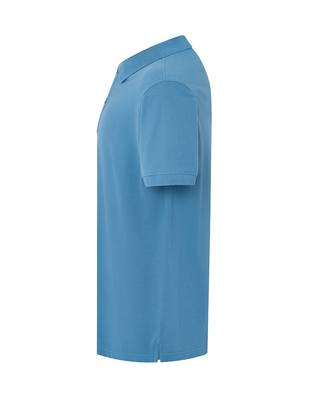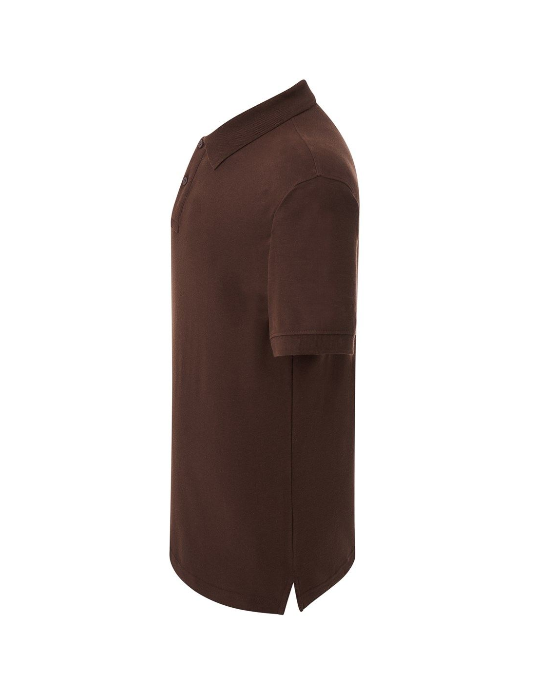 Polo męskie z krótkim rękawem. Zapinane na dwa guziki. Kołnierzyk i rękawy wykończone dzianiną 1x1. Boczne rozcięcia. 100% stabilizowana bawełna czesankowa pique.