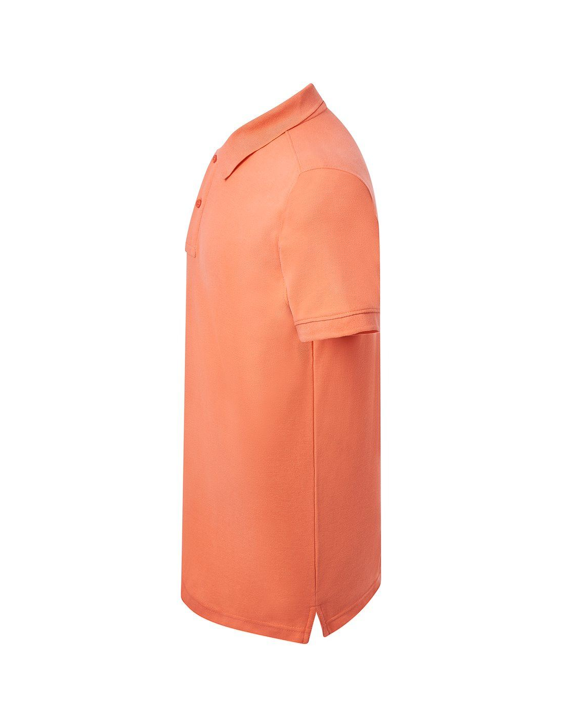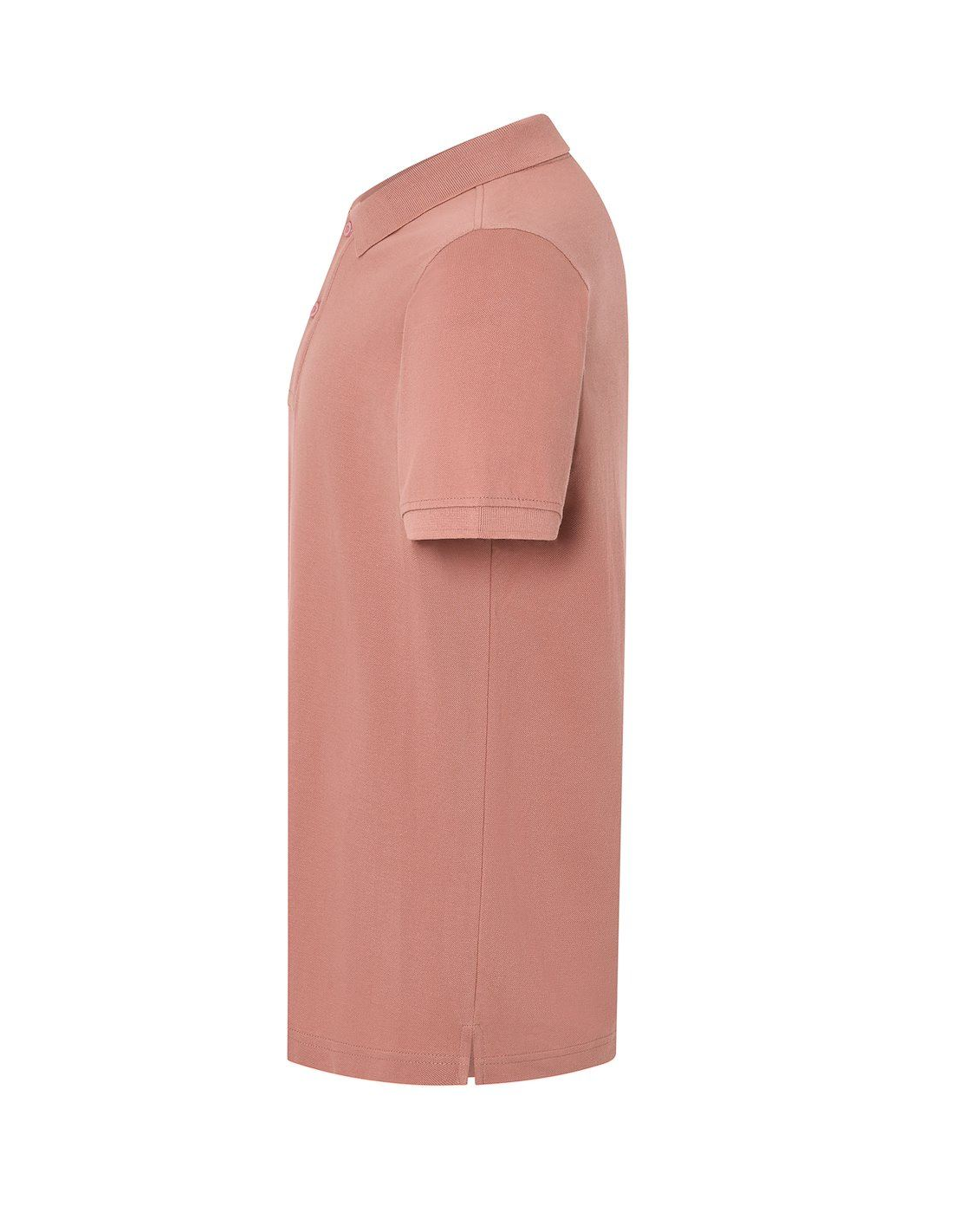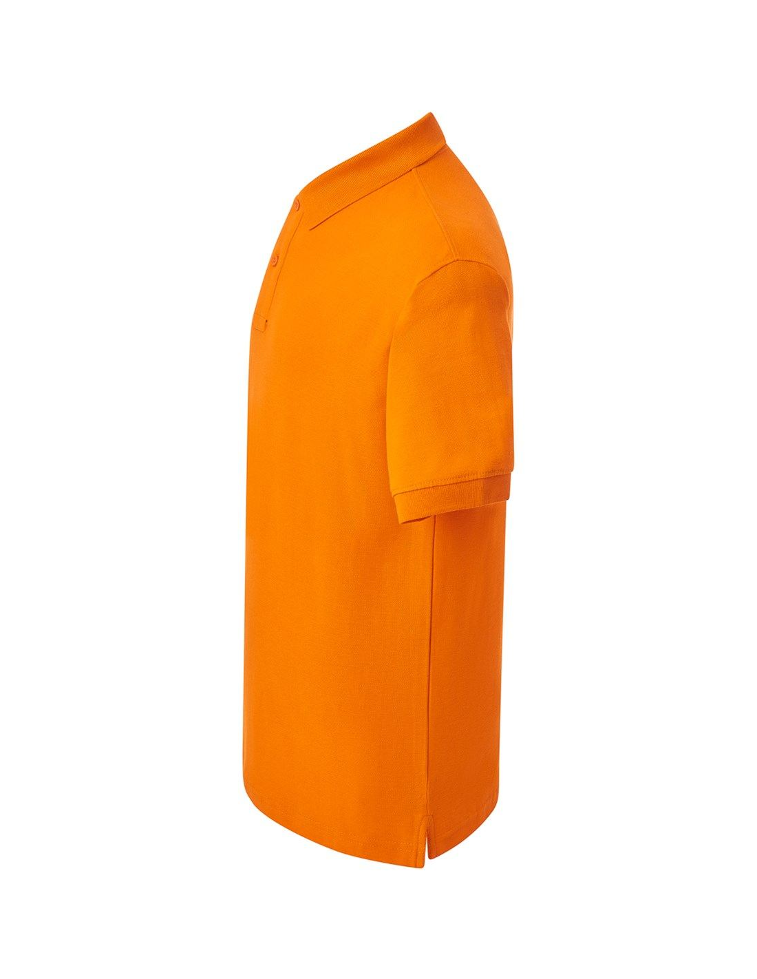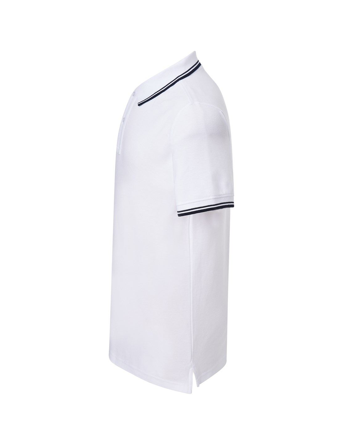 Polo męskie z krótkim rękawem. Zapinane na dwa guziki. Kołnierzyk i rękawy wykończone dzianiną 1x1. Boczne rozcięcia. 100% stabilizowana bawełna czesankowa pique.