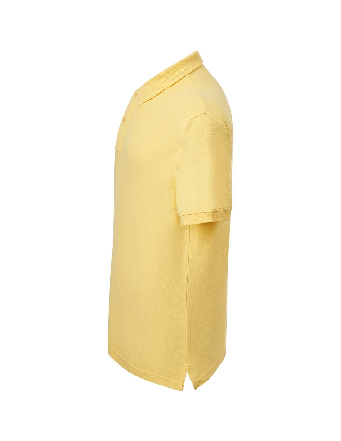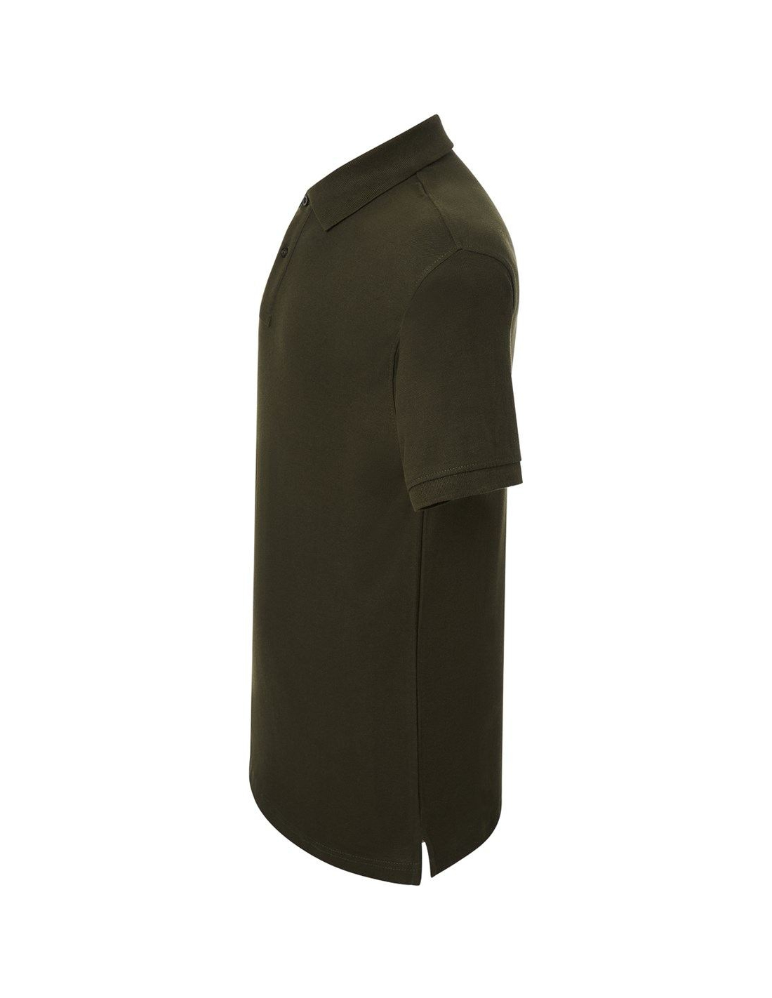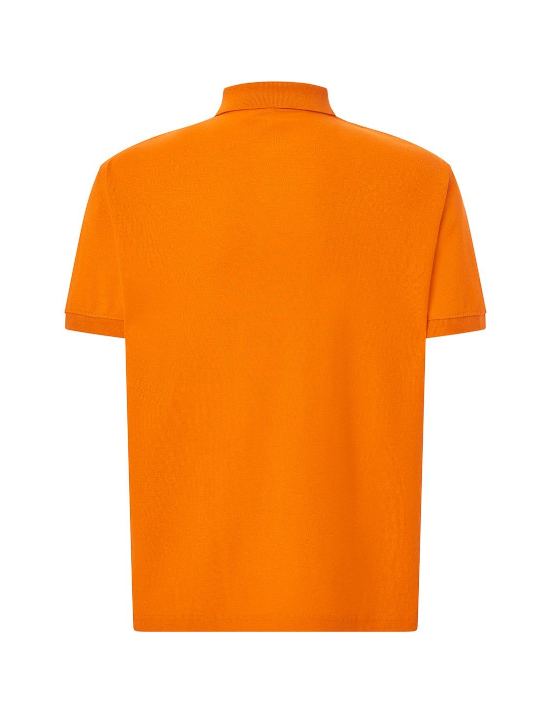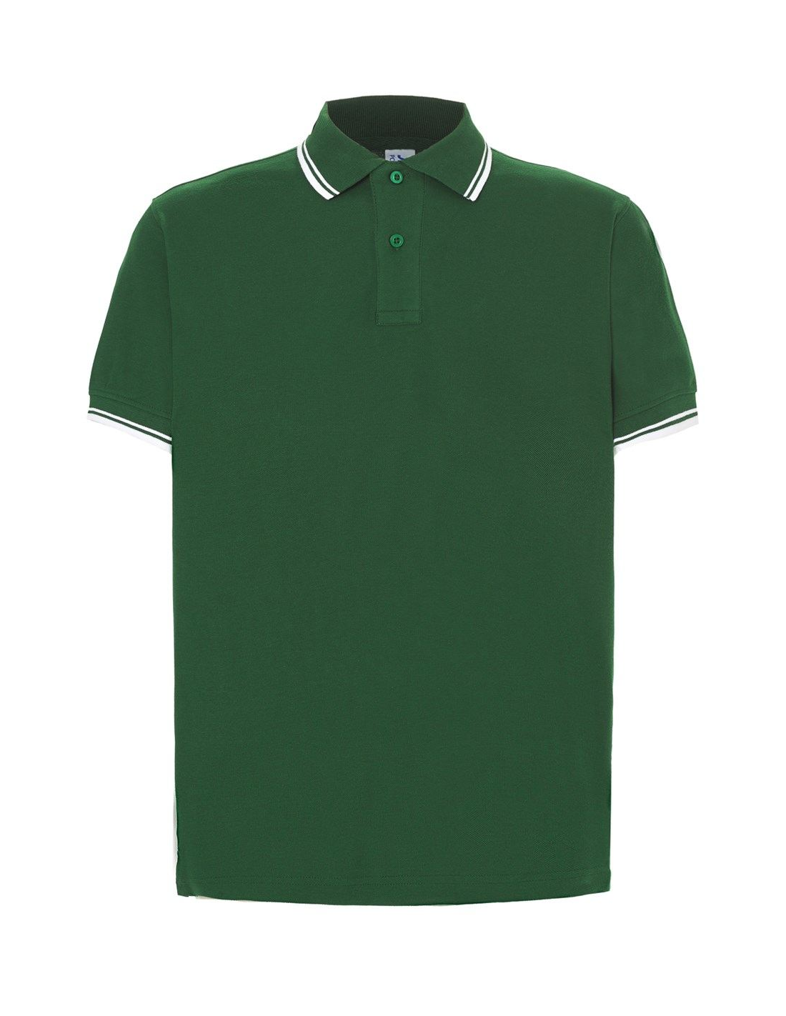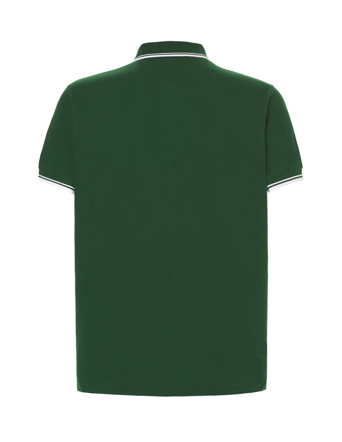 Polo męskie z krótkim rękawem. Zapinane na dwa guziki. Kołnierzyk i rękawy wykończone dzianiną 1x1. Boczne rozcięcia. 100% stabilizowana bawełna czesankowa pique.