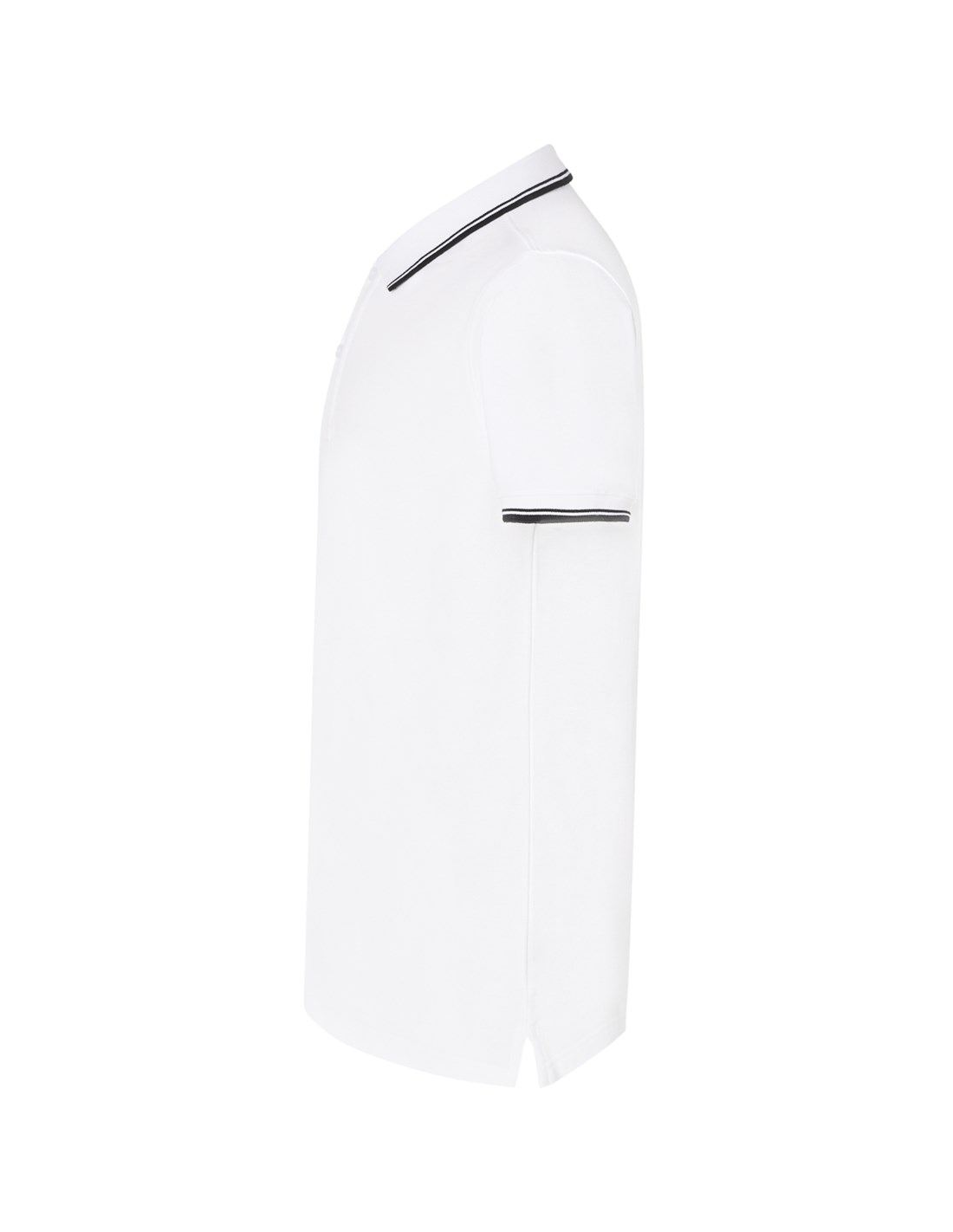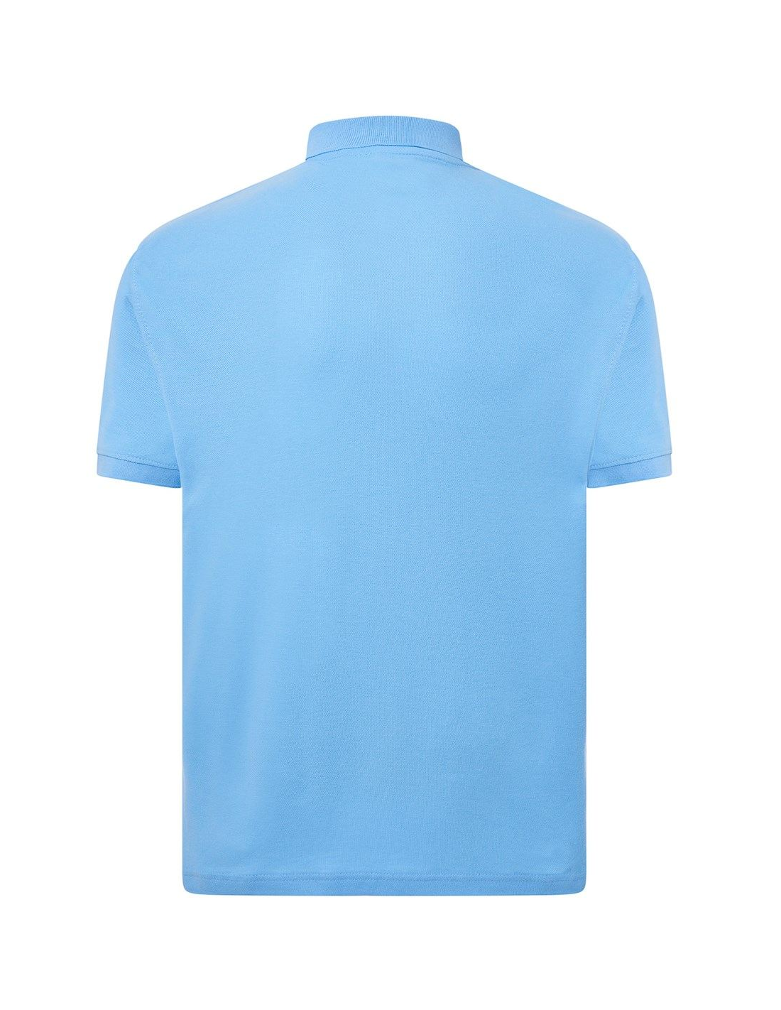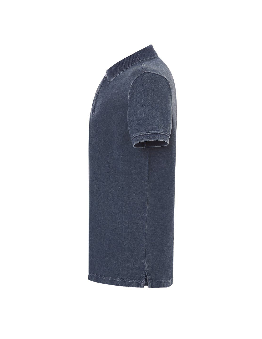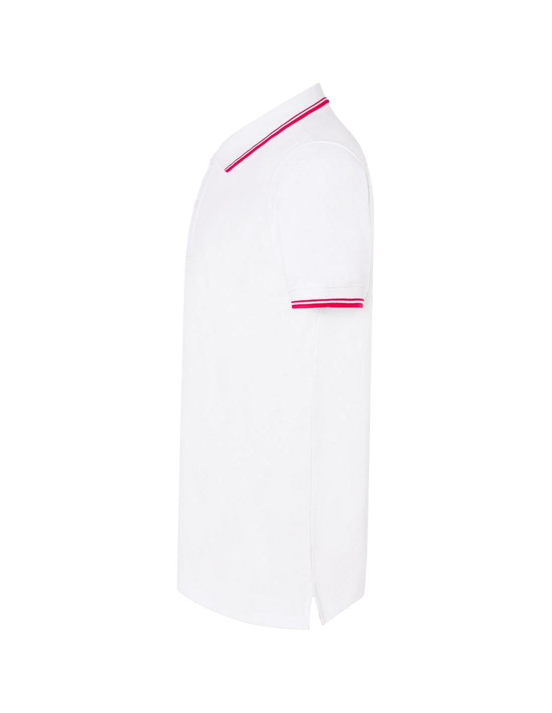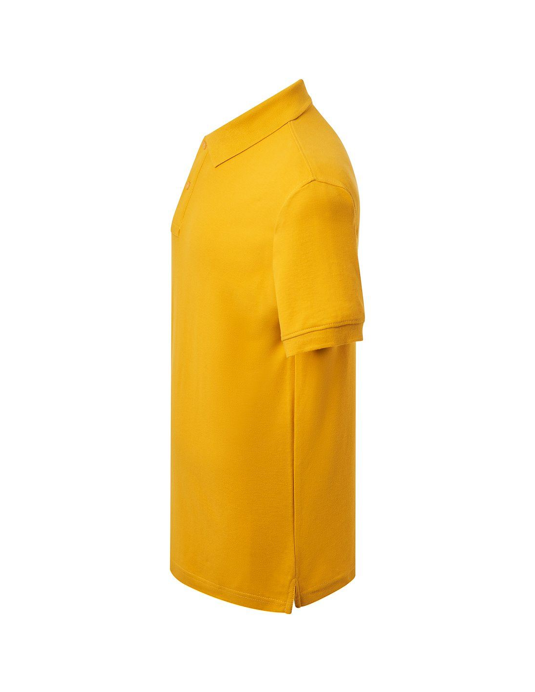 Polo męskie z krótkim rękawem. Zapinane na dwa guziki. Kołnierzyk i rękawy wykończone dzianiną 1x1. Boczne rozcięcia. 100% stabilizowana bawełna czesankowa pique.