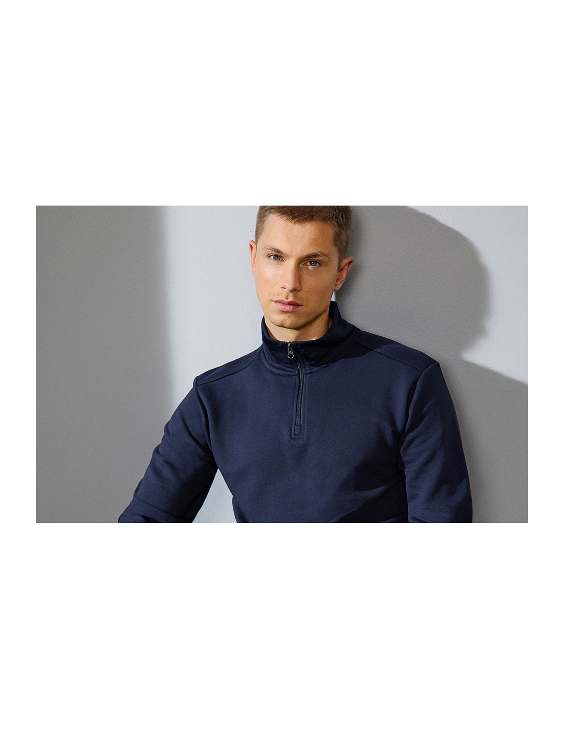 Męska bluza robocza PRO Wear CARE z zamkiem 1/4 zip, wykonana z trwałej dzianiny odpornej na intensywne użytkowanie i pranie przemysłowe. Idealna dla firm szukających solidnej i długowiecznej odzieży ze znakowaniem.