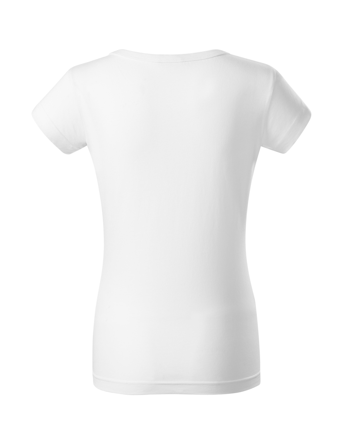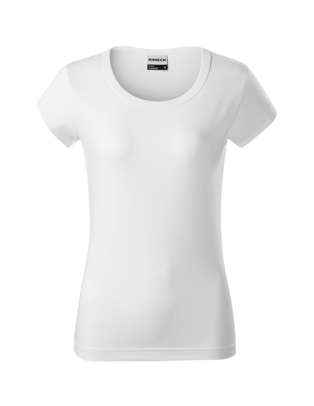 niekurczliwa bawełna odporna na wyższe temperatury, temperatura prania do 95 °C (biały) oraz 60 °C (kolor), dopasowany krój ze szwami bocznymi, lamówka dekoltu wykonana z dzianiny ściągaczowej 1:1, szew wzmacniający na ramionach, bardzo krótkie rękawy, Produkt dostępny w dwóch wersjach: z metką firmową w szwie bocznym lub bez (patrz zestawienie kolorów). Opcja z metką tylko do wyczerpania zapasów.