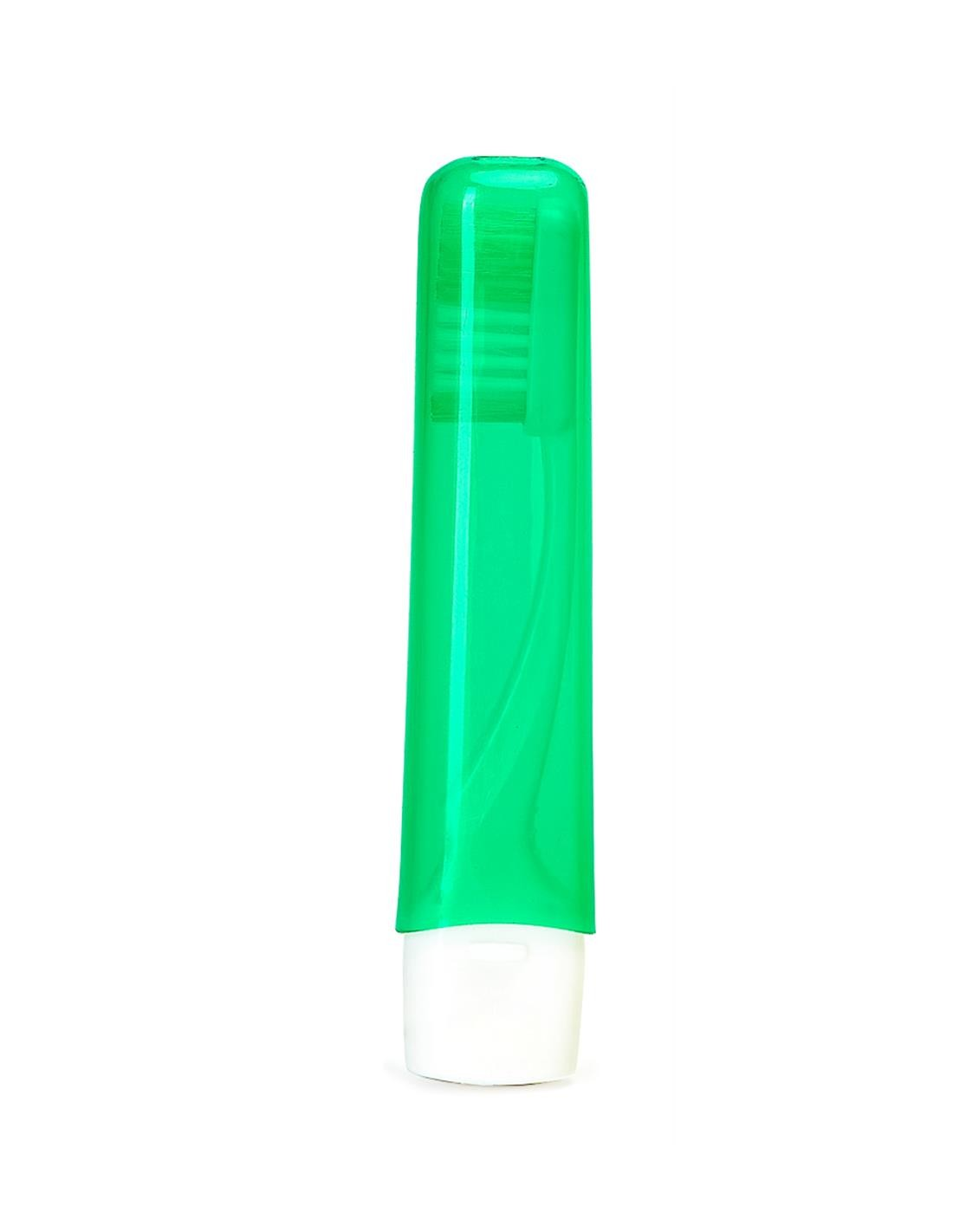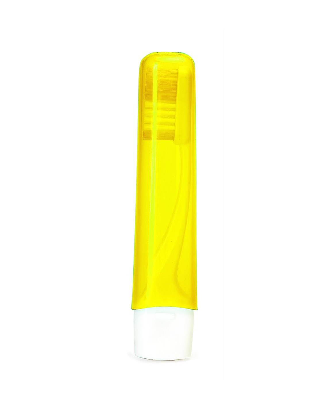 Szczoteczka do zębów składająca się z dwóch części połączonych razem w celu uzyskania kompletnej szczoteczki. Format podróżny z półprzezroczystym kapturkiem i dwukolorowym włosiem pasującym do dwóch części pędzla.