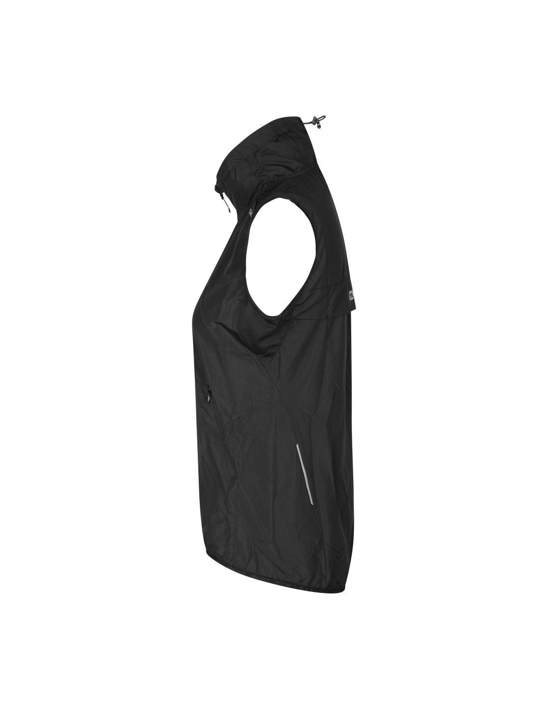 Dobrze dopasowany, ultralekki wiatro- i wodoodporny bezrękawnik dla biegacza. Wygodny, wysoki kołnierz. Elastyczna lamówka u dołu i w podkroju pachy. W bokach materiał zapewniający wentylację. Otwór wentylacyjny na plecach. Z przodu dwie praktyczne, ukryte kieszonki. Odblaski z przodu i z tyłu.