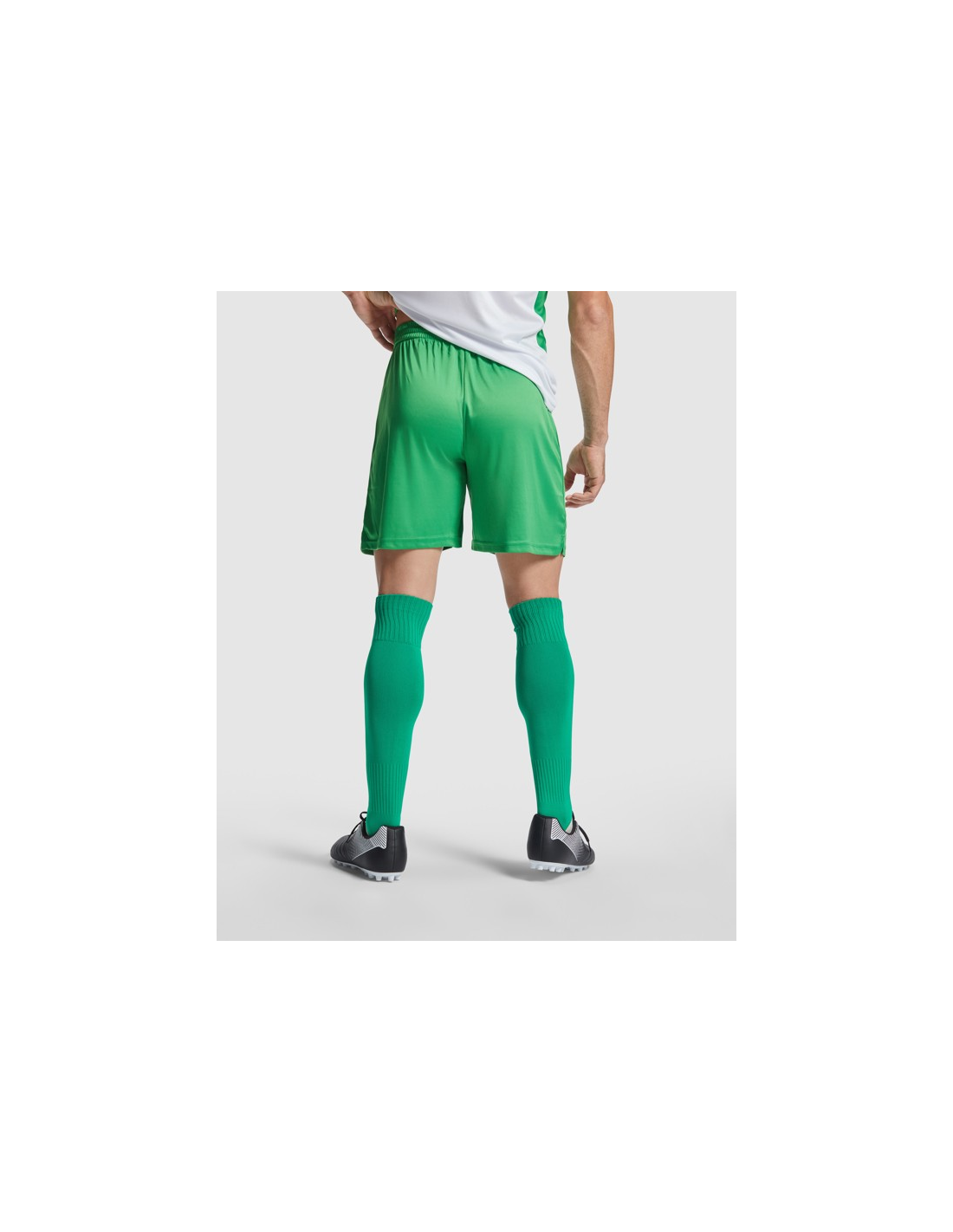 Krótkie spodenki sportowe z elastycznym ściągaczem w pasie, regulowane wewnętrznym sznurkiem i przeszyciami zabezpieczającymi. Szwy boczne z rozcięciem.