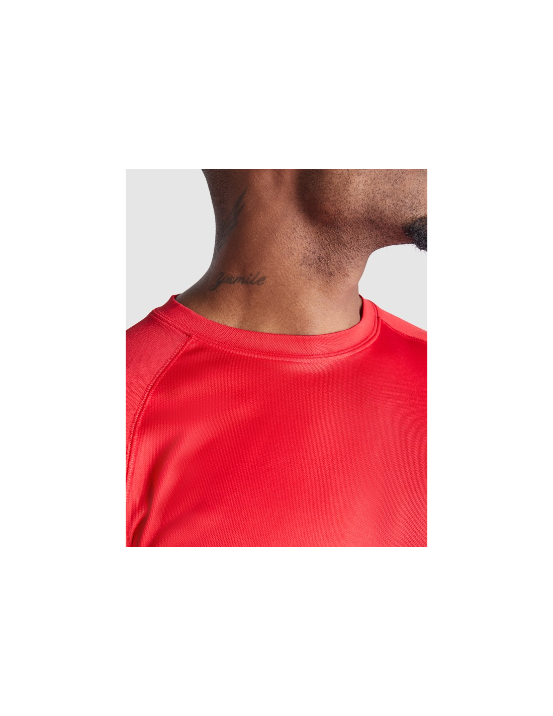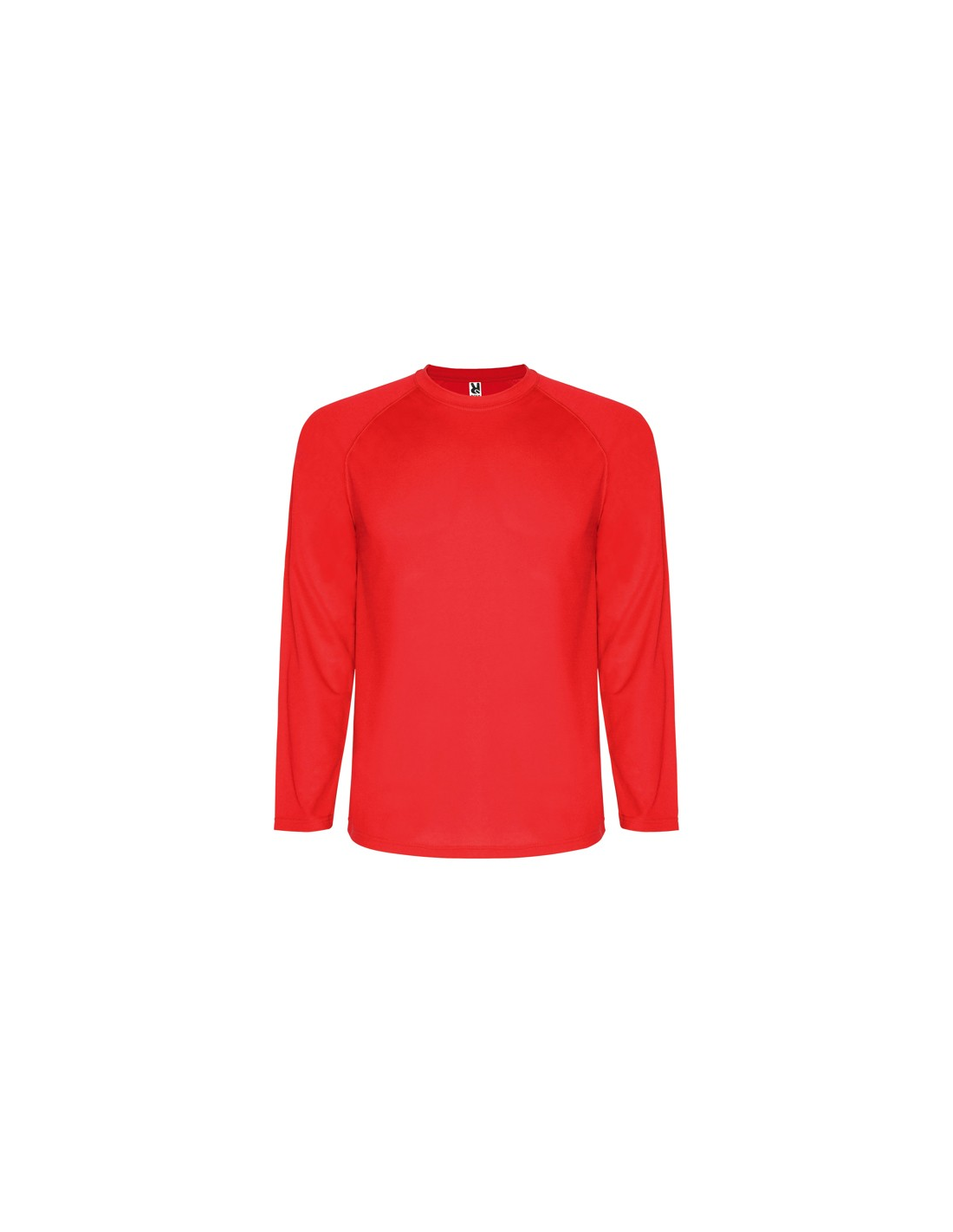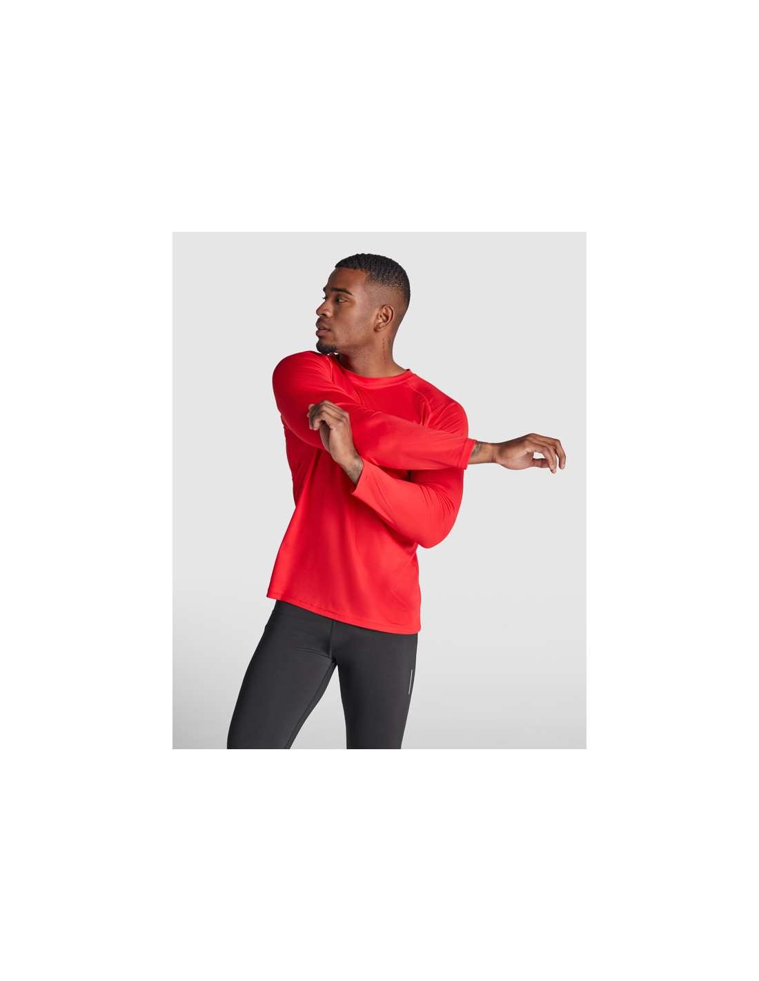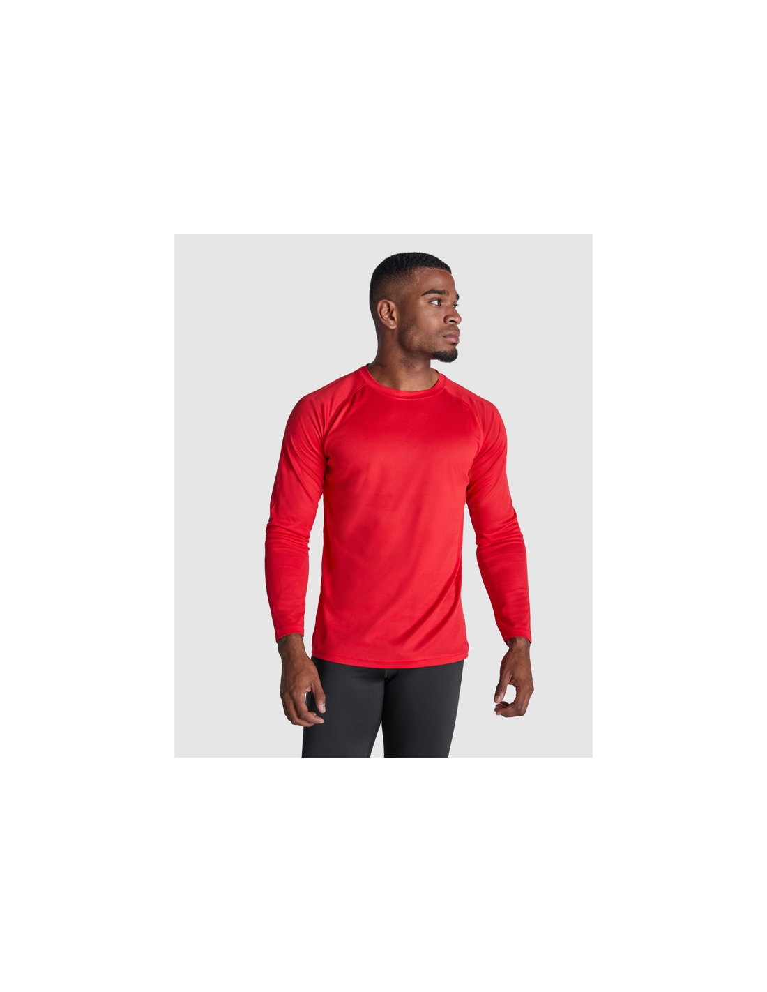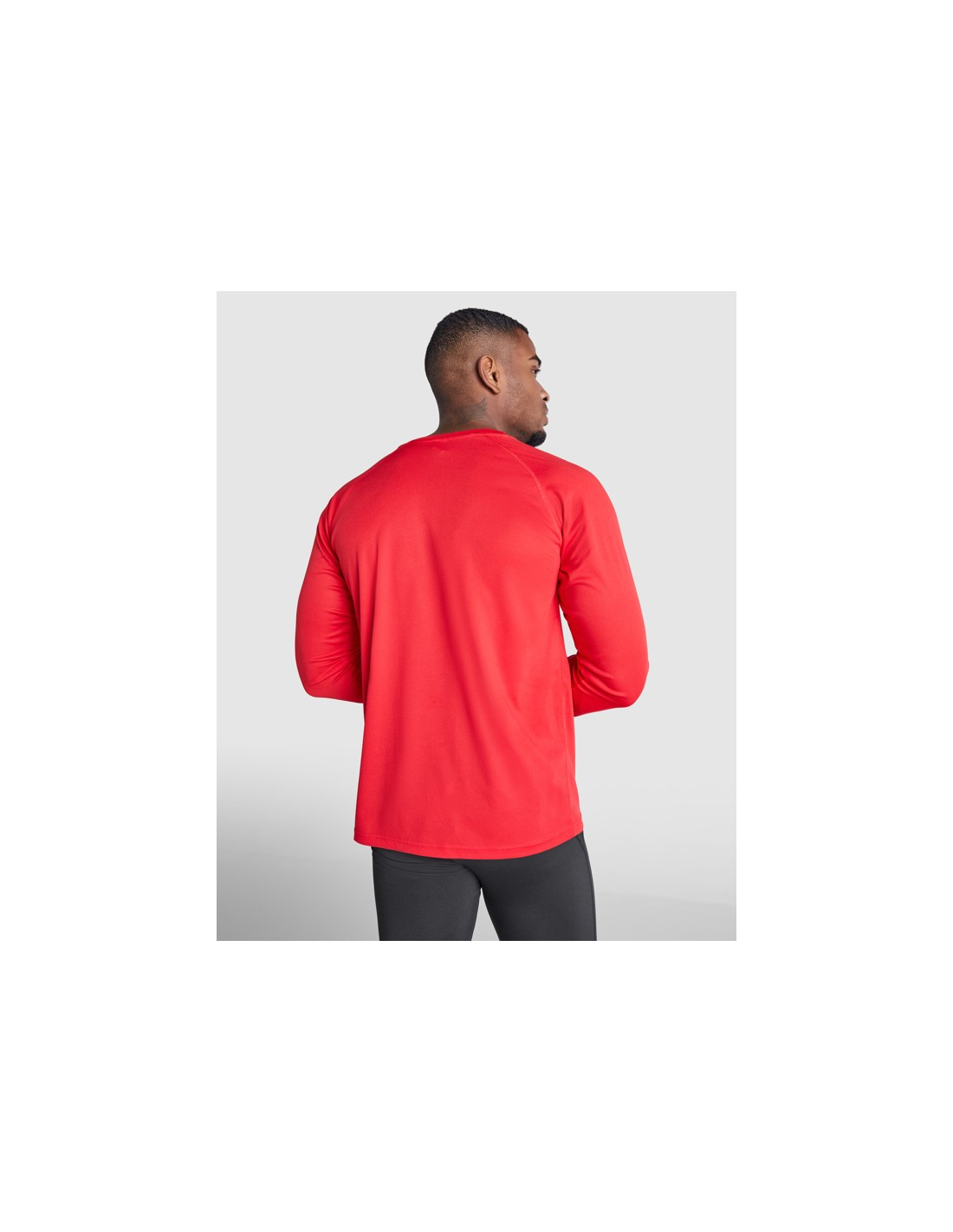 Koszulka techniczna z długim raglanowym rękawem. 1.- Przeszycia w kolorze tkaniny 2.- Kryte szwy przy kołnierzyku 3.- Oddychająca tkanina, łatwa w praniu i szybkoschnąca