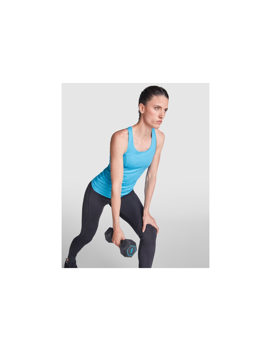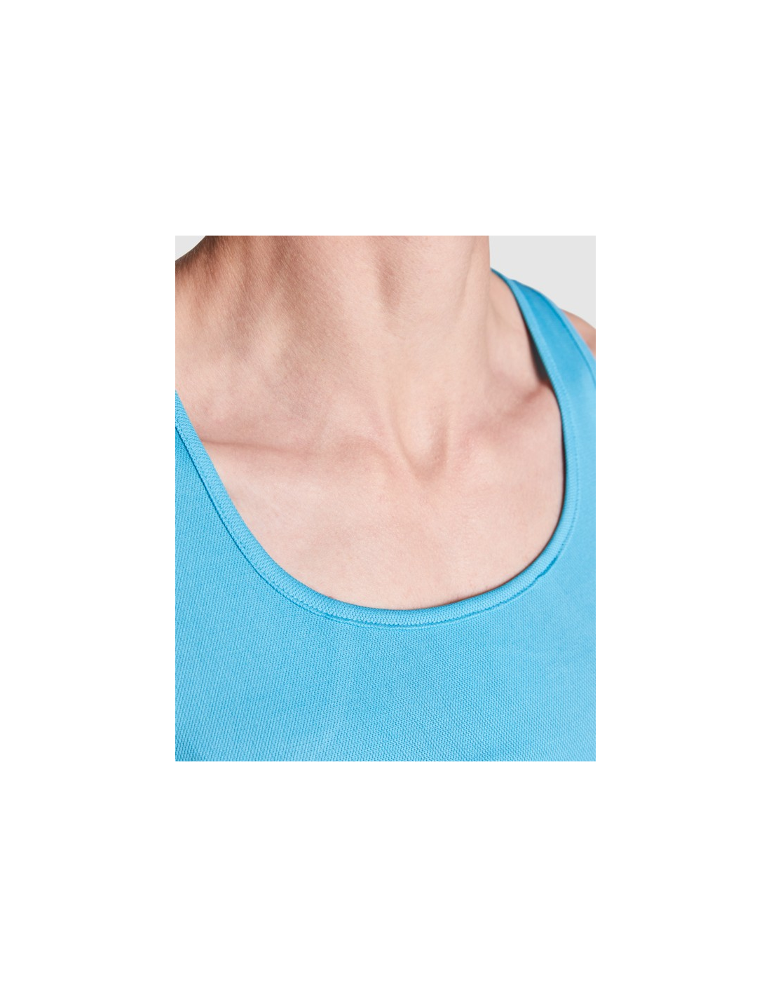 Techniczna koszulka z wycięciami na ramiona i obszytym dekoltem. Tylne i boczne szwy w stylu pływackim.