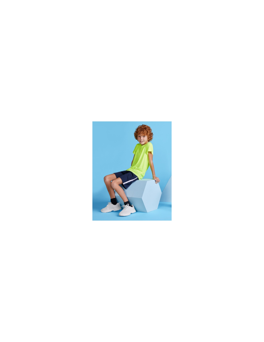 Koszulka techniczna z krótkim rękawem. Pokrycie szwów w kołnierzu w tym samym kolorze. Tył koszulki nieco dłuższy niż przód. Boczne szwy skierowane do przodu.